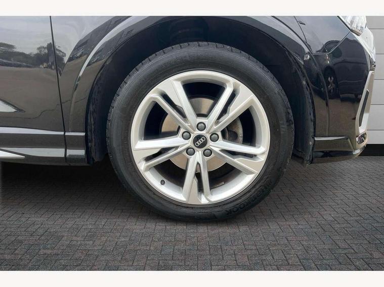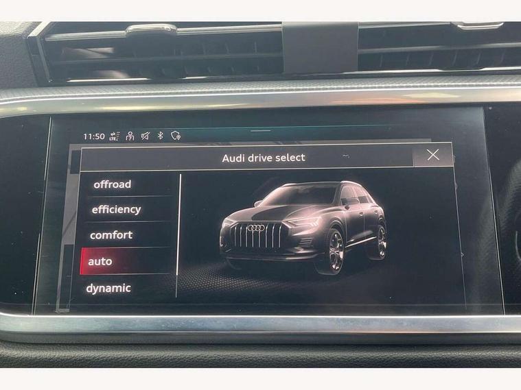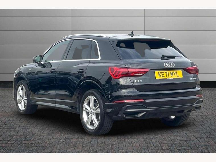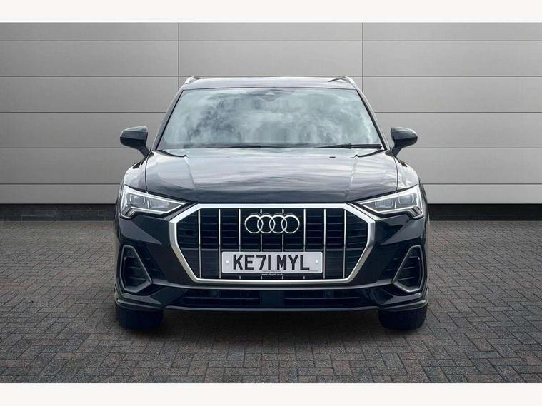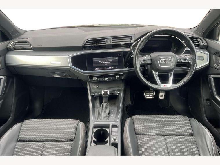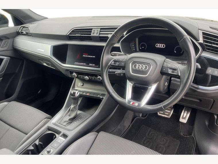 Amazon alexa Integration, Audi connect safety and service (e-call), Audi drive select, Audi lane departure warning, Audi smartphone interface includes wireless Apple carplay/Android Auto, Audi Virtual Cockpit - 10.25" display, Bluetooth interface, Camera based traffic sign recognition, MMI Navigation Plus with high resolution 10.1 inch touchscreen colour display, Power operated tailgate, Progressive steering, Service interval indicator, Start stop system with recuperation, Voice control system with natural language interaction, 48V Mild hybrid technology, Sports suspension, 2 USB-C ports with charge and data functions, 6 passive loudspeakers, DAB digital radio module, Acoustic windscreen, Aluminium roof rails, Aluminium window trim, Auto dimming frameless rear view mirror, Body coloured bumpers, Electrically folding, adjustable and heated door mirrors with integrated LED side indicators and kerb view function for passenger side, Front and rear electric windows, Front fog lights, Front side air inlets in matt platinum grey, Front spoiler blade in matt platinum grey, Grille vertical bars in aluminium silver/Matt, High gloss black finish B and C pillars, LED headlights with LED daytime running lights and dynamic rear indicator, LED rear lights, Privacy glass dark tinted rear and rear-side windows (from B-pillar backwards), Rain and light sensors, Rear diffuser strip in matt titanium black, S line badges on front wings, S Line front and rear bumpers, Side skirt insert in matt Platinium grey, Silver chrome grille surround, Titanium black radiator grille, 12V socket in rear centre console, 40:20:40 folding with manual adjustment for 60:40 forwards/backwards position and backrest angle, Adjustable rear seat bench/backrest with centre armrest and cupholder, Black cloth headlining, Dual zone electronic climate control, Front and rear black floor mats with contrast stitching in rock grey, Front and rear headrests, Front and rear roof module including reading lights, Front centre armrest, Glove compartment lighting, Height and reach adjustable steering wheel, Illuminated door sill trims with S logo, ISOFIX child seat mounting for front passenger with airbag deactivation and outer rear seat including top tether attachment point for outer rear seats, Luggage compartment light, Manual front seats with height adjustment, Perforated leather gearknob, Stainless steel luggage compartment sill finisher, Stainless steel pedals, Tool kit, Non smoking pack - Q3, 3x3 point rear seatbelts, 6 airbags - Driver, front passenger, curtain and side windows, Audi pre-sense front with pedestrain and cyclist recognition, Electrically operated child locks on rear doors, Electromechanical parking brake, Electronic stabilisation control including ABS, ASR and EDL, Hill descent control, Hill hold assist, Pre sense basic, Seatbelt monitoring, Tyre pressure warning, Warning triangle and first aid kit, Anti theft alarm, Anti theft wheel bolts, Remote central locking, Dark matt brushed aluminium inlay, Detail dashboard around MMI touch colour display in glass look, black with surround in aluminium look, Leatherette door armrest, Tyre repair kit,