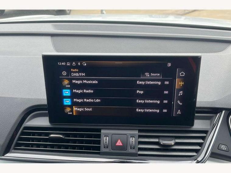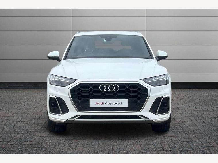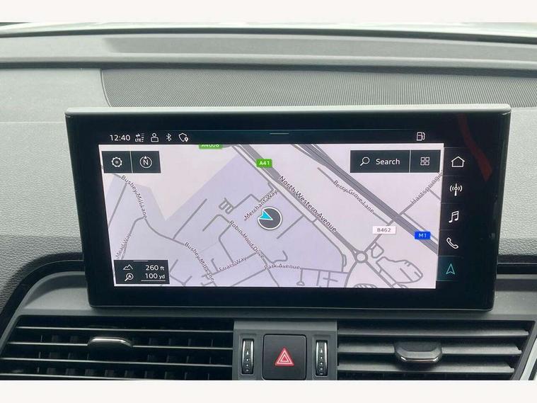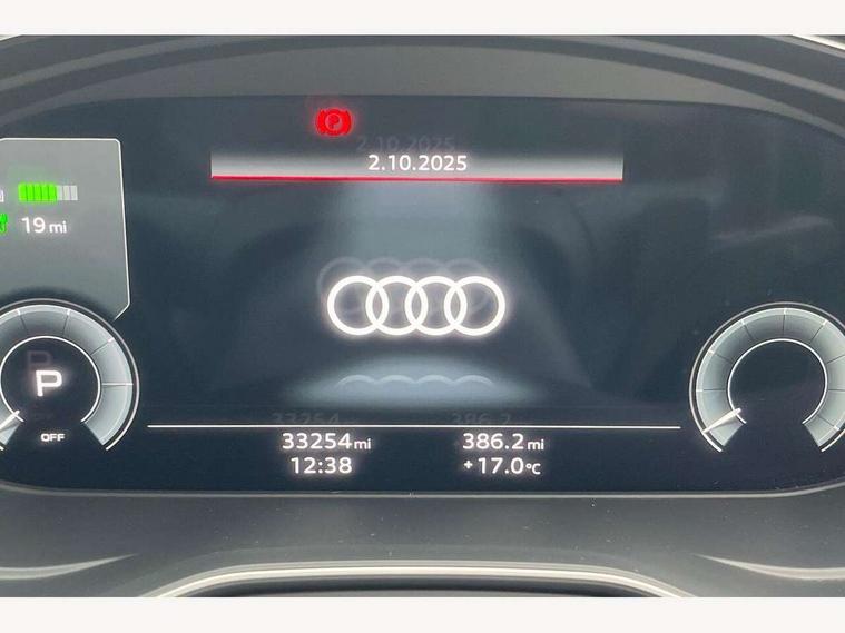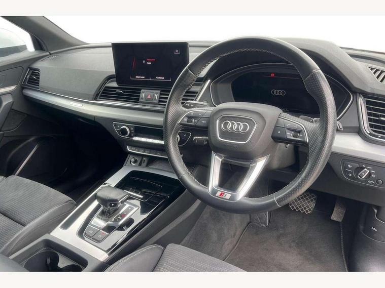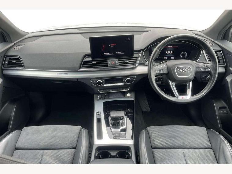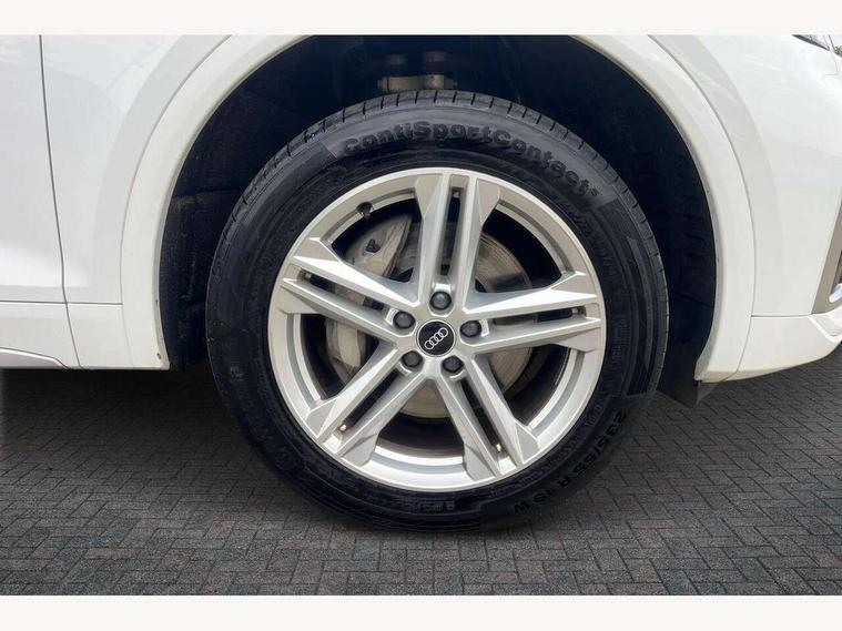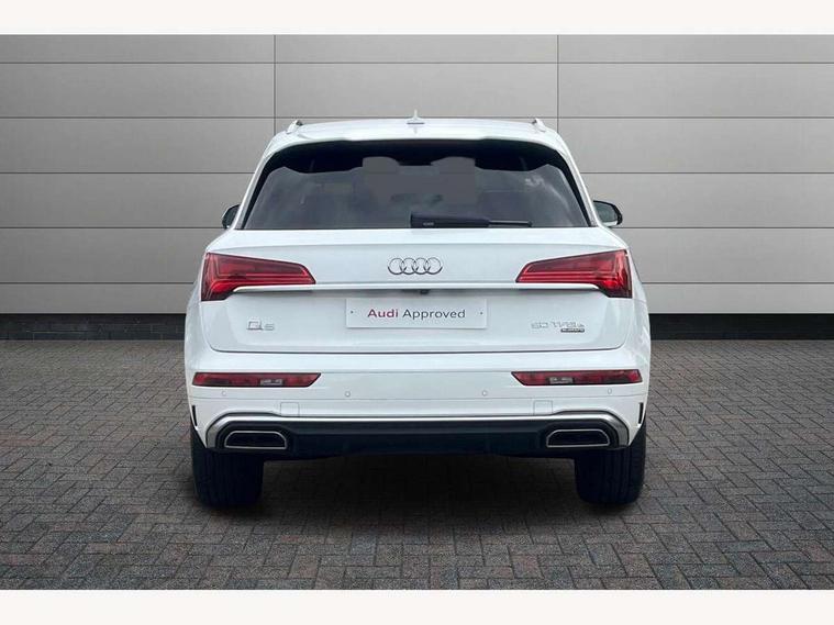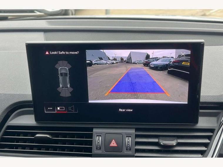 Audi connect safety and service (e-call), Audi connect with Amazon Alexa Integration, Audi drive select, Audi virtual cockpit plus with 12.3" screen and three different layout designs, Audi wireless smartphone interface, Automatic start-stop system with coasting functionality and efficiency programme, Bluetooth interface, Electro - mechanical power assisted steering, MMI navigation plus with 10.1" touch screen, Power tailgate, Reversing camera, Service interval indicator, Voice control system with Audi hotword activation "Hey Audi", 3 pin 10 amp domestic charging cable, Dynamic suspension, Quattro on demand, Type 2 mode 3 22kW 32 amp charging cable, Type 2 socket for AC charging, 2 x USB charging port with aux input socket, DAB Digital radio, Acoustic windscreen, Aluminium roof rails, Audi matrix LED headlights with dynamic front and rear indicators, Auto dimming rear view mirror, Automatic headlights and windscreen wipers, Body colour bumpers, Body colour door mirrors, Body colour rear diffuser with matt aluminium silver surrounds, Body colour underbody protection, Chrome plated exhaust trims, Door sills in Selenite silver, Electric adjustable/heated/folding door mirrors, Front air inlet surrounds in aluminium, Front and rear electric windows, Front radiator grille in honeycomb design, Headlight washers, Lower bumpers painted in contrast Manhattan grey, Rear chrome trim strip below lights, Rear privacy glass and rear side windows, Rear spoiler, Rear wiper, Roof bars, S Line badges on the front wings, S Line front and rear bumpers, S Line side skirts, 3 rear headrests, 40:20:40 split folding rear seat with rear centre armrest, Black cloth headlining, Comfort front centre armrest, Contrast stitching on seats, steering wheel and gear lever gaiter, Deluxe 3 zone electronic climate control, Front/rear floor mats, Gear lever in black leather, Heated front seats, Height adjustable front head restraints, Height/reach adjustable steering column, Illuminated door sill trims with S logo, ISOFIX child seat mounting and top tether, Manual seat adjustment with 4-way electric lumbar support, Rear seat bench plus, Sunvisors with vanity mirrors, Trunk roller cover, High gloss pack - Q5, LED interior light pack - Q5, 3 point seatbelts on all seats, 6 airbags - Driver, front passenger, curtain and side airbags, Electrically operated child locks on rear doors, Electromechanical parking brake, Electronic stabilisation control including ABS, ASR and EDL, Front passenger airbag deactivation, Hill descent control, Hill hold assist, Multi collision brake assist, Pop-up bonnet for pedestrian protection, Pre sense city, Seat belt force limiter, Seatbelt monitoring, Tyre pressure warning, Warning triangle and first aid kit, Anti theft alarm, Anti-theft wheel bolts, Keyless Go access/ignition system, Matt brushed aluminium inlays, Tool kit, Tyre repair kit,