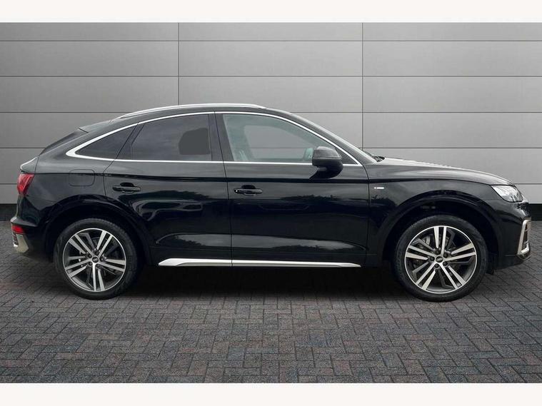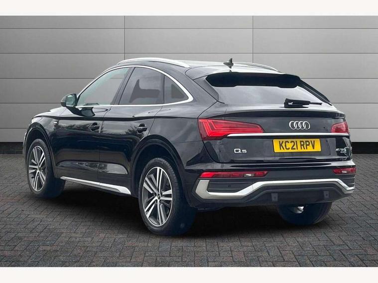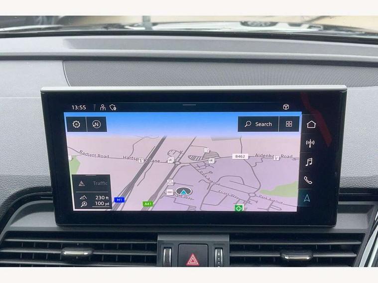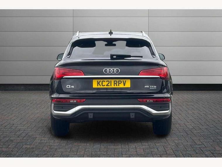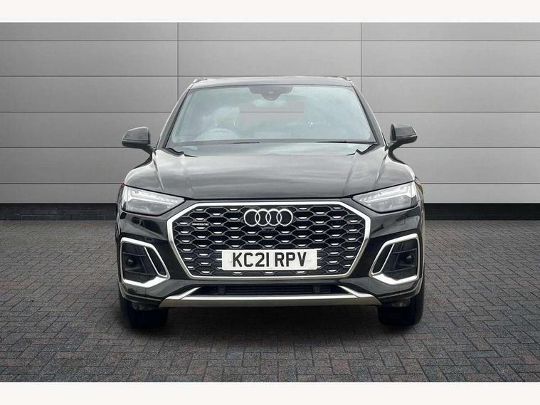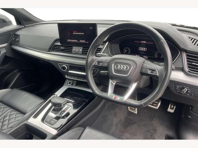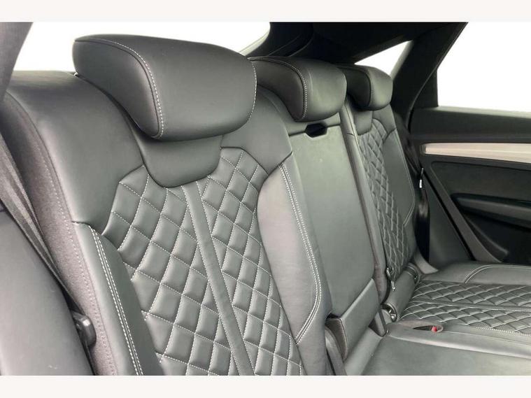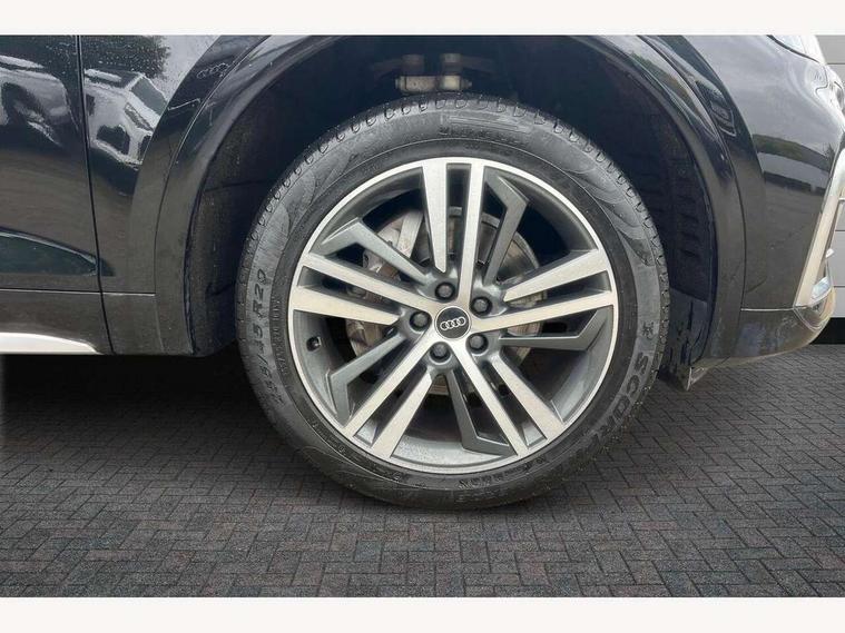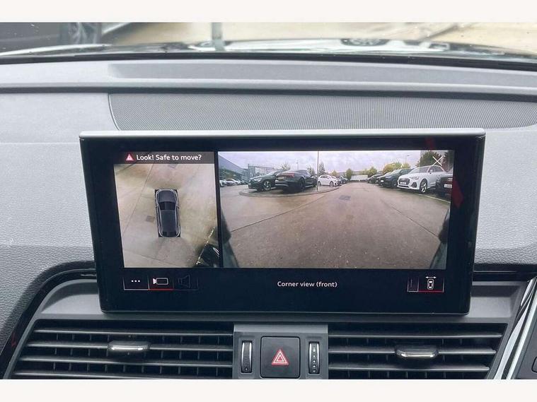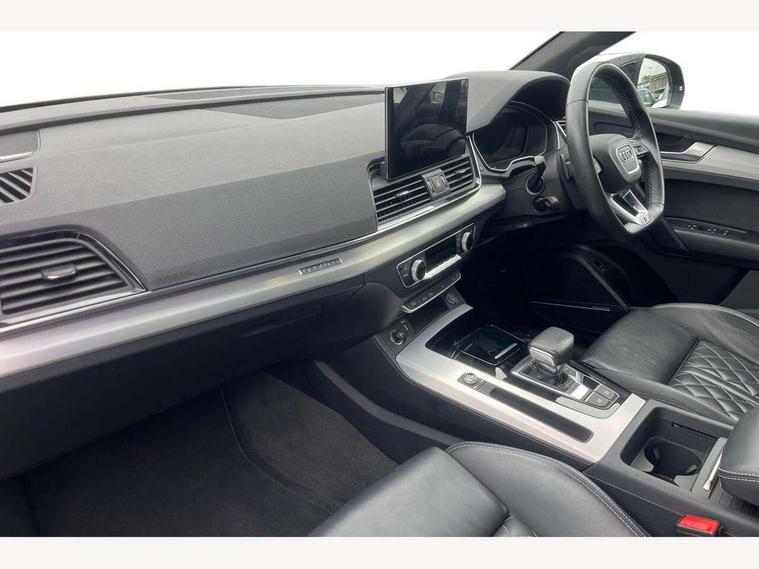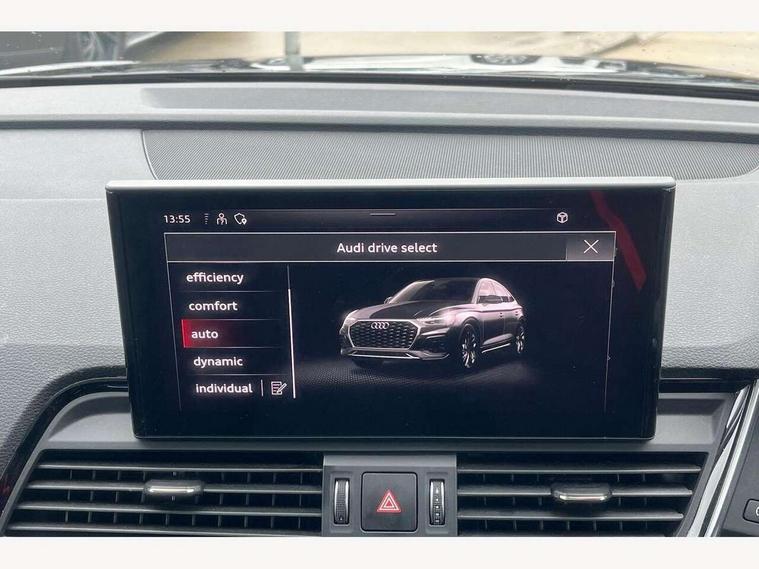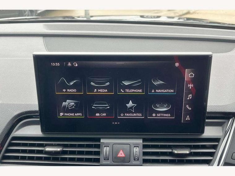 Audi connect safety and service (e-call), Audi connect with Amazon Alexa Integration, Audi drive select, Audi virtual cockpit plus with 12.3" screen and three different layout designs, Audi wireless smartphone interface, Automatic start-stop system with coasting functionality and efficiency programme, Bluetooth interface, Electro - mechanical power assisted steering, MMI navigation plus with 10.1" touch screen, Power tailgate, Reversing camera, Service interval indicator, Voice control system with Audi hotword activation "Hey Audi", Quattro on demand, S line sports suspension, 2 x USB charging port with aux input socket, DAB Digital radio, Acoustic windscreen, Aluminium roof rails, Audi matrix LED headlights with dynamic front and rear indicators, Auto dimming rear view mirror, Automatic headlights and windscreen wipers, Body colour door mirrors, Body colour rear diffuser with matt aluminium silver surrounds, Body colour underbody protection, Chrome plated exhaust trims, Door sills in Selenite silver, Electric adjustable/heated/folding door mirrors, Front air inlet surrounds in aluminium, Front and rear electric windows, Front radiator grille in honeycomb design, Headlight washers, Lower bumpers painted in contrast Manhattan grey, Rear chrome trim strip below lights, Rear privacy glass and rear side windows, Rear spoiler, Rear wiper, Roof bars, S Line badges on the front wings, S Line front and rear bumpers, S Line side skirts, 3 rear headrests, 40:20:40 split folding rear seat with rear centre armrest, Black cloth headlining, Comfort front centre armrest, Contrast stitching on seats, steering wheel and gear lever gaiter, Deluxe 3 zone electronic climate control, Front head restraints, Front/rear floor mats, Gear lever in black leather, Heated front seats, Height/reach adjustable steering column, Illuminated door sill trims with S logo, ISOFIX child seat mounting and top tether, Manual seat adjustment with 4-way electric lumbar support, Removable luggage compartment floor, Stainless steel pedals, Sunvisors with vanity mirrors, Trunk roller cover, High gloss pack - Q5, LED interior light pack - Q5, 3 point seatbelts on all seats, 6 airbags - Driver, front passenger, curtain and side airbags, Electrically operated child locks on rear doors, Electromechanical parking brake, Electronic stabilisation control including ABS, ASR and EDL, Front passenger airbag deactivation, Hill descent control, Hill hold assist, Multi collision brake assist, Pop-up bonnet for pedestrian protection, Pre sense city, Seat belt force limiter, Seatbelt monitoring, Tyre pressure warning, Warning triangle and first aid kit, Anti theft alarm, Anti-theft wheel bolts, Keyless Go access/ignition system, Matt brushed aluminium inlays,
