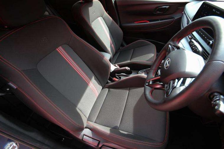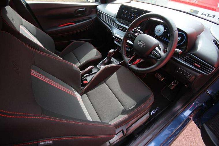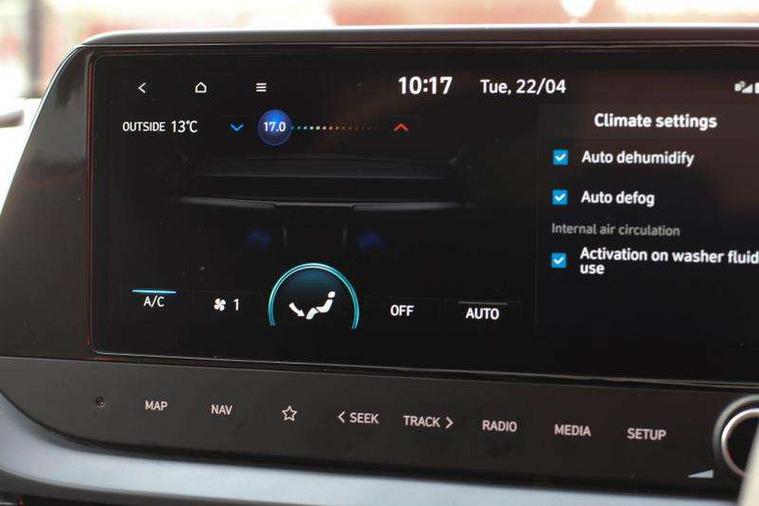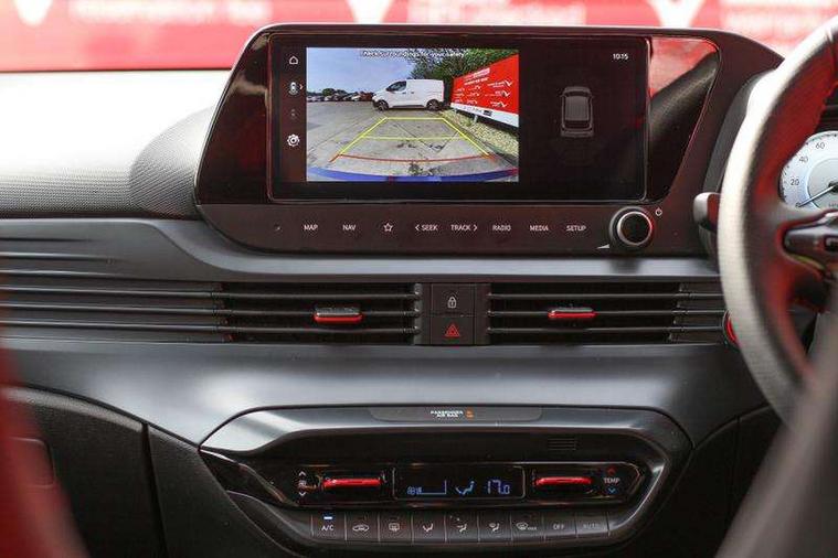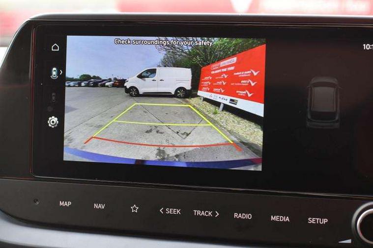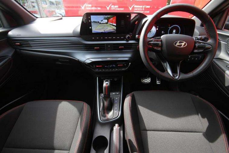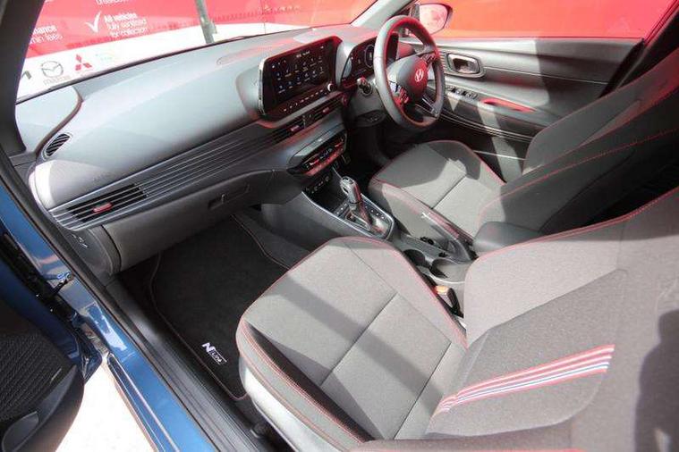 10.25" Touchscreen satellite navigation including mapcare and live services, 2nd Gen eCall, 8" Touchscreen DAB Radio with android auto and apple carplay, Apple car play/Android Auto, Driver's supervision instrument cluster with 10.25" LCD display, E-call, Forward collision assist with car, pedestrian and cycle detection, Front parking sensor, Intelligent speed assist, Lane follow assist, Lane keep assist, MAP OTA updates, PAS, Rear parking sensor, Rear view camera with dynamic guidelines, Wireless charging pad, Bose premium sound system, USB C and USB A ports in front, USB C Port in rear, Automatic defog system for front windscreen, Automatic dimming rear view mirror, Automatic headlights with dusk sensor, Automatic windscreen wipers, Body colour door handles, Electric front and rear windows, Front fog lights, Heated door mirrors with electric adjustment and power folding function, High beam assist, LED daytime running lights, LED Headlights, LED positioning lights, LED taillights, Privacy glass - Rear windows and tailgate, Rain sensor, Rear roof spoiler with integrated LED brake light, Rear side wing doors, Rear wiper, Repositioned flat metal hyundai emblem, Shark fin antenna, Windscreen with acoustic film, 3 seat bench in 2nd row, Adjustable head restraints, Air conditioning climate control, Automatic de-fog system for front windscreen, Cloth upholstery, Driver and passenger illuminated vanity mirrors with driver ticket holder, Floor mats, Front cup holder, Heated front seats, Heated steering wheel, Height adjustable driver's seat, Isofix, Leather wrapped steering wheel and gear knob, Luggage hooks, Multi colour ambient lighting, Rear Seats - Split Folding (60/40), Single front passenger seat, Sport metal pedals, Steering wheel remote controls, Tilt and telescopic steering wheel adjustment, 3x3 point rear seatbelts, Anti-lock brake system (ABS), Autonomous emergency braking, Child locks on rear doors, Driver and front passenger airbags, Rear seat alert, Side and Curtain airbags, Tyre pressure monitoring system, Immobiliser, Smart key with keyless entry and engine start/stop button, 17" N Line black alloy wheels, Tyre repair kit,