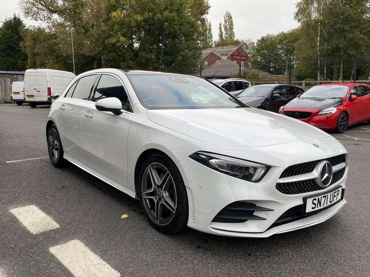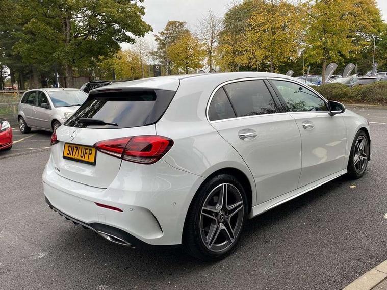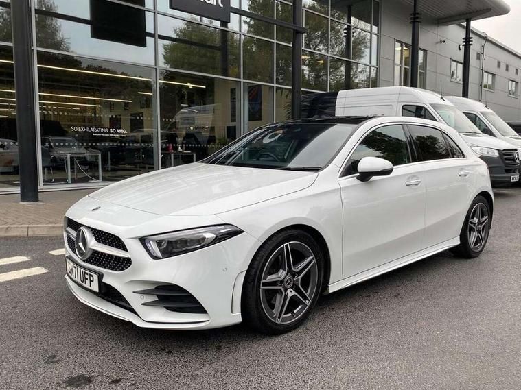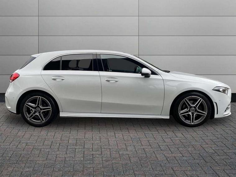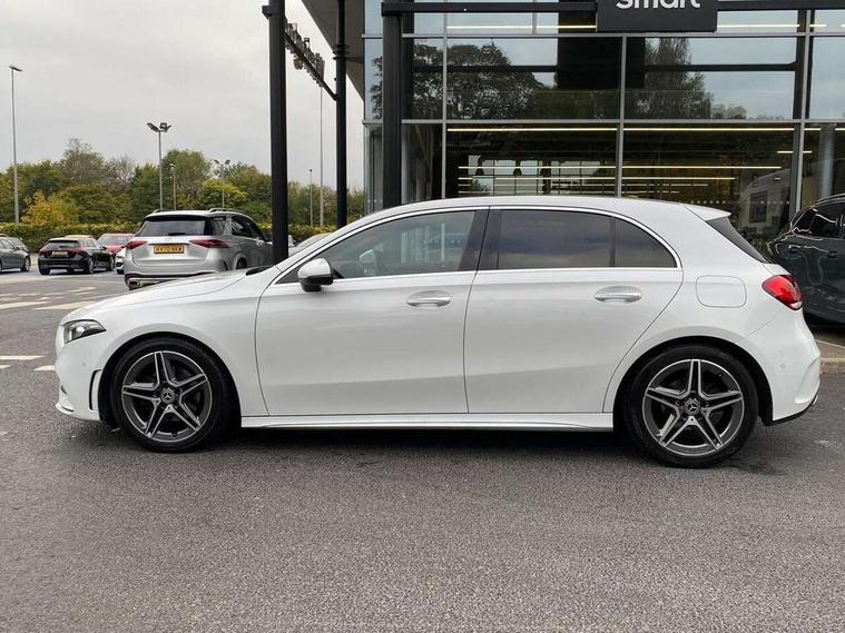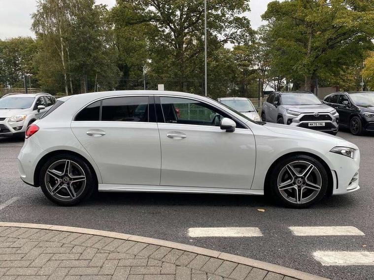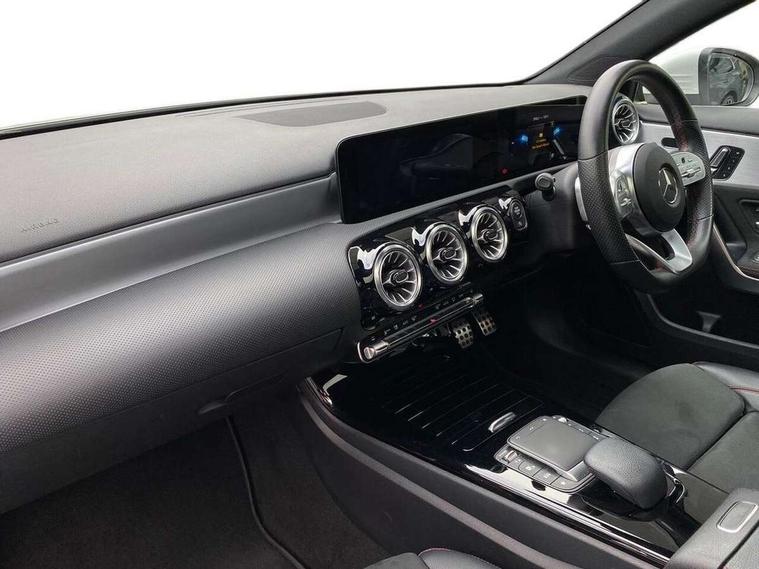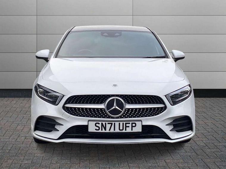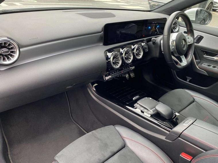 10.25" Digital instrument cluster display screen, 10.25" media display, 180 degree rear view camera with parking guidelines, Active parking assist with visual and audible warning of detected obstacles, Attention assist, Brake pad wear indicator warning light, Car wash mode, Direct steering, Dual bluetooth interfaces, DYNAMIC SELECT with a choice of driving modes (ECO, Comfort, Sport and Individual), ECO start/stop function, Fluid level warning indicator for fuel, oil, coolant and washer fluid, Hard-disk navigation, Hey Mercedes Voice activation, Lamp failure indicator, MBUX augmented reality for navigation, Mercedes me connect including emergency call system, accident recovery, breakdown and maintenance management, Mercedes me remote services, Outside temperature gauge, Owners manual in English, Pre-installation for private car sharing, Preinstallation for Mercedes Benz link, Service indicator (ASSYST), Smartphone integration with Apple CarPlay and Android auto, Traffic sign assist, Trip computer, Ultrasonic sensors positioned in the front and rear bumpers, Wireless charging, Lowered comfort suspension, Rear axle torsion beam, 10 speakers, 2 USB ports (type C) in rear stowage compartment and one in front of center console, DAB Digital radio, MBUX multimedia system with DAB digital radio and touchpad including satellite navigation, Mercedes-Benz advanced sound system - 225W, 4 Electric Front and Rear windows, Adaptive brake lights, AMG bodystyling - Front apron with splitter in chrome, rear apron with chrome trim and chrome visible trim elements in tailpipe, Black weather strip, Body colour bumpers, Body colour door handles, Body colour side skirt, Body coloured door mirrors, Chrome beltline trim, Diamond radiator grille with chrome pins and silver louvre + chrome insert, Electric adjustable and heated door mirrors with integrated LED side indicators, Exhaust system - Twin visible tailpipes in polished stainless steel, Headlamp assist automatic headlamp activation, Heated glass rear windscreen + timer control, LED high performance headlamps with integrated LED daytime running lights, LED tail lamp, LED third brake light, Multibeam LED with adaptive highbeam assist plus, Panoramic sliding sunroof, Privacy glass, Radio aerial, Rain sensing windscreen wipers with two sensitivity settings, Rear fog lights, Rear wiper, Window line trim strip in chrome, 3 Spoke flat bottom leather multi function steering wheel with perforated leather in grip area, 40:20:40 split folding rear seats, Artico man-made leather/Microfibre Dinamica upholstery with red contrast stitching, Auto Mercedes-Benz child seat recognition sensor, Black air vents with surround in silver chrome, Black roof lining, Brushed stainless steel sports pedals with rubber studs, Controller on centre console with chrome surround, Electrically adjustable front memory seats including lumbar support, Floor mats with stitched edging and AMG lettering, Front centre armrest with storage compartment, Front seat backs luggage nets, Front seat cushion length adjustment, Galvanished gear shift paddles on steering wheel, Heated front seats, Height/reach adjustable steering column, Illuminated front door sills with changeable cover, Interior lighting - 64 colour Ambient lighting, Interior mirror with reading lamps in black and frameless, Rear armrest with 2 cupholders, Rear head restraints, Seat occupancy sensor for front passenger seat, Sports seats with integrated headrests, Stowage compartment in centre console with retractable cover, Sunvisors with illuminated vanity mirrors, Touchpad on center console, Twin front cupholders, Two zone thermotronic luxury automatic climate control, Light and sight pack - A Class, Mirror package - A Class, Seat comfort pack - A Class, 3 rear 3 point seatbelts, ABS with Brake Assist, Active bonnet, Adaptive brake assist with hold function and hill start assist, Black seatbelts, Childproof locks manually operated for rear doors and electrically operated for rear power windows, Crash responsive emergency lighting, Driver and passenger head and side airbags, Drivers knee airbag, Dual stage driver/passenger airbags, Electronic parking brake, ESP curve dynamic assist, ESP with ASR, Front and rear seatbelt reminder, Front brake callipers with Mercedes Benz lettering, ISOFIX and top tether child seat fixing points in two outer rear seats, Tyre pressure monitoring system, Warning triangle and first aid kit, Window airbags, Alarm system/interior protection/immobiliser, Keyless entry lock/unlock, Keyless Go, Remote central locking and crash sensor with emergency opening function, Urban guard vehicle protection system with immobiliser and interior protection, Light aluminium with longitudinal grain interior trim, 18" AMG 5 twin spoke light alloy wheels in titanium grey with highsheen finish, Summer tyres, Tirefit sealant kit,