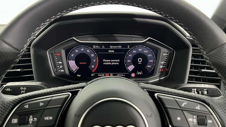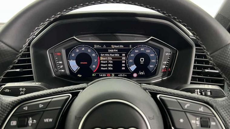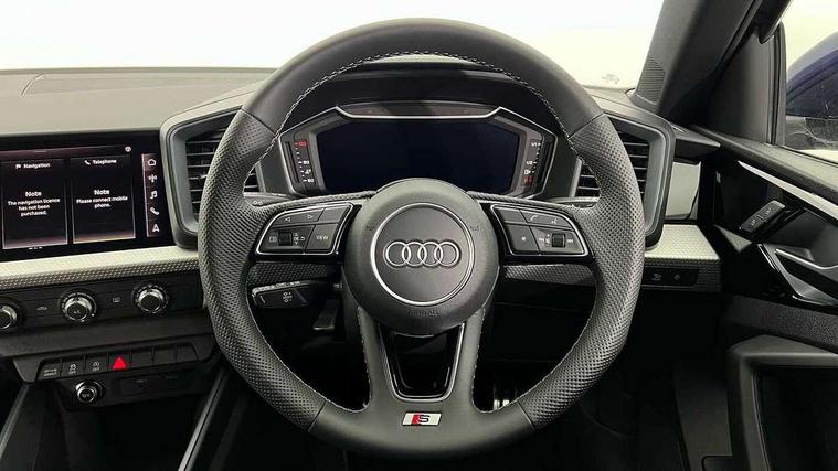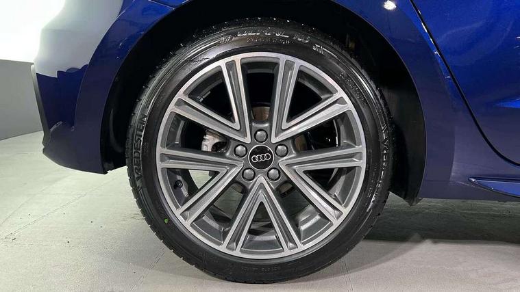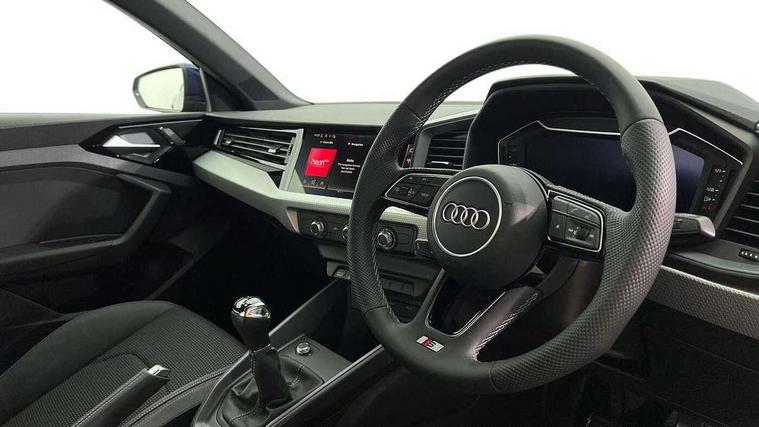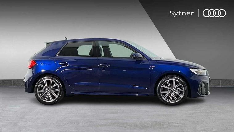 10.25" Digital instrument cluster display classis style instrument dials + speed, odometer, time, outside temperature, telephone menu + fuel level warning, Advanced driver attention and drowsiness monitor, Audi connect emergency call and service, Audi drive select, Audi remote connect and control, Audi smartphone interface, Bluetooth interface, Camera based traffic sign recognition, Cruise control, Driver's information system, Electromechanical power steering, Lane departure warning system, Rear parking sensor, Service interval indicator, Speed limiter, Start stop system with recuperation, Voice control system, Washer fluid level indicator, Sports suspension, 2 x USB type C connection points, 6 loudspeakers, DAB Digital radio, MMI radio plus with 10.1" colour MMI display screen and MMI touch, Auto dimming rear view mirror, Body coloured door mirrors, Door sill trims with aluminium inlays and S line logo in front, Electric front and rear windows, Electrically adjustable, heated, folding door mirrors with integrated LED side indicator, Front side air inlets in grained matt black and C frame in anthracite black, Headlight cleaning system, Heat insulating glass windscreen and side windows, Heated rear windscreen, High level LED brake light, LED daytime running lights, LED headlights with range control LED rear lights + dynamic rear indicators, Light and rain sensors, Privacy glass, Radiator grille and rear diffuser in matt anthracite black, Radiator protective grille frame in matt aluminium silver, Rear fog lights, Rear side wing doors, Rear wiper, S line badges on front wings, Side front spoiler lips in grained matt black, 12V socket in centre console with two cup holders, 3 rear seats with headrests, 3 seat bench in 2nd row, 3 spoke leather multi-function plus steering wheel features S badging and grips in perforated leather with contrast stitching, 40:60 Split folding rear seat or fully collapsed, Black cloth headlining, Front and rear velour black floor mats with contrast stitching in fine silver, Front head restraints, Front passenger seat, Height and reach adjustable steering wheel, Interior lighting includes roof module, front and rear reading lights and right luggage compartment lighting, ISOFIX child seat mounting for front passenger and outer rear seats including top tether attachment point of outer rear seats, Leather gear knob with aluminium trim, Leather handbrake grip, Manual air conditioning, Manual height adjustable for driver and front passenger seat, Manually adjustable lumbar support in front seats, Stainless steel pedals, Ambient lighting package - A1, Luggage compartment pack - A1, S line exterior styling pack - A1 Sportback, 3x3 point rear seatbelts, Audi pre-sense front with pedestrain and cyclist recognition, Brake assist function, Driver and front passenger airbag with front side and head airbags, Electronic Stability Control including ABS, EBD, ASR and EDL, Front passenger airbag deactivation switch, Hill hold assist, Manual rear child locks, Seatbelt height adjustment for front seats, Seatbelt monitoring, Tyre pressure loss indicator, Warning triangle and first aid kit, Anti theft alarm, Anti theft wheel bolts, Immobiliser, Remote control key with safelock, Aluminium trim for control switches, air vents and digital instrument cluster, Black dashboard, Silver grey inlays polygon structure in diamond paint finish, Structured grey accent surfaces insert of air vents, interior door handle recesses and centre console in quartz paint finish,