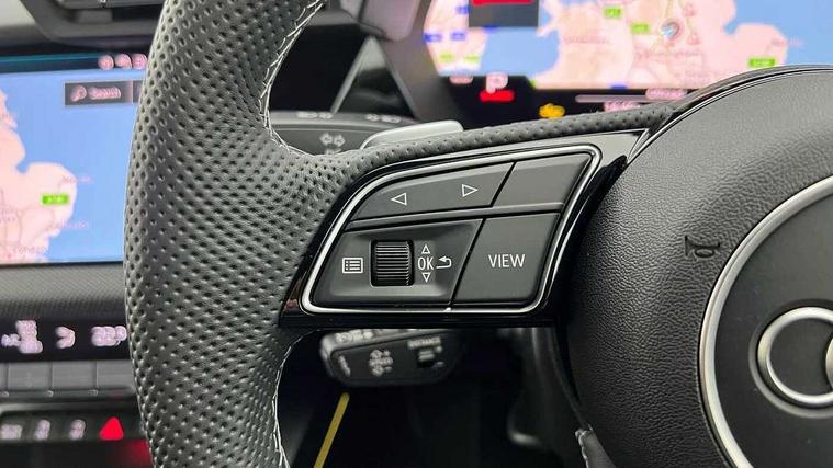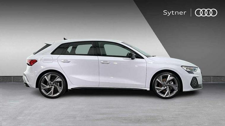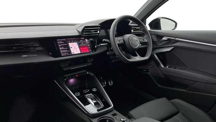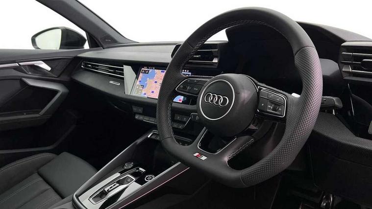Adjustable speed limiter, Audi drive select, Audi smartphone interface with app store includes wireless Apple carplay, Android auto and Amazon alexa integration, Audi virtual cockpit plus - 12.3" full HD resolution dynamic digital instrument cluster, Automatic start/stop system with recuperation, Bluetooth interface, Camera based traffic sign recognition, Collision avoidance assistant, Cruise control, Distraction and Fatigue warning, e-Call (emergency call), Electromechanical power speed sensitive steering, Emergency assist, Lane departure warning system, MMI Navigation Plus with high resolution 10.1" colour touch screen display, Park Assist with parking system Plus, Service indicator, Tailgate, Trip computer, Voice control system with natural language interaction, Sports suspension, Audi Phonebox light with wireless charging, Audi sound system - 10 loudspeakers including centre loudspeaker and subwoofer, DAB Digital radio, USB ports with charging function in the rear, Acoustic glass windscreen, All weather light, Anthracite grey Audi rings (front and rear), Audi beam uses LEDs to project the Audi logo onto the ground as you exit your A3, Auto dimming frameless rear view mirror, Automatic dynamic range control, Black accents front and rear bumpers, Black accents in the area of the Audi single frame grille, Black accents window trims strips, Dipped beam, main beam, position light and turning light, Electrically adjustable/heated/folding/dimming door mirrors with kerb view includes integrated LED indications + kerb view function for passenger side, Exterior model badging, Front and rear side air inlets in grained matt black with dark liquid chrome frame, Front electric windows, Heat insulating glass windscreen, Illuminated door sills with aluminium inserts at the front with S logo, Intersection light, LED 3rd brake light, LED brake lights, LED daytime running x3, LED headlights with LED rear lights and dynamic rear indicators, LED rear number plate lights, LED reverse light, LED tail lights, Light and rain sensors, Manoeuvring light, Motorway light, Privacy glass - dark tinted rear window, rear door and side windows, Rear diffuser and grill in grained matt black with inlay in dark liquid chrome, Rear electric windows, Rear side wing doors, Rear wiper, S roof spoiler, Static Cornering lights, 12V socket and storage compartment in front centre console, 3 seat bench in 2nd row, 3 spoke flat bottomed leather multifunction sport steering wheel with gear shift paddles, 3-zone deluxe automatic air conditioning, 4 way electrically adjustable lumbar support for driver and front passenger, 40/20/40 split folding rear seat bench, Black cloth headlining, Black front and rear floor mats, Front and rear centre armrest in artificial leather with contrasting stitching on armrests and instrument panel, Front and rear headrests, Heated front seats, Height and reach adjustable steering wheel, Manual boot compartment lid, Manually adjustable front seats, Rear centre armrest with cupholder, S badging on the steering wheel, Seat side bolsters, Single front passenger seat, Stainless steel pedals and front footrest in black, Twin leather upholstery with front sports seats S embossed logo, Aluminium interior elements pack - A3, 3x3 point rear seat belts, Driver and front passenger airbag with passenger airbag deactivation, Electronic Stabilisation Control (ESC) including ABS, ASR and EDL, First aid kit with warning triangle and 2 safety vests, Front side airbags with head airbags and interaction airbag, Hill hold assist, Pre-sense front with pedestrian and cyclist detection, Seatbelt monitoring, Tyre pressure loss indicator, Anti theft alarm, Anti-theft wheel bolts, Electronically operated child locks, Immobiliser, Remote central locking with safelock, Black dashboard,