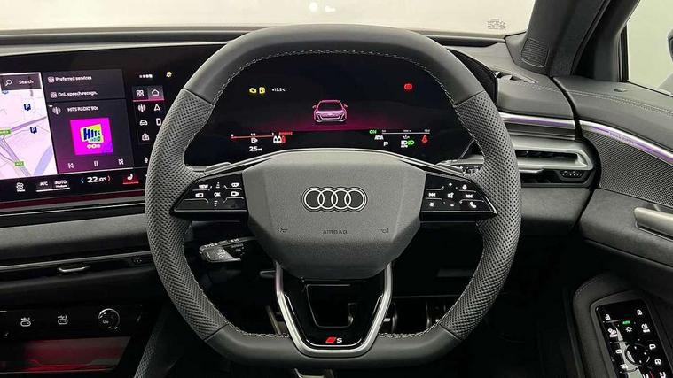 Adaptive cruise control, Advanced driver attention and fatigue montior, Audi application store, Audi assistant, Audi connect emergency call and service, Audi drive select, Audi smartphone interface, Audi virtual cockpit plus with 11.9" OLED colour display, Automatic start/stop system with coasting functionality, Camera based traffic sign recognition, Intersection assist, Lane change assistant with exit warning system, rear cross traffic alert and rear turn assist, Lane departure warning with emergency assist, MMI 10.9" front passenger touch display, MMI navigation plus with high resolution 14.5" OLED touchscreen colour display, Park assist plus, Parking system plus with 360 display, Progressive steering with servotronic, Swerve assist and turn assist, Top view camera, Traffic sign based speed limiter, Sports suspension lowered by 20mm, 2 USB-C ports in both the front and rear, Audi sound system impressive sound with 10 loudspeakers including centre speaker and subwoofer, 6-channel amplifier with a total output of 180 watts, DAB digital radio reception, Smartphone compartment with wireless charging, Aluminium window trims, Auto dimming rear view mirror, Black door handles, Dark chrome-plated tailpipe trims, Door mirrors - electrically adjustable, heated, folding and auto dimming on both sides, Front and rear electric windows, Front door sill trims with aluminium inlays, illuminated with 'S' logo, Headlight cleaning system, High beam assist, LED daytime running lights, LED rear lights pro incl. dynamic rear indicators and illuminated light strip with animated coming and leaving home function, LED third brake light, Matrix LED headlights with eight light signatures selectable via the MMI or the myAudi app, Privacy glass, Rear and side windows with heat insulating glass, Rear boot, Rear side wing doors, S Line badges on the front wings, S line bumpers, radiator grille and diffuser in phantom black and diffuser insert in matt anthracite, White rhombus logo projection light in exterior mirrors, Windscreen with acoustic glazing, 3 rear headrests, 3 seat rear bench, 3 spoke leather steering wheel with multi-function buttons with touch control, flattened on top and bottom, with S badging and contrast stitching, 3-zone automatic climate control, 40:20:40 split folding rear seat bench with centre armrest and cup holders, Comfort front centre armrest, Electrically adjustable front seats, Front and rear floor mats, Front sport seats with integrated headrest and S embossed logo, Headlining in black cloth, Heated front seats, i-Size child seat mounting on the front passenger side and outer rear seats, i-Size and top tether on the outer rear seats, Luggage compartment lid, electrically opening and closing, Manual steering column height and depth adjustment, Memory function for driver seat, Single front passenger seat, Stainless steel pedals and footrest, Steering wheel grips in perforated leather and shift paddles, Ambient lighting package plus - A5, Black styling package plus - A5, 3x3 point rear seat belts, Acoustic vehicle alerting system, Convenience key with safelock, Driver airbag, Electric child safety locks, First aid kit with warning triangle and vests, Front emergency brake assist, Front passenger airbag, Front passenger airbag deactivation, Hill hold assist, Occupant detection in rear seat area, Proactive passenger protection system for front, sides and rear, Red brake calipers, Seat belt monitoring with rear seat occupant reminder, Side airbags in front and rear with head airbag system and front interaction airbag, Tyre pressure loss indicator, Anti theft alarm, Anti-theft wheel bolts, Keyless Go, Accent surfaces and control buttons in gloss black, Black dashboard with contrast stitching, Softwrap in Dinamica with contrast stitching, Upper and lower interior elements in dinamica microfiber, 20" 5 arm fold design Audi sport alloy wheels in silk matt grey and gloss turned finish, Tyre repair kit,