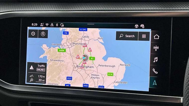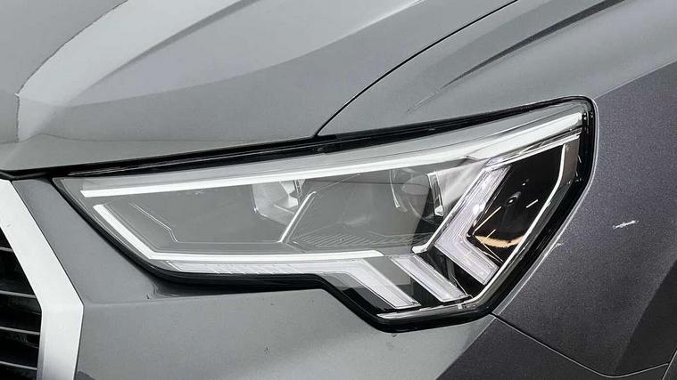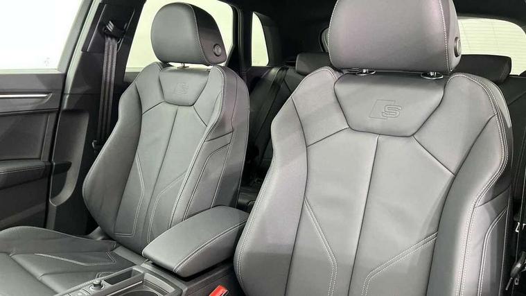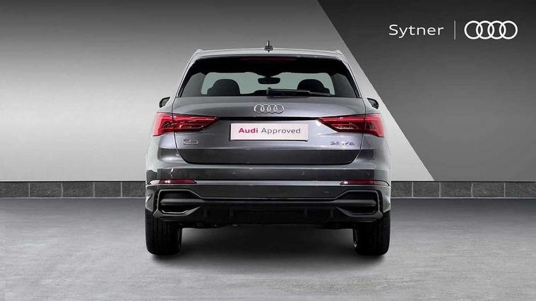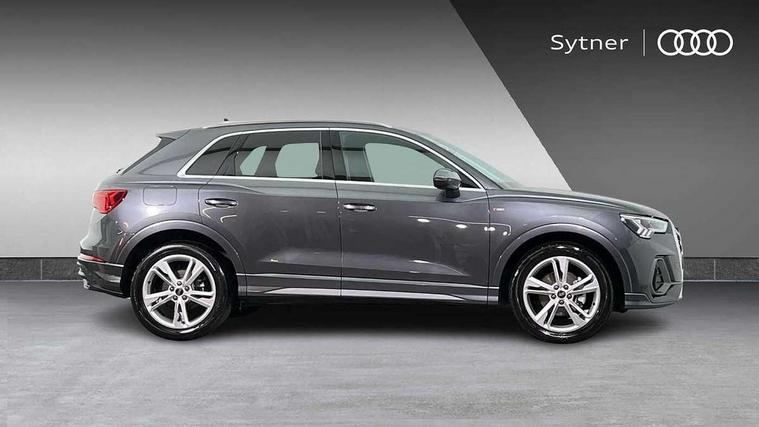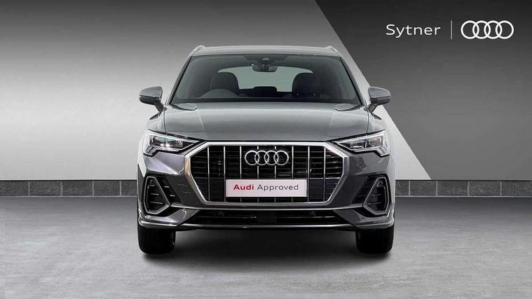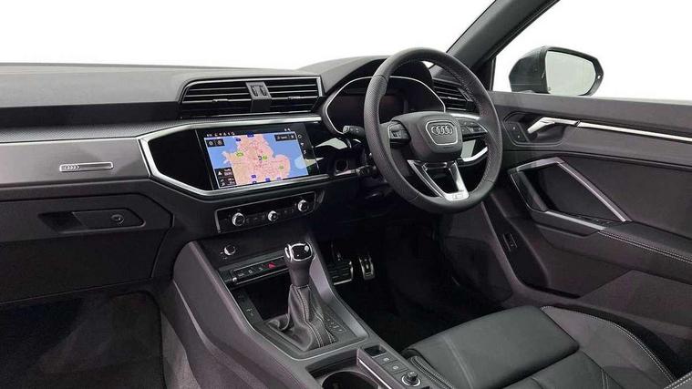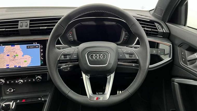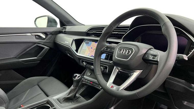 Amazon alexa Integration, Audi connect safety and service, Audi drive select, Audi lane departure warning, Audi Virtual Cockpit - 10.25" display, Bluetooth interface, Camera based traffic sign recognition, Distraction and Fatigue warning, Legal emergency call, MMI Navigation Plus with high resolution 10.1 inch touchscreen colour display, Power operated tailgate, Progressive steering, Service interval indicator, Smartphone interface includes wireless Apple carplay/Android Auto, Start stop system with recuperation, Voice control system with natural language interaction, Sports suspension, 2 USB-C ports with charge and data functions, 6 passive loudspeakers, DAB digital radio module, Acoustic windscreen, Aluminium roof rails, Aluminium window trim, Anthracite black radiator grille, Auto dimming door mirrors, Auto dimming frameless rear view mirror, Body colour front spoiler blade, Electrically folding, adjustable and heated door mirrors with integrated LED side indicators and kerb view function for passenger side, Front and rear electric windows, Front fog lights, Front side air inlets in matt platinum grey, Grille vertical bars in aluminium silver/Matt, High gloss black finish B and C pillars, LED Dynamic rear indicators, LED headlights with LED daytime running lights, LED rear lights, LED third brake light, Privacy glass dark tinted rear and rear-side windows (from B-pillar backwards), Rain and light sensors, Rear diffuser grille in grained matt black, Rear diffuser strip in matt anthracite black, Rear side wing doors, Rear wiper, S line badges on front wings, S Line front and rear bumpers and side skirts, Side skirt insert in matt Platinium grey, Variable front intermittent wipers, 12V socket in rear centre console, 3 seat bench in 2nd row, 3 spoke leather multifunction steering wheel features S badging and grips in perforated leather with contrast stitching, 40:20:40 folding with manual adjustment for 60:40 forwards/backwards position and backrest angle, Adjustable rear seat bench/backrest with centre armrest and cupholder, Black carpet mats, Black cloth headlining, Dual zone electronic climate control, Electric lumbar support, Front and rear black floor mats with contrast stitching in rock grey, Front and rear headrests, Front centre armrest, Height and reach adjustable steering wheel, Horizontal trim strip in matt platinum grey, Illuminated door sill trims with S logo, ISOFIX child seat mounting for front passenger with airbag deactivation and outer rear seat including top tether attachment point for outer rear seats, Luggage compartment sill protection in stainless steel, Manual front seats with height adjustment, Perforated leather gearknob, Single front passenger seat, Stainless steel pedals, Twin leather upholstery with front sport seats + S embossing, Non smoking pack - Q3, 3x3 point rear seatbelts, 6 airbags - Driver, front passenger, curtain and side windows, Audi pre-sense front with pedestrain and cyclist recognition, Electrically operated child locks on rear doors, Electromechanical parking brake, Electronic stabilisation control including ABS, ASR and EDL, Front seatbelt reminder, Hill descent control, Hill hold assist, Pre sense basic, Seatbelt monitoring, Tyre pressure warning, Warning triangle and first aid kit, Anti theft wheel bolts, Immobiliser, Remote central locking, Thatcham approved category 1 anti theft alarm, Aluminium look interior elements, Dark matt brushed aluminium inlay, Detail dashboard around MMI touch colour display in glass look, black with surround in aluminium look, Leatherette door armrest,