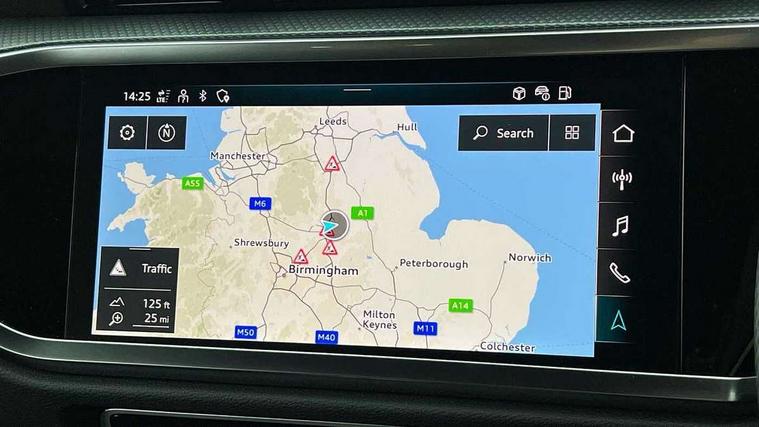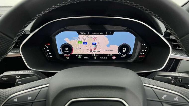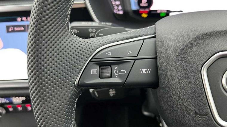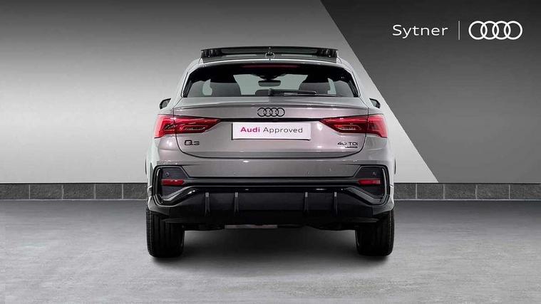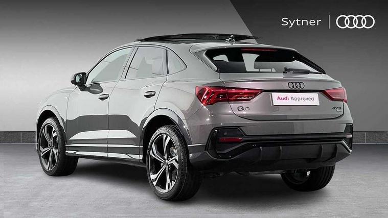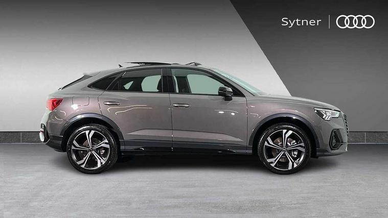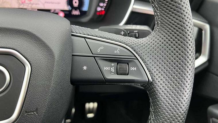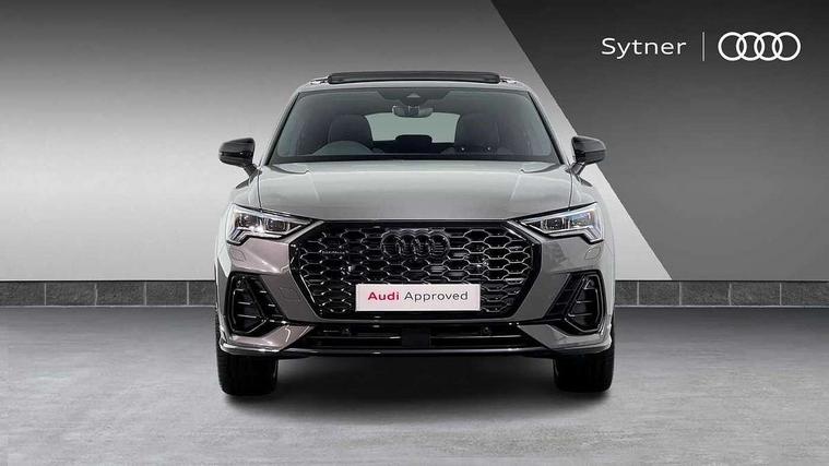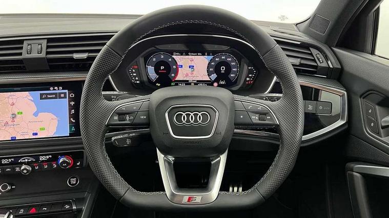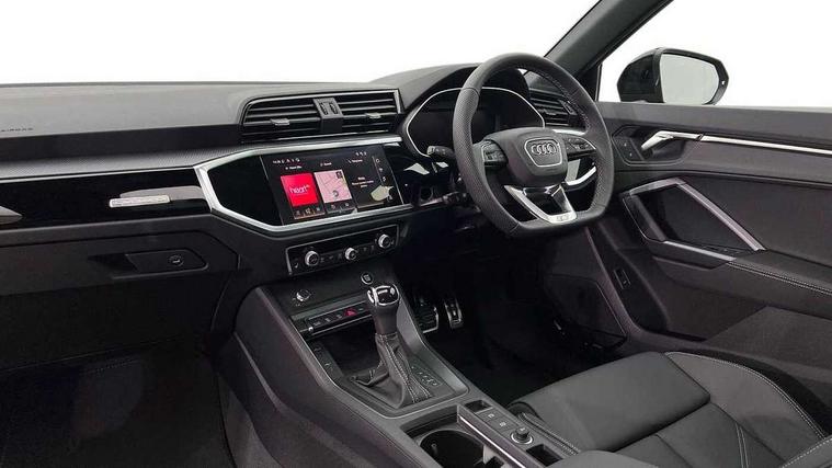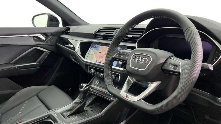 Audi connect safety and service, Audi drive select, Audi lane departure warning, Audi Virtual Cockpit - 10.25" display, Bluetooth interface, Camera based traffic sign recognition, Distraction and Fatigue warning, Legal emergency call, MMI Navigation Plus with high resolution 10.1 inch touchscreen colour display, Power operated tailgate, Progressive steering, Service interval indicator, Smartphone interface includes wireless Apple carplay/Android Auto, Start stop system with recuperation, Voice control system with natural language interaction, Diesel particulate filter, Sports suspension, 2 USB-C ports with charge and data functions, 6 passive loudspeakers, DAB digital radio module, Acoustic windscreen, Audi Beam uses LEDs to project the Audi logo onto the ground as you exit your Q3, Auto dimming door mirrors, Auto dimming frameless rear view mirror, Electrically folding, adjustable and heated door mirrors with integrated LED side indicators and kerb view function for passenger side, Front and rear electric windows, Front fog lights, Front underbody protection in manhattan grey paint finish, High gloss black finish B and C pillars, Honeycomb design radiator grille in matt anthracite black, LED Dynamic rear indicators, LED headlights with LED daytime running lights, LED rear lights, LED third brake light, Privacy glass dark tinted rear and rear-side windows (from B-pillar backwards), Rain and light sensors, Rear diffuser grille in grained matt black, Rear diffuser strip in matt anthracite black, Rear side wing doors, Rear underbody protection in matt black, Rear wiper, S line front and rear bumpers and side skirts in contrasting Manhattan grey paint finish, Variable front intermittent wipers, 12V socket in rear centre console, 3 seat bench in 2nd row, 40:20:40 folding with manual adjustment for 60:40 forwards/backwards position and backrest angle, Adjustable rear seat bench/backrest with centre armrest and cupholder, Black carpet mats, Black cloth headlining, Dual zone electronic climate control, Electric lumbar support, Front and rear black floor mats with contrast stitching in rock grey, Front and rear headrests, Front centre armrest, Height and reach adjustable steering wheel, Illuminated door sill trims with S logo, ISOFIX child seat mounting for front passenger with airbag deactivation and outer rear seat including top tether attachment point for outer rear seats, Luggage compartment sill protection in stainless steel, Manual front seats with height adjustment, Perforated leather gearknob, Single front passenger seat, Stainless steel pedals, Twin leather upholstery with front sport seats + S embossing, Black styling pack - Q3, Non smoking pack - Q3, 3x3 point rear seatbelts, 6 airbags - Driver, front passenger, curtain and side windows, Audi pre-sense front with pedestrain and cyclist recognition, Electrically operated child locks on rear doors, Electromechanical parking brake, Electronic stabilisation control including ABS, ASR and EDL, Front seatbelt reminder, Hill descent control, Hill hold assist, Pre sense basic, Seatbelt monitoring, Tyre pressure warning, Warning triangle and first aid kit, Anti theft wheel bolts, Immobiliser, Remote central locking, Thatcham approved category 1 anti theft alarm, Aluminium look interior elements, Detail dashboard around MMI touch colour display in glass look, black with surround in aluminium look, Leatherette door armrest, Piano black inlay,