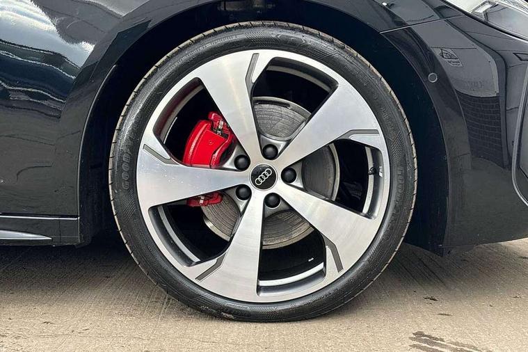 Adaptive cruise control, Advanced driver attention and fatigue montior, Audi application store, Audi assistant, Audi connect emergency call and service, Audi drive select, Audi smartphone interface, Audi virtual cockpit plus with 11.9" OLED colour display, Automatic start/stop system with coasting functionality, Camera based traffic sign recognition, Intersection assist, Lane change assistant with exit warning system, rear cross traffic alert and rear turn assist, Lane departure warning with emergency assist, MMI 10.9" front passenger touch display, MMI navigation plus with high resolution 14.5" OLED touchscreen colour display, Park assist plus, Parking system plus with 360 display, Progressive steering with servotronic, Swerve assist and turn assist, Top view camera, Traffic sign based speed limiter, Sports suspension lowered by 20mm, 2 USB-C ports in both the front and rear, Audi sound system impressive sound with 10 loudspeakers including centre speaker and subwoofer, 6-channel amplifier with a total output of 180 watts, DAB digital radio reception, Smartphone compartment with wireless charging, Aluminium window trims, Auto dimming rear view mirror, Black door handles, Black roof rails, Dark chrome-plated tailpipe trims, Door mirrors - electrically adjustable, heated, folding and auto dimming on both sides, Front and rear electric windows, Front door sill trims with aluminium inlays, illuminated with 'S' logo, Headlight cleaning system, High beam assist, LED daytime running lights, LED rear lights pro incl. dynamic rear indicators and illuminated light strip with animated coming and leaving home function, LED third brake light, Matrix LED headlights with eight light signatures selectable via the MMI or the myAudi app, Privacy glass, Rear and side windows with heat insulating glass, Rear side wing doors, Rear wash/wipe, S Line badges on the front wings, S line bumpers, radiator grille and diffuser in phantom black and diffuser insert in matt anthracite, White rhombus logo projection light in exterior mirrors, Windscreen with acoustic glazing, 3 rear headrests, 3 seat rear bench, 3 spoke leather steering wheel with multi-function buttons with touch control, flattened on top and bottom, with S badging and contrast stitching, 3-zone automatic climate control, 40:20:40 split folding rear seat bench with centre armrest and cup holders, Comfort front centre armrest, Electrically adjustable front seats, Front and rear floor mats, Front sport seats with integrated headrest and S embossed logo, Headlining in black cloth, Heated front seats, i-Size child seat mounting on the front passenger side and i-Size and top tether on the outer rear seats, Luggage compartment lid, electrically opening and closing, Manual steering column height and depth adjustment, Memory function for driver seat, Single front passenger seat, Stainless steel pedals and footrest, Steering wheel grips in perforated leather and shift paddles, Ambient lighting package plus - A5, Black styling package plus - A5, 3x3 point rear seat belts, Acoustic vehicle alerting system, Convenience key with safelock, Driver airbag, Electric child safety locks, First aid kit with warning triangle and vests, Front emergency brake assist, Front passenger airbag, Front passenger airbag deactivation, Hill hold assist, Occupant detection in rear seat area, Proactive passenger protection system for front, sides and rear, Red brake calipers, Seat belt monitoring with rear seat occupant reminder, Side airbags in front and rear with head airbag system and front interaction airbag, Tyre pressure loss indicator, Anti theft alarm, Anti-theft wheel bolts, Keyless Go, Accent surfaces and control buttons in gloss black, Black dashboard with contrast stitching, Softwrap in Dinamica with contrast stitching, Upper and lower interior elements in dinamica microfiber, 20" 5 arm fold design Audi sport alloy wheels in silk matt grey and gloss turned finish, Tyre repair kit,