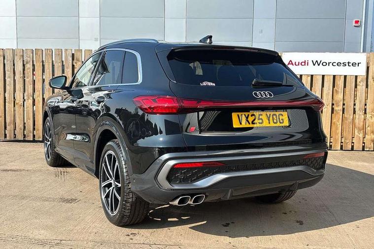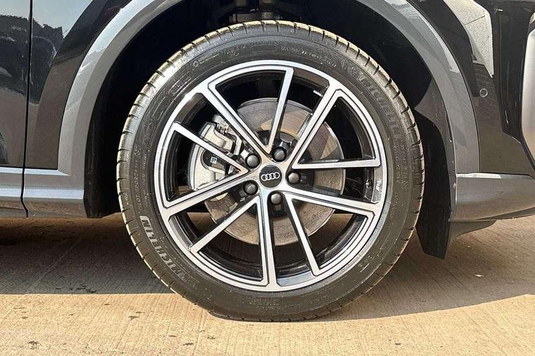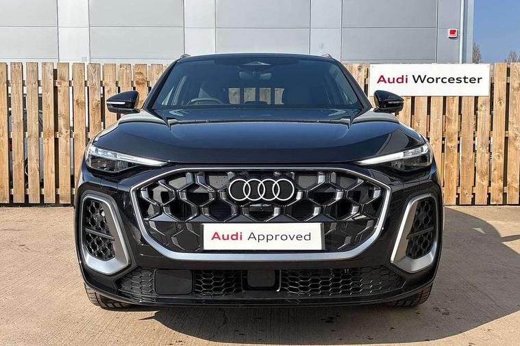Adaptive cruise assist plus with steering intervention, Advanced driver attention alert, Audi application store, Audi connect emergency call and service, Audi digital key, Audi drive select, Audi smartphone interface, Audi virtual cockpit plus with 11.9" OLED colour display, Camera based traffic sign recognition, Fatigue monitor, Front cross traffic intersection assist, Garage door opener, Lane change assistant with exit warning system, rear cross traffic alert and rear turn assist, Lane departure warning with emergency assist, MMI 10.9" front passenger touch display, MMI navigation plus with high resolution 14.5" OLED touchscreen colour display, Park assist plus, Parking system plus with 360 display, PAS, Reversing camera, Swerve assist and turn assist, Top view camera, Traffic sign based speed limiter, Adaptive air suspension, 2 USB-C ports in both the front and rear, DAB Digital radio, Smartphone compartment with wireless charging, Acoustic glass for front door windows, Active digital light signatures - Six additional combinations of active daytime running light signature, Aluminium roof rails, Auto dimming rear view mirror, Body coloured door mirrors, Coming/leaving home lighting function, Digital OLED tail lights including communication light, Electrically adjustable heated and folding + automatically dimming exterior mirrors, Front and rear electric windows, Front door sill trims with aluminium inlays, illuminated with 'S' logo, Headlight cleaning system, Heated rear window, High beam assist, High gloss window surrounds, Inlay and front air inlets in matt anthracite chrome, Logo projection light in exterior mirrors, Matrix LED headlights, Privacy glass, Projection light for rear window, Radiator grille in phantom black, Rear and side windows with heat insulating glass, Rear honeycombe grille in matt black with inlay in matt anthracite chrome, Rear side wing doors, Rear wash/wipe, S Line badge on the front wings, S line bumpers in contrasting Volcano grey metallic paint finish, Towbar preparation, Windscreen with acoustic glazing, 3 rear head restraints, 3 seat bench in 2nd row, 3 spoke leather steering wheel with multi-function buttons with touch control, flattened on top and bottom, with S badging and contrast stitching, 4 way electric lumbar support for driver and front passenger, 40:20:40 split folding rear seat bench with centre armrest and cup holders, Comfort centre armrest, Deluxe 3 zone electronic climate control, Electric steering wheel adjustment, Electrically adjustable front seats with memory function for driver's side, Front and rear floor mats, Front sport seats with integrated head reastrains, Headlining in black cloth, Heated front seats, Heated outer rear seats, Heated steering wheel, i-Size child seat mounting on the front passenger side and i-Size and top tether on the outer rear seats, Interior trim in aluminium look, Luggage compartment lid, electrically opening and closing, Single front passenger seat, Softwrap in leatherette, Stainless steel pedals and footrest, Steering wheel grips in perforated leather and shift paddles, Twin leather upholstery, Ambient lighting package plus - Q5, Sound and Vision pack - Q5, Storage and luggage compartment pack - Q5, Vanadium pack - Q5, 3x3 point rear seatbelts, ABS, Acoustic vehicle alerting system, Convenience key with safelock, Driver and front passenger airbag with passenger airbag deactivation, Electric child safety locks, First aid kit with warning triangle and high visibility vests, Front emergency brake assist, Front side airbags with head airbag system and front interaction airbag, Hill hold assist, Occupant detection in rear seat area, Proactive passenger protection system for front, sides and rear, Side airbags in front and rear with head airbag system and front interaction airbag, Tyre pressure loss indicator, Anti theft alarm, Anti-theft wheel bolts, Remote control key with SAFELOCK and keyless go, Anthracite matt brushed aluminium inlays with linear embossing, Black dashboard with contrast stitching, Steel grey seat stitching, Upper and lower interior elements in artificial leather, 20" 5 twin spoke black metallic, gloss turned finish Audi Sport alloy wheels, Tyre repair kit,