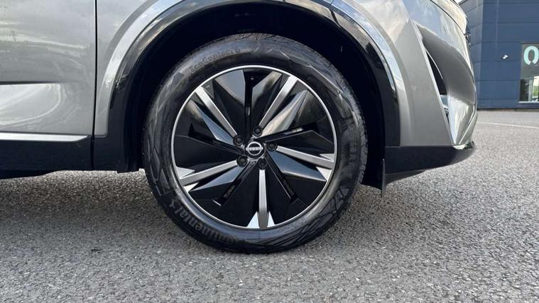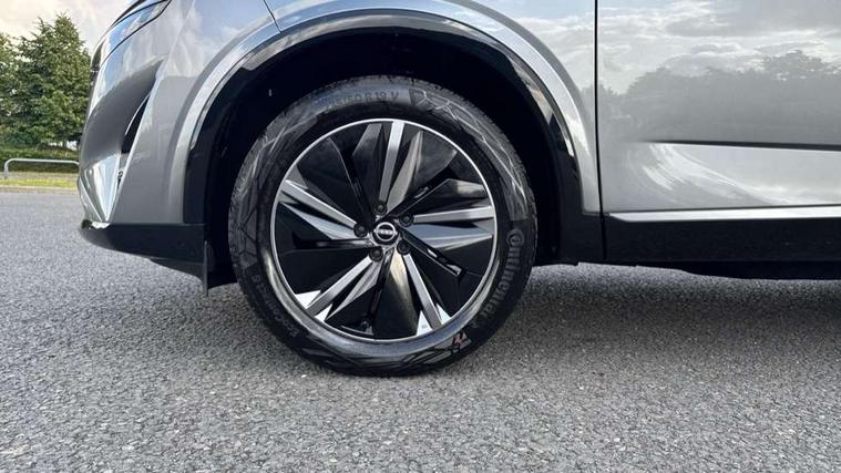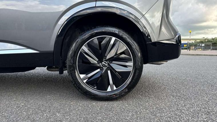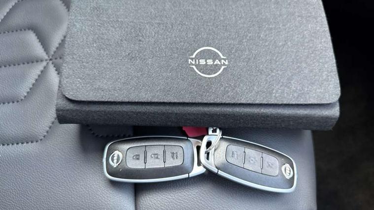 2 front USB-C ports, 2 rear USB-C ports, 360 degree Intelligent around view monitor with moving object detection, Advanced windscreen head up display, Blind spot warning, Drive assist, Drive assist custom mode, Drive modes (sport, normal, eco), Driver drowsiness and attention warning, Electric speed sensitive power steering, Emergency and breakdown call, Emergency lane keep assist, Emergency Stop Signal (ESS), Engine start/stop button, Event data recorder, Front and rear parking sensors, Full Digital 12.3" TFT Digital Combimeter, Google virtual personal assistance, Hands free power tailgate, Idle stop/start system, In-car WIFI hotspot, Intelligent Cruise control (ICC), Intelligent driver alert system, Intelligent forward collision warning, Intelligent lane intervention, Intelligent speed assist, Lane departure warning system, Nissan connect 12.3 inch touchscreen infotainment system, Nissan connect navigation with google maps, Nissan connect services 2.0 (Google Automotive System), Outside temperature sensor, Rear cross traffic alert, Remote control services - door locks, lights, horn and car locator, Reversing detection, Traffic sign recognition with legal speed adjustment, Trip computer, Wireless Apple CarPlay/Android Auto, Wireless charging pad, Limited slip differential, 6 speakers, AM/FM audio system with DAB, Bluetooth audio streaming, Auto dimming frameless rear view mirror, Auto rear wiper when reversing, Body colour mirror caps, Body coloured door handles, Bodyside mouldings, Chrome side window finisher, Electric auto folding door mirrors, Electrically adjustable and heated door mirrors with LED turn indicator, Follow me home headlights, High beam assist, Intelligent auto headlights, LED 3rd brake light, LED daytime running lights, LED headlights with adaptive driving beam, LED rear lights, LED sequential turn lights, One touch front and rear electric windows with remote opening and closing, One touch passenger window, Partially body coloured bumpers, Rain sensing wipers, Rear privacy glass, Rear roof spoiler, Rear side wing doors, Rear styling plate, Reverse tilting door mirrors, Shark fin antenna, Silver roof rails, Splash free rain sensing wipers, Super RED rear LED lights, Super UV and infrared cut glass, Thermaclear heated windscreen, 12v power socket in dashboard and luggage, 3 bench rear seats in 2nd row, 3 rear headrests, 60/40 split folding rear seat bench, Chrome interior door handles, Dark headlining, Driver and passenger sunvisors with illuminated vanity mirrors, Driver seat back pocket, Dual zone automatic climate control with pollen filter, Electrically adjustable driver seat, Electrically adjustable lumbar support for driver, Fixed Glass roof with electric sunshade, Front centre console and armrest, Front cupholders, Front door with bottle holders, Heated front seats, Heated steering wheel, Height adjustable front headrests, Height adjustable passenger seat, Leather shift knob, Luggage board system, Luggage space lighting, Manual adjustable lumbar support for passenger, Multifunction steering wheel, Passenger seat back pocket, Quilted/PVC upholstery, Rear door bottle holders, Rear seat armrest with 2 cupholders, RGB ambient light (Full area coverage), Single front passenger seat, Smooth leather steering wheel, Tilt/telescopic adjustable steering wheel, Two rear isofix child seat anchorage points with top tether, 3x3 point rear seatbelt pretensioners + load limiters, ABS with EBD and brake assist, Autonomous emergency braking, Child locks on rear doors, Curtain and front side, far side airbags, Driver and passenger airbags, Driver, passenger and 2nd row rear seat belt reminder, Electric handbrake with auto hold function, Front seatbelt pretensioners + load limiters, Height adjustable front seatbelts, Hill start assist, Intelligent blind spot intervention, intelligent front emergency braking, Intelligent rear automatic braking, Tyre pressure monitoring system, Vehicle dynamic control, Engine immobiliser, Intelligent key with walk away lock and approach unlock functions, Remote central door locking with deadlocking, Thatcham alarm, 19" Diamond cut alloy wheels, Tyre puncture repair kit,