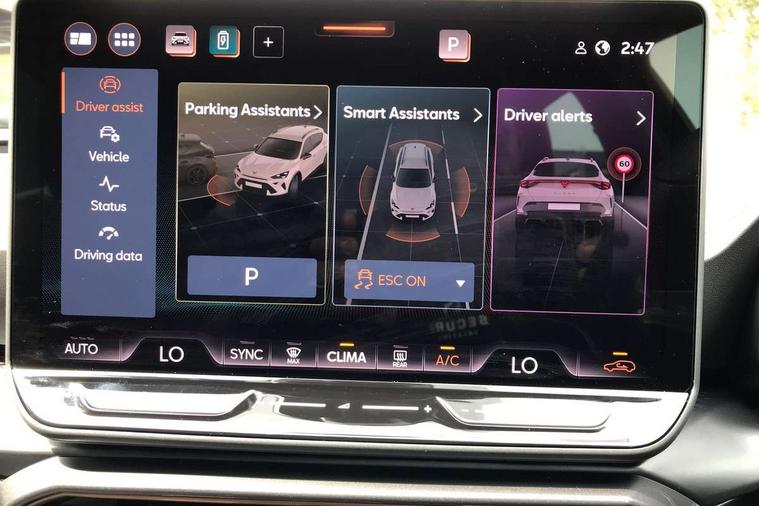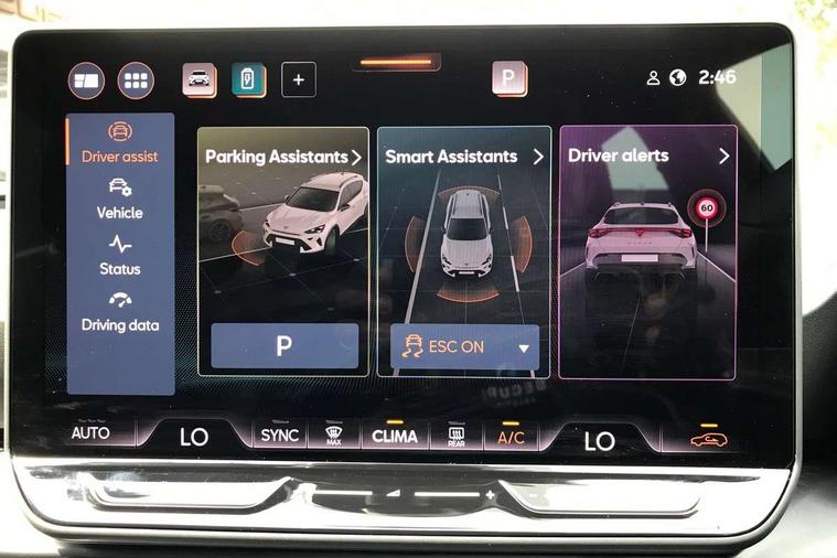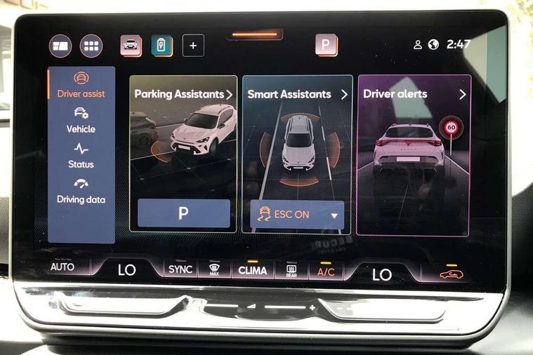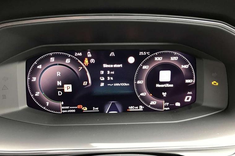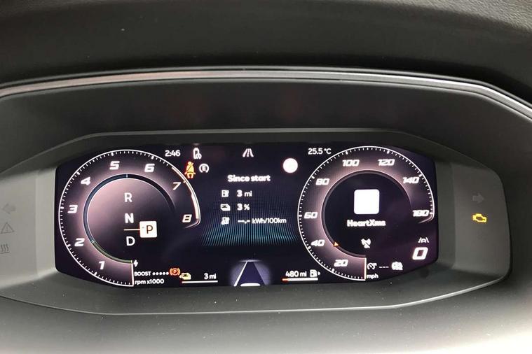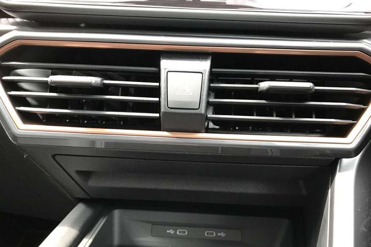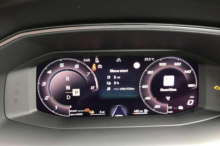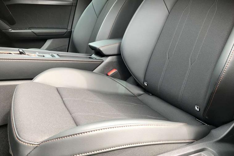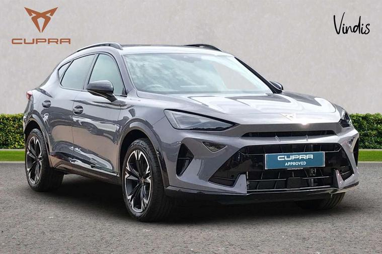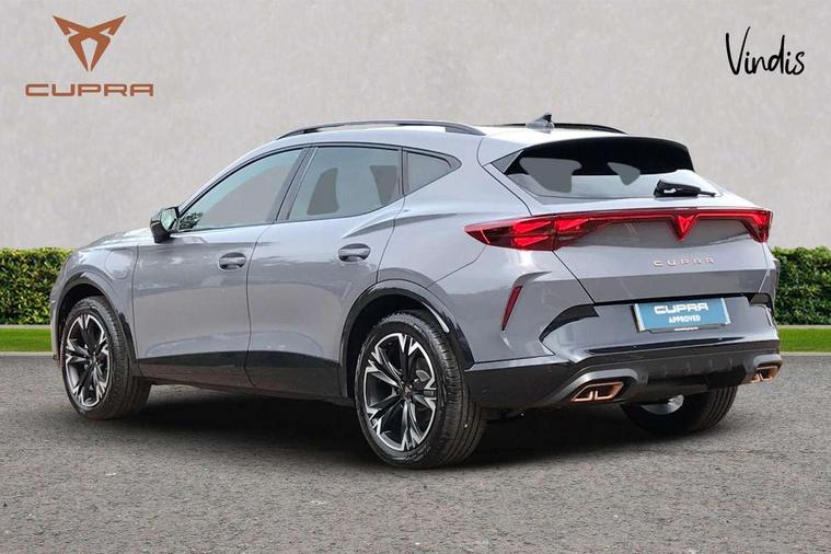 10.25" digital cockpit and configurable dashboard, Adaptive cruise control with follow-to-stop and speed limiter, Advanced driver alert system, Driving profile selection, Dynamic road sign display, Emergency steering support with turn assist, Forward collision warning with automatic braking, Front and rear parking sensors, Front cross traffic assist, Full link phone integration, Lane assist, Progressive steering, RPM, trip computer, outside temp gauge, instrument light brightness, low fuel warning light, lights on reminder, gearshift indicator, Service interval indicator, Start/stop system with regenerative braking, Voice control system, Wired Android Auto, Wireless apple carplay, Wireless phone charger, 10 amp mode 2 charging cable, 32 amp mode 3 charging cable, CUPRA sport suspension, Electronic locking differential and dynamic traction support, 2 front and 2 rear USB type C sockets, 7 speakers, Media system with navigation, 12.9" touchscreen display, voice control, DAB, steering wheel mounted controls, Auto dimming rear view mirror, Body colour door handles, Body coloured bumpers, Dark grey wing mirror, Daytime running light with automatic headlight control and coming home feature, Door panel ambient lighting, Dynamic headlight range control, Electric front/rear windows, Electrically adjustable, heated and folding door mirrors, Gloss black roof rails and window surrounds, High beam assist, LED 3rd brake light, LED front fog lamps with cornering function, LED Headlights, LED Taillights with dynamic indicator, Rain sensing wipers, Rear diffuser with copper simulated exhaust pipes, Rear fog lights, Rear side wing doors, Rear wash/wipe, Tinted rear windows, Welcome lights (within exterior mirror housing), 12V socket, 2 front and 2 rear reading lights, 3 seat bench in 2nd row, 60/40 split rear bench seat with armrest and mechanical seat release, Black headlining, Black interior roof lining, Cupra sports pedals, Dust/pollen filter, Front and rear head restraints, Front centre armrest, Heated supersports multifunction leather steering wheel with satellite buttons and gear shift paddles, Height/reach adjust steering wheel, Illuminated aluminium doorsteps, Illuminated interior front door sills, Illuminated sunvisor with mirror, Interior ambient lighting, Isofix, Manually adjustable height and lumbar support for front seats, PVC/Cloth upholstery with copper stitching + Sport seats, Satellite steering wheel, Single front passenger seat, Storage pockets on rear of front seats, Three zone climate control with control panel in rear, 3 point seatbelts on all rear seats, ABS, Brake control system - ESC and brake booster, Child proof door locks, Driver and front passenger airbags with front passenger airbag de-activation, Electronic parking brake, Front and rear disc brakes, Front side curtain airbags, Hill hold control, Public e-call, Seat belt reminder for front and rear seats, Tyre pressure monitoring system, Anti theft alarm system, Central locking system Keyless Go, Locking wheel bolts, Warranty - 5 years/90, 000 miles, Copper and aluminium interior detailing, 18" Sonora machined silver alloy wheels, Breakdown and tool kit,
