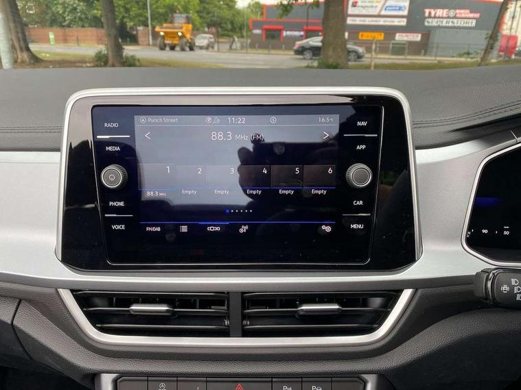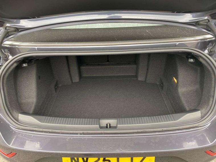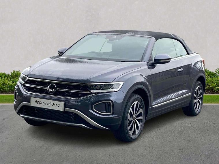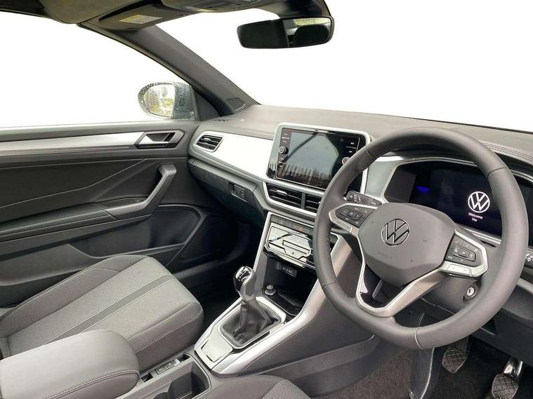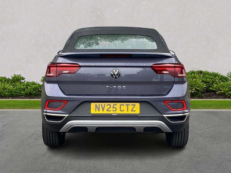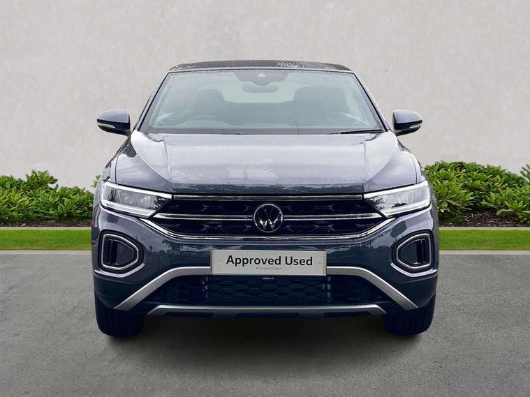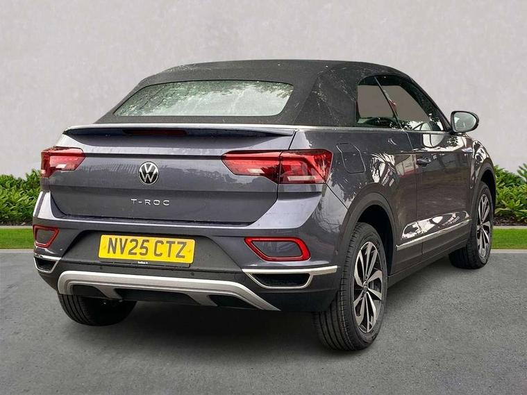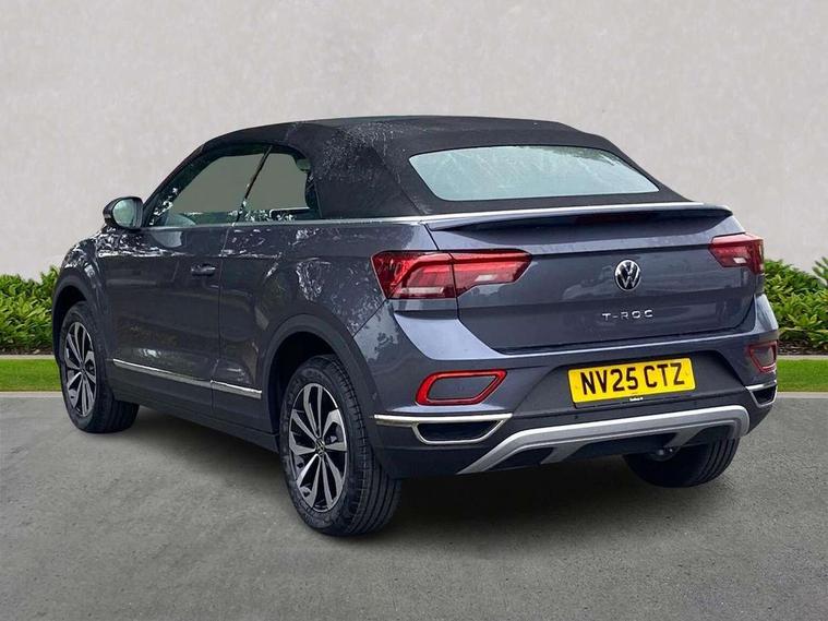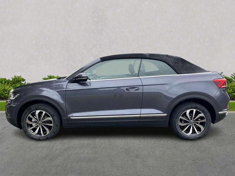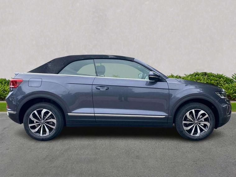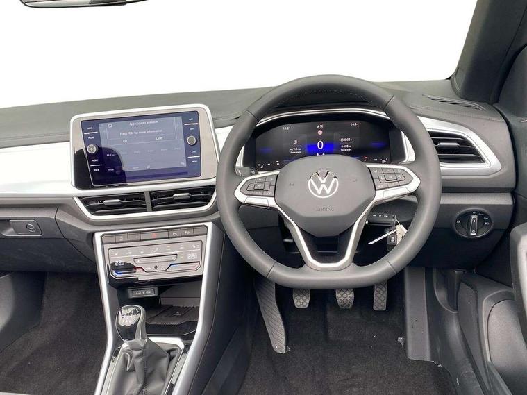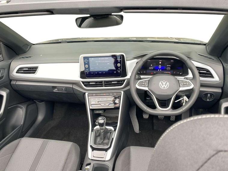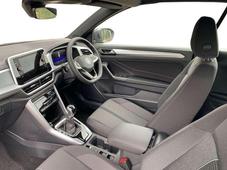 Adaptive cruise control and speed limiter, Advanced driver attention and drowsiness monitor, Brake pad wear indicator, Car information display, Driver tips and journey analysis, Dynamic road sign display, Emergency call service, Modified key software - reduce switch off time for key status change to Long no motion, Multifunction computer with visual gear change recommendation for fuel consumption, Multifunction front facing camera, Online services, Park assist including front and rear parking sensors, Speedo and rev counter, electronic odometer, trip, service interval display and exterior temperature gauge, Start/stop system with brake energy recovery, Tailgate/trunk lid release from outside, Warning sound and light for front seatbelts unfastened, Wireless App-Connect for apple Carplay and android Auto, Digital radio reception (DAB), Diversity antenna for FM reception, Mobile phone interface with inductive charging feature, Music playback - MP3, WMA and AAC files, SMS functionality - read, compose and send SMS messages using touch-screen display, Title and cover art display, USB-C Interface and USB charging socket, We Connect and We Connect Plus functionality, Ambient lighting with logo projection, Auto dimming interior rear view mirror, Automatic hazard lights activation under emergency braking, Automatic headlight control with LED separate daytime running lights with coming/leaving home function, Black roof, Body colour door handles, Body colour rear boot spoiler, Body coloured bumpers and radiator grille with chrome trim and front fog lamps with chrome bezel, Chrome effect left and right trapezoid exhaust tailpipe fascia surround, Dark red rear combination lamps in LED technology, Dusk sensor, Exterior mirrors aspherical on driver side, convex on front passenger side, Headlight range control, Heat insulating glass windscreen, LED 3rd brake light, LED rear number plate lights, Power operated canvas convertible top, Power windows with comfort operation and circuit breaker, Rain sensor, Rear boot, Rear exhaust tailpipe, Rear fog light on one side and reversing lights on both sides, Remote electrically foldable door mirrors, puddle lights and reverse activated passenger door mirror, Volkswagen roundel, Windscreen wiper with intermittent wipe light, Without exterior ambient lighting, 12V socket in centre console storage area, 2 LED front reading lights, 2 seat bench in 2nd row, 50:50 Split folding rear seat backrests with fixed rear seat bench, Air care climatronic air conditoning system with active combination filter and 2-zone temperature control, Black door lower parts with chrome trim, Chrome plated surround to light, mirror and window switch, Door and side trim panel with leatherette insert, Easy entry backrest release, Front and rear carpet mats with black stitching, Front centre armrest, Front cupholders x 2, Front door pockets, Front seat back storage pockets, Heated multi function steering wheel, Height/reach adjust steering wheel, Instrument lighting, white adjustable panel illumination, Interior light delay, Interior light in footwell, Interior lighting with switch off delay and contact switches on all doors, Interior white ambient lighting and surround lighting, Isofix child seat preparation, Lockable glove compartment with light, Luggage compartment lighting, Rear head restraints, Single front passenger seat, Sun visors with illuminated vanity mirrors, Driver assistance pack without proactive passenger protection - T-Roc cabriolet, 2 x 3-point seatbelts/outer rear seats with ECE label, Driver and front passenger airbag with front passenger airbag deactivation, Driver and front passenger safety-optimised head restraints, Drivers seatbelt reminder, Electronic parking brake, Electronic Stability Control (ESC) including ABS, ASR and EDL, Front and rear disc brakes, Front assist with autonomous emergency braking, Pedestrian monitoring, Predictive pedestrian protection, Rigid safety cell with front and rear crumple zones, Side airbag/thorax airbag system, for front passengers, Three point height adjust front seatbelts + pretensioners, Two tone horn, Tyre pressure loss indicator, Volkswagen roadside assistance, Anti-theft alarm system with interior protection and central locking system with SAFELOCK, radio remote control and 2 remote control folding keys, Electronic engine immobiliser, Trims for alloy wheels,