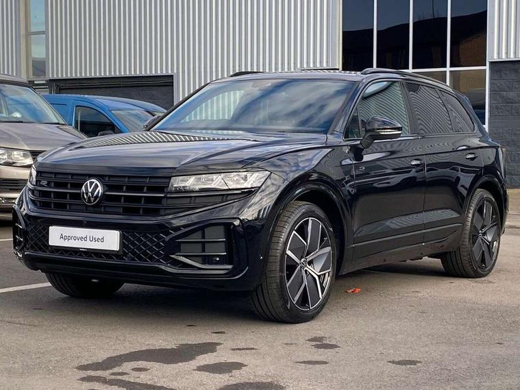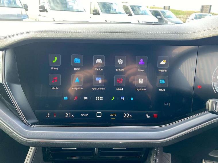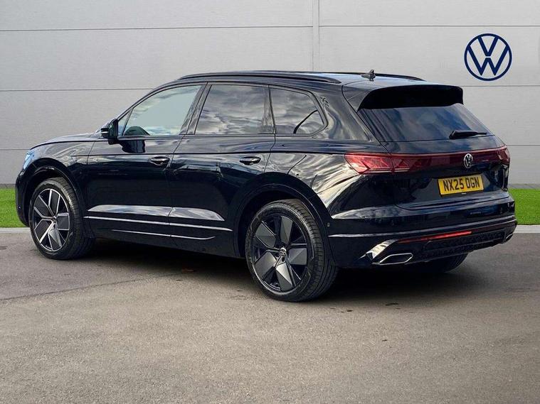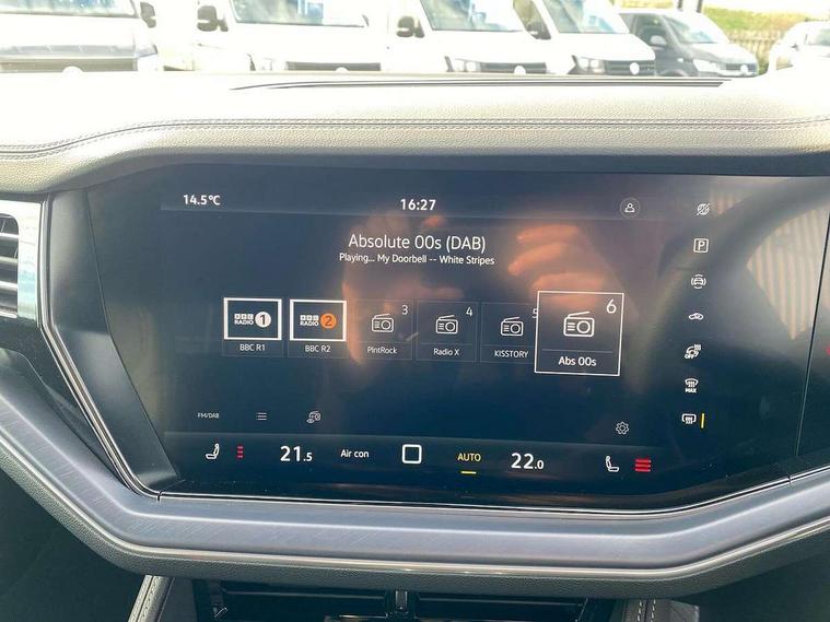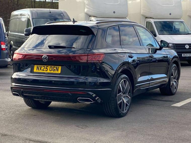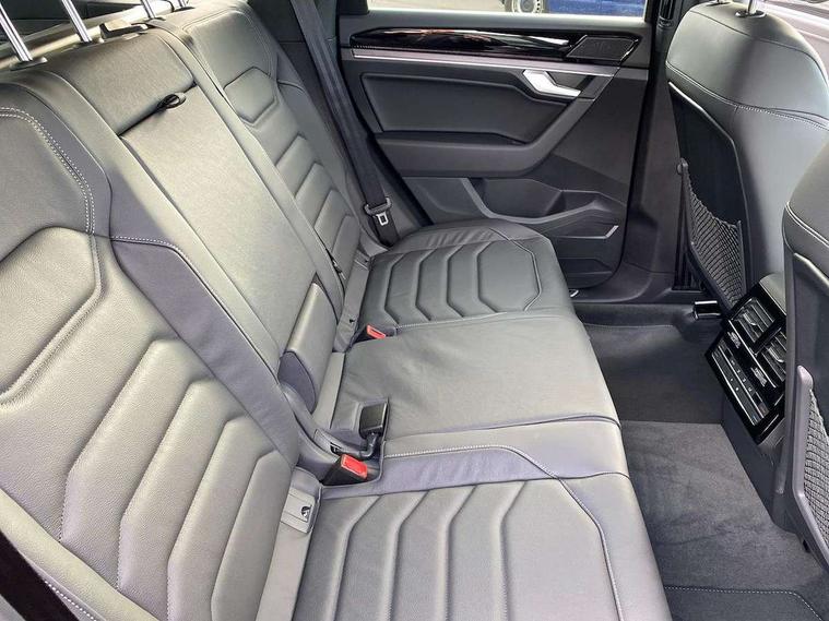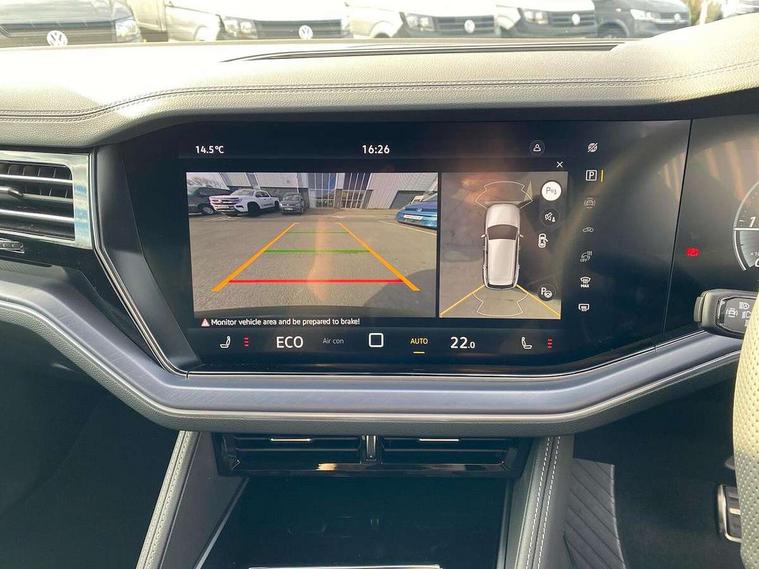 15" Screen Top infotainment system Premium (MIB3), Adaptive cruise control, Advanced driver attention and drowsiness monitor, Driver profile selection, Dynamic road sign display, E-Sim card for online connectivity, eCall emergency system, Innovision cockpit, Intelligent park assist, Mobile phone interface with inductive charging, Multi-colour Active Info display, Park Assist - Sensor controlled steering aid to assist parallel or bay parking, PAS, Warning signal and warning light for front and rear seatbelts not fastened, Wireless app connect, Adaptive chassis control, DAB Digital radio, Diversity antenna for AM/ FM reception, We Connect and We Connect Plus functionality, Automatic coming/leaving home lighting function, Automatic headlights, Black door mirrors, Black style comfort bumpers, Dynamic headlight range control with dynamic cornering light, Electric front tilt/slide panoramic sunroof and fixed rear sunroof, Electrically power adjustable, heated, folding, auto dimming, front passenger exterior door mirror lowering function, External USB type C socket and charging sockets, Gloss black roof rails, HD LED Matrix beam plus digital headlight projection with variable light distribution, Headlight washers, Highway light, LED 3rd brake light, LED daytime running lights, LED rear combination lamp with variable lighting functions and special styling, Poor weather light, Rain sensor, Rear exhaust tailpipe, Rear fog light with back up light on both sides, Rear light bar and illuminated logo, Rear side wing doors, Rear wiper, Stainless steel door sill protection, 12V socket in centre console, 3 rear headrests, 3 seat bench in 2nd row, 4 zone climate control, Airbag label on sun visor and B-pillar, Brushed stainless steel pedals, Double sun visors with illuminated vanity mirrors, Front + rear carpet mats, Front centre armrest, Leather wrapped multifunction sports steering wheel, heated, with touch control and shift paddles, Mechanical rear seat release, Power adjustable lumbar support in front, Power seats in front, right side with memory features and seat cushion depth adjustment, Rear seat backrest and split folding with center armrest, Single front passenger seat, Memory pack plus - Touareg, 3 point seatbelts, outer rear with ECE lable, ABS, Child locks on rear doors, Curtain airbags, Driver and front passenger safety-optimised head restraints, Driver/Front Passenger airbags, Extended pedestrian protection measures, Front assist, Front seat side impact airbags, Generative braking with start and stop system, Height adjustable 3 point front seatbelts with pre tensioners, Passenger airbag deactivate switch, Three 3 point rear seatbelts, Two tone horn, Tyre pressure loss indicator, Warning triangle and first aid kit, Alarm system with interior protection, Easy open and close sensor controlled luggage compartment opening and closing with remote unlocking, Keyless Access Keyless locking and starting system with SAFELOCK, Aluminium decorative inserts, Black decorative trims, Gloss black decorative inserts in centre console, Tool kit,