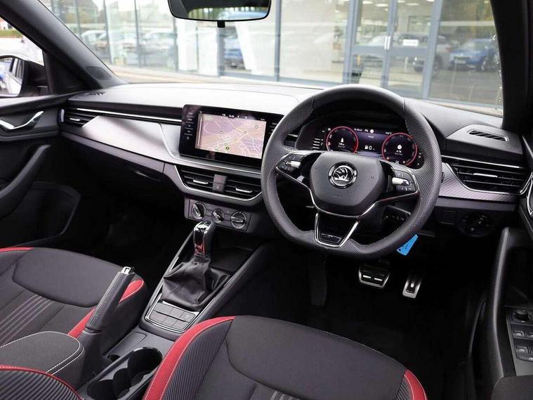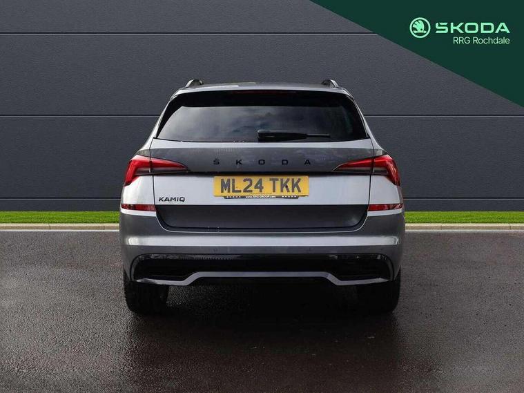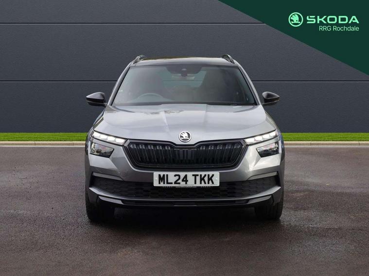 Amundsen satellite navigation with 9.2" glass colour touchscreen display, web radio, voice control and traffic sign recognition, Bluetooth system, E-call, Front assist system, Gesture control, PAS, Service indicator, Speed limiter, Wireless Smartlink for Apple CarPlay (wired for Android Auto), 8 Speakers, Auxiliary input socket, DAB Digital radio, Black door mirrors, Black radiator grille, Black rear diffuser, Body colour bumpers, Body colour door handles, Body colour roof spoiler, Boot lettering in black, Chrome grille surround, Dimming rear view mirror with black surround, Electrically adjustable and heated door mirrors, Front and rear electric windows, Front sport bumper, Full LED headlights with adaptive front light system, cornering function, fog lights and dynamic indicators, Headlight range control, Heated rear window, High functionality rear led lights with dynamic indicators, KAMIQ Door sills, LED daytime running lights, LED third brake light, Light sensors, Monte carlo plaque, Panoramic sunroof with black roof rails, Privacy glass, Rain sensor, Rear fog lights, Rear side wing doors, Rear wiper, 12V Accessory socket in centre console, 3 seat bench in 2nd row, Aluminium pedals, Black ceiling for black/beige interior, Black roof lining, Chrome inner door handles, Cloth upholstery, Front head restraints, Glove compartment with illumination, Ice scraper, Isofix child seat fittings on outer rear seats, ISOFIX on front passenger seat, Leather gear lever, Manual lumbar support for front seats, Rake/reach adjustable steering wheel, Reading lights, Single front passenger seat, Sports seats, Sun visors with illumination on front passenger, Textile floor mats, Third rear headrest, Top tether for front passenger seat, Umbrella in driver's door, 3x3 point rear seatbelts, Airbags - driver and front passenger, ESP, Front passenger airbag deactivation switch, Front side airbags with curtain airbags, Hill hold control, Manual parking brake, Manual rear child locks, One tone horn, Rear disc brakes, Seatbelt reminder for driver an co-driver, Traction control, Tyre pressure monitor, Anti-theft alarm system with interior monitoring, backup horn, towing protection and remote central locking with SAFE system, Anti-theft wheel bolts, Electronic engine immobilizer, Chrome air vent surrounds, 18" Vega alloy wheels in black,