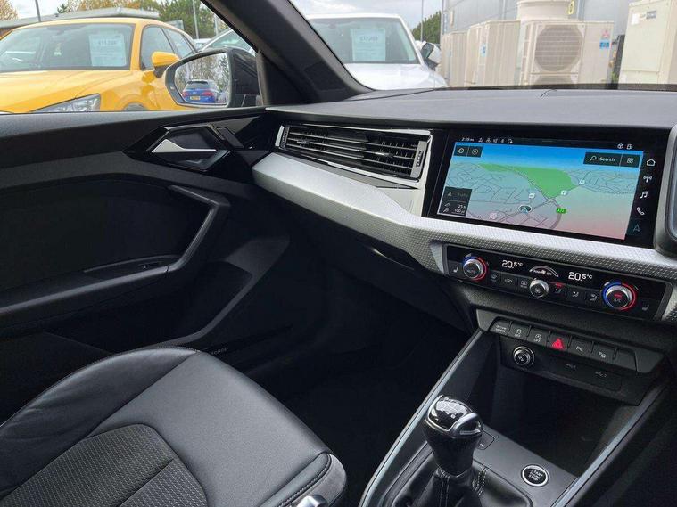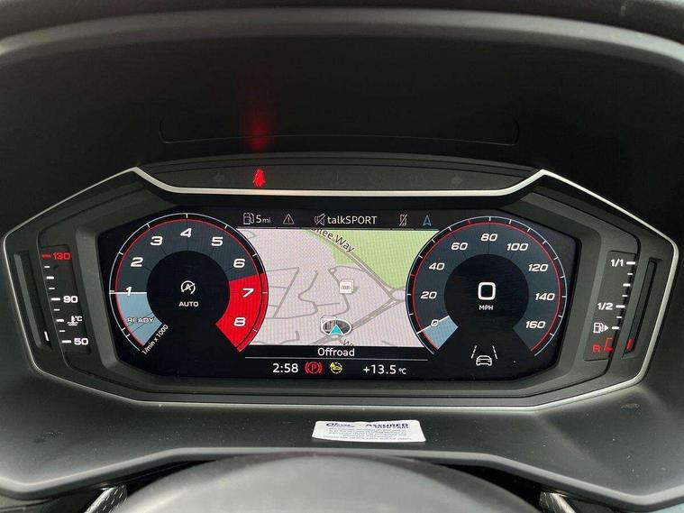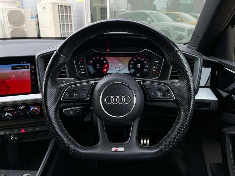 Adaptive speed assist, Audi connect safety emergency and service including E-call, Audi drive select - power steering assistance + engine, Automatic start/stop system, Bluetooth interface, Cruise control, Driver's information system, Electromechanical power steering, Emergency services call system, Lane departure warning system, Service interval indicator, Speed limiter, Voice control system, Washer fluid level indicator, Sports suspension, 1 x SDXC card reader, 2 x USB type C connection points, DAB Digital radio, 3rd brake light, Auto dimming rear view mirror, Black Audi rings and black badging (with model name in black, no engine badging), Body coloured door mirrors, Door sill trims with aluminium inlays and logo, Electric front and rear windows, Electrically adjustable, heated, folding door mirrors with integrated LED side indicator, Front side air inlets in grained matt black and C frame in titanium black, Front wing badges, Heat insulating glass windscreen and side windows, Heated rear windscreen, LED headlights with LED rear lights + dynamic rear indicators + headlight adjustment and high beam, turning light + LED daytime running lights, Radiator grille and rear diffuser in matt titanium black, Radiator protective grille frame in matt aluminium silver, Rain and light sensors, Rear fog lights, Rear side wing doors, Rear wing door, Rear wiper, Side front spoiler lips in grained matt black, 12V socket in centre console with two cup holders, 3 rear seats with headrests, 3 seat bench in 2nd row, 3 spoke flat bottomed multi-function plus leather steering wheel with S badging, grips in preforated leather and contrast stitching, 40:60 Split folding rear seat or folded fully, Black cloth headlining, Driver and passenger seat with manual height adjust with forward and backwards adjustment, Frequency alcantara/leatherette upholstery and S embossed logo + front sports seats, Front and rear black floor mats with contrast stitching in fine silver, Front head restraints, Front passenger seat, Height and reach adjustable steering wheel, ISOFIX child seat mounting for front passenger and outer rear seats including top tether attachment point of outer rear seats, Leather gear knob with aluminium trim, Luggage compartment light with front and rear reading lights, Manually adjustable lumbar support in front seats, Stainless steel pedals, Black exterior styling pack - A1 Sportback Vorsprung, Comfort and sound pack - A1 Sportback, Luggage compartment pack - A1, Multicoloured LED Ambient lighting pack - A1 Sportback, Plus pack - A1 Sportback, Technology pack - A1 Sportback, 3x3 point rear seatbelts, Audi pre-sense front with pedestrain and cyclist recognition, Brake assist function, Driver and front passenger airbag with front side and head airbags, Electronic Stability Control including ABS, EBD, ASR and EDL, Front passenger airbag deactivation switch, Hill hold assist, Manual rear child locks, Seatbelt height adjustment for front seats, Seatbelt monitoring, Tyre pressure warning light, Warning triangle and first aid kit, Advanced key, Anti theft alarm, Anti theft wheel bolts and loose wheel warning, Immobiliser, Remote central locking with 2 foldaway keys, Aluminium trim for control switches, air vents and digital instrument cluster, Silver grey inlays polygon structure in diamond paint finish, Structured grey accent areas including air vents, door handle recesses and centre console in quartz paint finish, 18" 5 double arm design alloy wheels in matt titanium look with diamond cut finish,