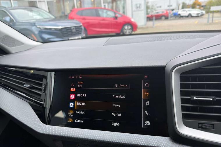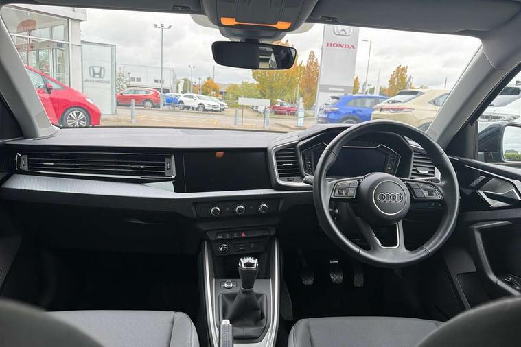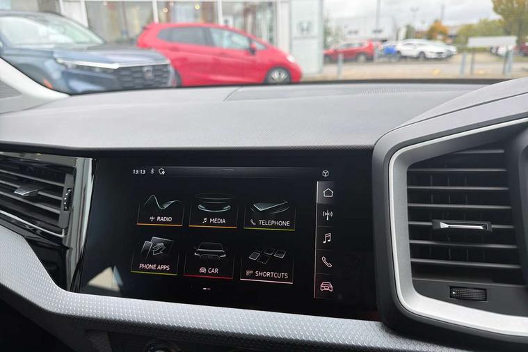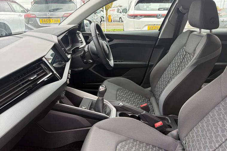 10.25" Digital instrument cluster display classis style instrument dials + speed, odometer, time, outside temperature, telephone menu + fuel level warning, Audi connect safety emergency and service including E-call, Audi drive select - power steering assistance + engine, Audi smartphone interface with connect compatible smartphone via USB directly MMI display + Nav, music, third party apps controlled via MMI controller, Automatic start/stop system, Bluetooth interface, Cruise control, Driver's information system, Electromechanical power steering, Lane departure warning system, Service interval indicator, Speed limiter, Voice control system, Washer fluid level indicator, Dynamic suspension, 1 x SDXC card reader, 2 x USB type C connection points, DAB Digital radio, MMI radio plus with 8.8" colour MMI display screen and MMI touch, Auto dimming rear view mirror, Body coloured bumpers, Body coloured door mirrors, Electric front and rear windows, Electrically adjustable, heated, folding door mirrors with integrated LED side indicator, Front side air inlets in grained matt black and C frame in titanium black, Heat insulating glass windscreen and side windows, Heated rear windscreen, LED headlights with LED rear lights + dynamic rear indicators + headlight adjustment and high beam, turning light + LED daytime running lights, Radiator grille and rear diffuser in matt titanium black, Radiator protective grille frame in matt aluminium silver, Rain and light sensors, Rear fog lights, Rear wiper, Scandium grey tailpipe trim, Side front spoiler lips in grained matt black, 12V socket in centre console with two cup holders, 3 rear seats with headrests, 40:60 Split folding rear seat or folded fully, Door sill trims with aluminium inlay, Driver and passenger seat with manual height adjust with forward and backwards adjustment, Front head restraints, Front/rear floor mats, Height and reach adjustable steering wheel, ISOFIX child seat mounting for front passenger and outer rear seats including top tether attachment point of outer rear seats, Leather gear knob with aluminium trim, Leatherette handbrake grip, Luggage compartment light with front and rear reading lights, Manually adjustable lumbar support in front seats, Novum cloth upholstery with front sport seats, Titanium grey cloth headlining, Luggage compartment pack - A1, 3x3 point rear seatbelts, Audi pre-sense front with pedestrain and cyclist recognition, Brake assist function, Driver and front passenger airbag with front side and head airbags, Electronic Stability Control including ABS, EBD, ASR and EDL, Front and rear seatbelt reminder, Front passenger airbag deactivation switch, Hill hold assist, Seatbelt height adjustment for front seats, Seatbelt monitoring, Tyre pressure warning light, Warning triangle and first aid kit, Anti theft alarm, Anti theft wheel bolts and loose wheel warning, Immobiliser, Remote central locking with 2 foldaway keys, Aluminium trim for control switches, air vents and digital instrument cluster, Silver grey accent areas including air vents, door handle recesses and centre console in diamond paint finish, Slate grey inlays polygon structure in fine paint finish,