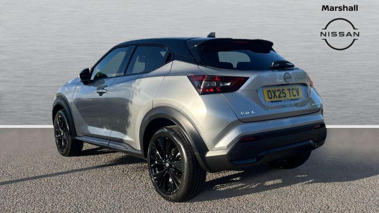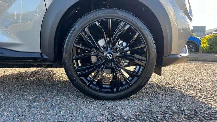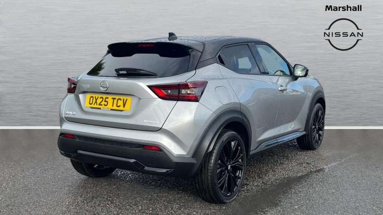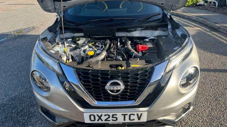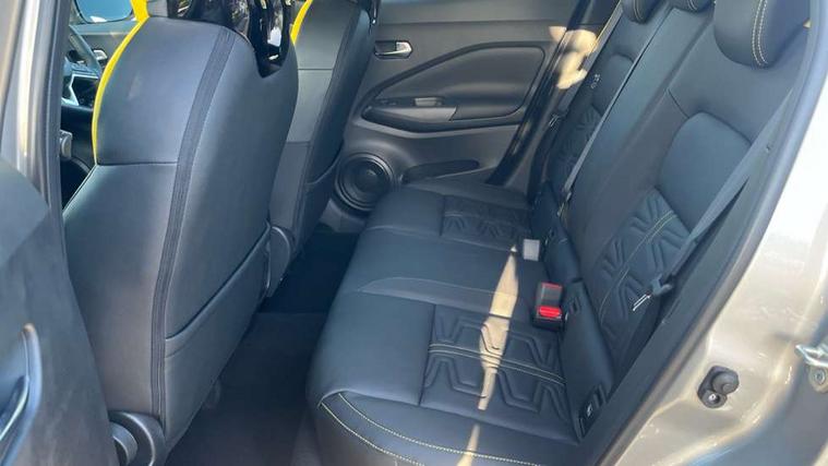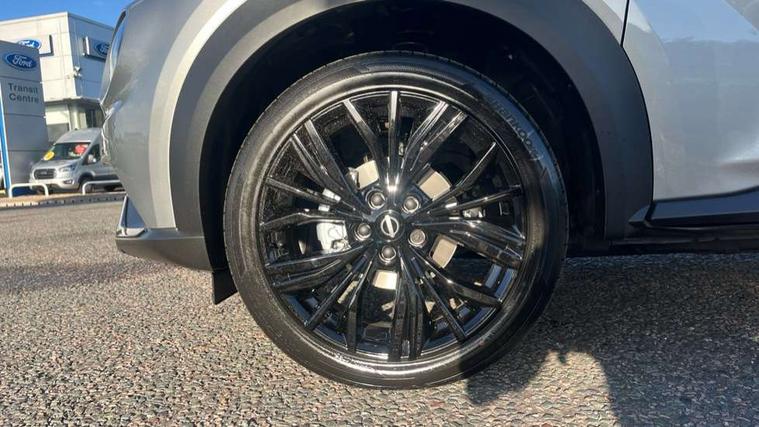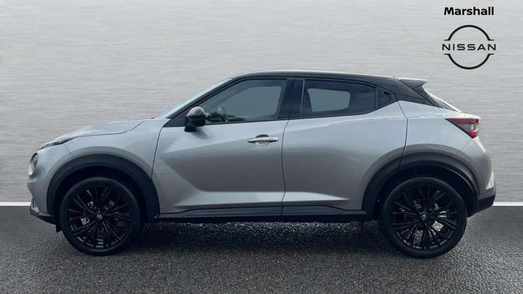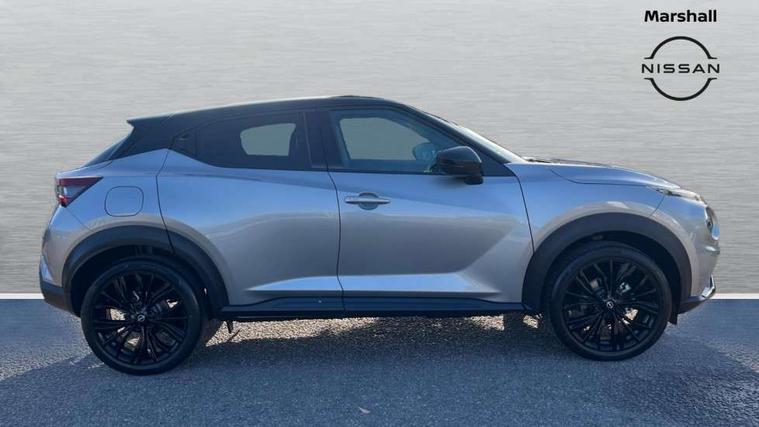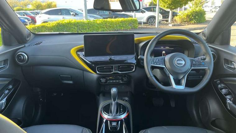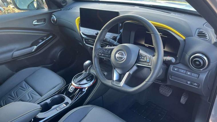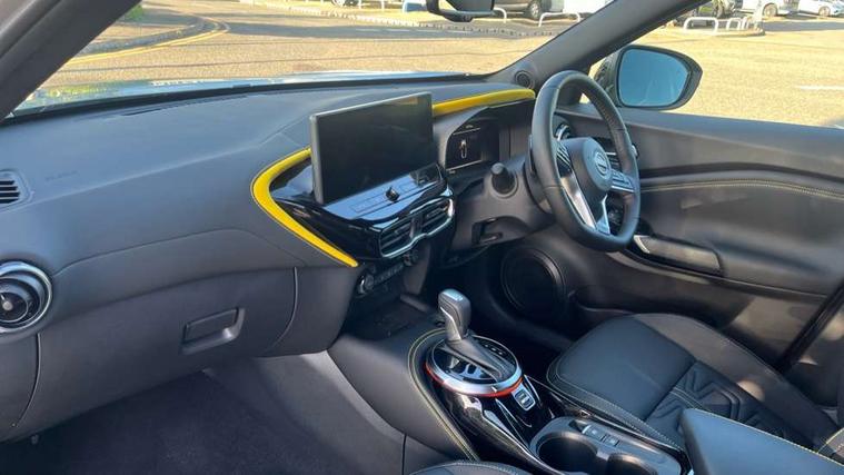 12.3" full colour TFT screen combimeter, Drive modes select (Eco, normal and sport), Emergency and breakdown call, Front parking sensor, Idle start/stop system, Intelligent driver alert system, Intelligent lane intervention, Lane departure warning system, Nissan connect 12.3" touch screen entertainment system, Nissan connect nav with TomTom traffic, Nissan connect services, Outside temperature sensor, Power Steering, Rear parking sensor, Stop/start button, Traffic sign recognition, Trip computer, Voice recognition, WiFi connectivity, Wireless Apple CarPlay and Google Android auto, Wireless Smartphone charger, 10 Bose speakers 8 speakers and 2 headrest speakers for driver/passenger seats, 2 X Rear console USB port, Bluetooth system, USB, Aux-in and 12V socket, Bose personal plus audio system, DAB Digital radio, Auto dimming frameless rear view mirror, Automatic hazard signal with emergency stop signal, Body colour door handles, Electrically adjustable door mirrors with integrated indicators, Follow me home headlights, Front and rear electric window with one touch driver window, High beam assist, LED 3rd brake light, LED daytime running lights, LED front fog lights, LED headlamps, LED rear fog lamp, LED rear lamps, One touch passenger window, Rear privacy glass, Rear side wing doors, Rear wiper, Roof spoiler, Shark fin roof antenna in solid Black, Solid black door mirrors, Three blink turn signal, 3 height adjustable rear headrests, 3 seat bench in 2nd row, 60/40 split folding rear seat, Card holder on driver sunvisor, Door ambient lighting, Driver seat back pocket, Driver side rear coat hanger, Driver/passenger sunvisors and vanity mirrors, Front and rear cabin lights, Front armrest, Front door pockets with bottle holders, Front head restraints, Front/rear passenger grab handles, Gear console ambient circle lighting, Height adjustable driver's seat, Internal chrome door handles, Luggage board, Luggage space lighting, Monoform sporty seats, Multifunction steering wheel, Passenger seat back pocket, Rear door bottle holders, Single front passenger seat, Smooth synthetic leather steering wheel, Steering wheel mounted gearshift paddles, Synthetic leather kneepad, Synthetic leather shift knob, Telescopic steering wheel adjustment, Two cupholders in front centre console, Two rear isofix child seat anchorage points with top tether, Welcome light and console tray ambient lighting, Comfort pack - Juke, Gloss black exterior personalisation pack - Juke, Heat pack with height adjustable passenger seats - Juke, Interior personalisation pack - Juke, ProPilot pack - Juke Auto, ABS with EBD and brake assist, Active ride control, Active Trace Control, Driver and passenger airbags, Driver and passenger side airbags, Electric handbrake with auto hold function, Electronic Stability Programme (ESP), Front and rear curtain airbags, Height adjustable seatbelts, Hill start assist, Intelligent emergency braking with pedestrian and cyclist recognition, Rear door child safety locks, Seatbelt reminder for driver/front passenger and rear seats, Three 3 point rear seatbelts, Traction control, Tyre pressure monitoring system, VDC Dynamic Vehicle Control, Alarm, Immobiliser, Intelligent key and start push button with walk away lock and approach unlock functions, Remote central locking, 19" Akari Black alloy wheels, Tyre puncture repair kit,
