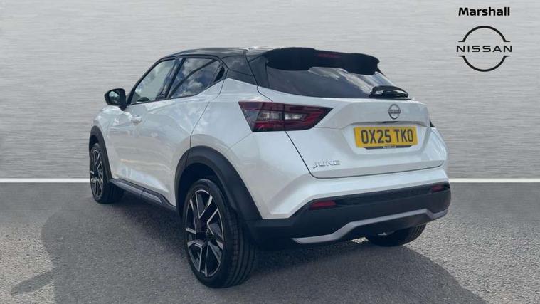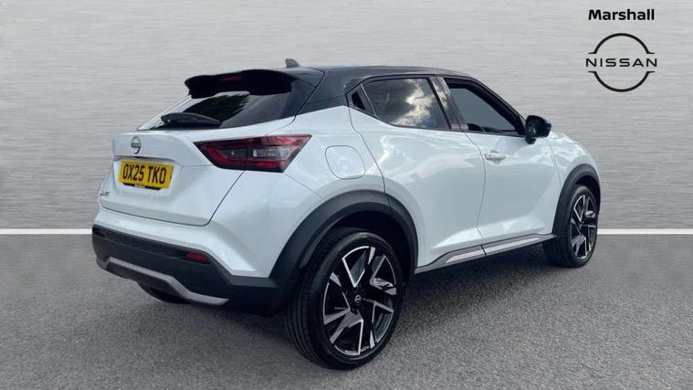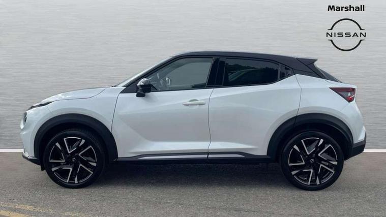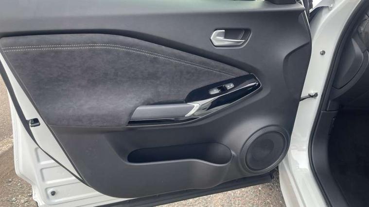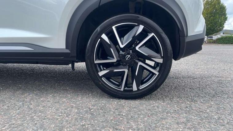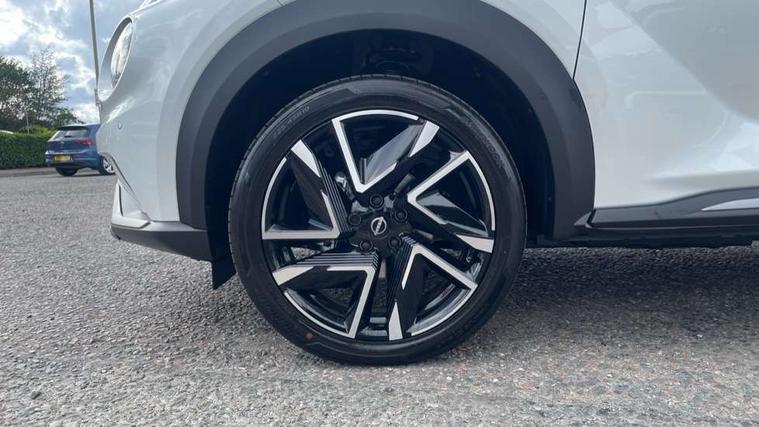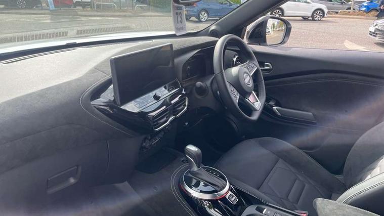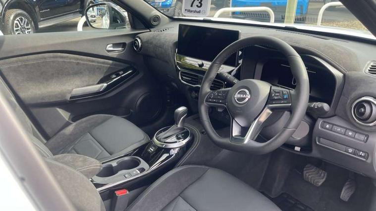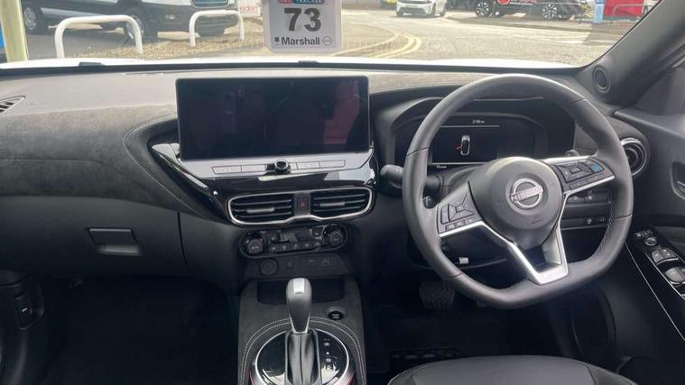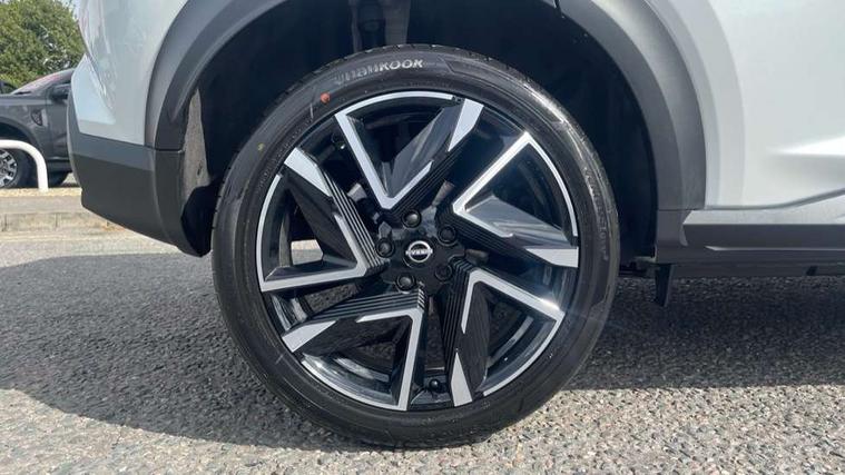 12.3" full colour TFT screen combimeter, Drive modes select (Eco, normal and sport), Emergency and breakdown call, Front parking sensor, Idle start/stop system, Intelligent driver alert system, Intelligent lane intervention, Lane departure warning system, Nissan connect 12.3" touch screen entertainment system, Nissan connect nav with TomTom traffic, Nissan connect services, Outside temperature sensor, Power Steering, Rear parking sensor, Stop/start button, Traffic sign recognition, Trip computer, Voice recognition, WiFi connectivity, Wireless Apple CarPlay and Google Android auto, Wireless Smartphone charger, 10 Bose speakers 8 speakers and 2 headrest speakers for driver/passenger seats, 2 X Rear console USB port, Bluetooth system, USB, Aux-in and 12V socket, Bose personal plus audio system, DAB Digital radio, Auto dimming frameless rear view mirror, Automatic hazard signal with emergency stop signal, Body colour door handles, Electrically adjustable door mirrors with integrated indicators, Follow me home headlights, Front and rear electric window with one touch driver window, High beam assist, LED 3rd brake light, LED daytime running lights, LED front fog lights, LED headlamps, LED rear fog lamp, LED rear lamps, One touch passenger window, Rear privacy glass, Rear side wing doors, Rear wiper, Roof spoiler, Shark fin roof antenna in solid Black, Solid black door mirrors, Solid black front bumper/rear bumper and side skirts inserts, Three blink turn signal, 3 height adjustable rear headrests, 3 seat bench in 2nd row, 60/40 split folding rear seat, Card holder on driver sunvisor, Door ambient lighting, Driver seat back pocket, Driver side rear coat hanger, Driver/passenger sunvisors and vanity mirrors, Front and rear cabin lights, Front armrest, Front door pockets with bottle holders, Front head restraints, Front/rear passenger grab handles, Gear console ambient circle lighting, Height adjustable driver's seat, Internal chrome door handles, Luggage board, Luggage space lighting, Monoform sporty seats, Multifunction steering wheel, Passenger seat back pocket, Rear door bottle holders, Single front passenger seat, Smooth synthetic leather steering wheel, Steering wheel mounted gearshift paddles, Synthetic leather kneepad, Synthetic leather shift knob, Telescopic steering wheel adjustment, Two cupholders in front centre console, Two rear isofix child seat anchorage points with top tether, Welcome light and console tray ambient lighting, Comfort pack - Juke, Heat pack with height adjustable passenger seats - Juke, Interior personalisation pack - Juke, ProPilot pack - Juke Auto, Satin grey exterior personalisation pack - Juke, ABS with EBD and brake assist, Active ride control, Active Trace Control, Driver and passenger airbags, Driver and passenger side airbags, Electric handbrake with auto hold function, Electronic Stability Programme (ESP), Front and rear curtain airbags, Height adjustable seatbelts, Hill start assist, Intelligent emergency braking with pedestrian and cyclist recognition, Rear door child safety locks, Seatbelt reminder for driver/front passenger and rear seats, Three 3 point rear seatbelts, Traction control, Tyre pressure monitoring system, VDC Dynamic Vehicle Control, Alarm, Immobiliser, Intelligent key and start push button with walk away lock and approach unlock functions, Remote central locking, 19" Alloy wheels with deep 3D effect, Tyre puncture repair kit,