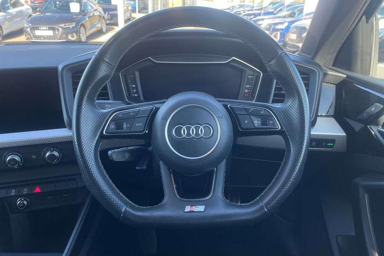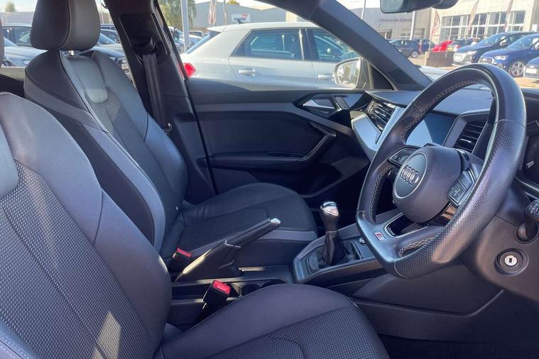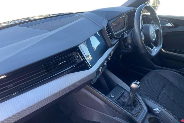 10.25" Digital instrument cluster display screen, Audi connect safety emergency and service including E-call, Audi smartphone interface, Automatic start/stop system, Bluetooth interface, Electromechanical power steering, Lane departure warning system, Service interval indicator, Speed limiter, Voice control system, Washer fluid level indicator, Dynamic suspension, 1 x SDXC card reader, 1 x USB type C and 1 USB type A charging points, 6 passive loudspeakers, DAB Digital radio, MMI radio plus with 8.8" colour MMI display screen and MMI touch, Auto dimming rear view mirror, Body coloured bumpers, Body coloured door mirrors, Electric front and rear windows, Front side air inlets with front spoiler lip and rear diffuser in matt black grained, Heat insulating glass windscreen and side windows, Heated rear windscreen, LED headlights with LED rear lights + dynamic rear indicators, Matt black radiator grille, Rain and light sensors, Rear fog lights, Rear wiper, 12V socket in centre console with two cup holders, 3 rear seats, 3 spoke leather multifunction plus steering wheel, Delta cloth upholstery, Driver and passenger seat with manual height adjust with forward and backwards adjustment, Front head restraints, Front/rear floor mats, Height and reach adjustable steering wheel, Illuminated glovebox, ISOFIX child seat mounting in front passenger and rear outer seats, Leather gear knob with aluminium trim, Leatherette handbrake grip, Luggage compartment light with front and rear reading lights, Rear head restraints, Split folding rear seats, Standard seats, Titanium grey cloth headlining, 3x3 point rear seatbelts, Brake assist function, Driver and front passenger airbag with front side and head airbags, Electronic Stability Control including ABS, EBD, ASR and EDL, Front and rear seatbelt reminder, Front passenger airbag deactivation switch, Hill hold assist, Seatbelt height adjustment for front seats, Seatbelt monitoring, Tyre pressure warning light, Warning triangle and first aid kit, Anti theft alarm, Anti theft wheel bolts and loose wheel warning, Audi pre-sense front with pedestrain and cyclist recognition, Immobiliser, Locking wheel bolts, Remote central locking with 2 remote folding keys, Black accent areas including air vents, door handle recesses and centre console in black, Black inlays polygon structure, 15" 5 arm design alloy wheels,
