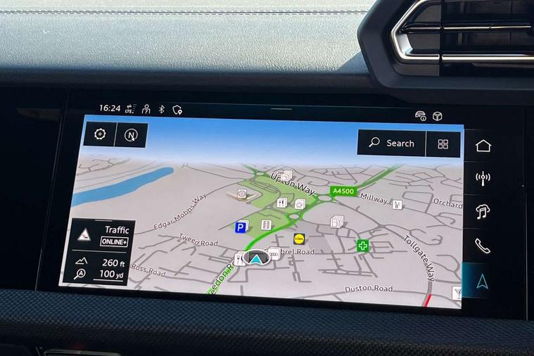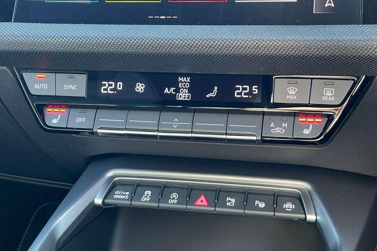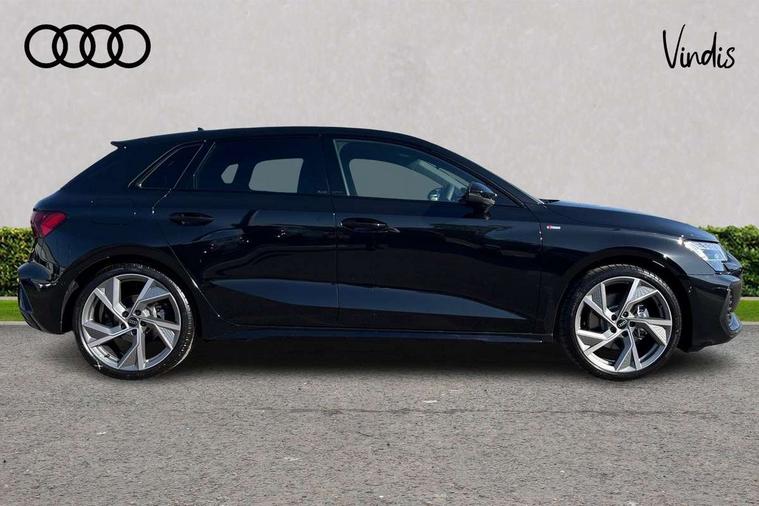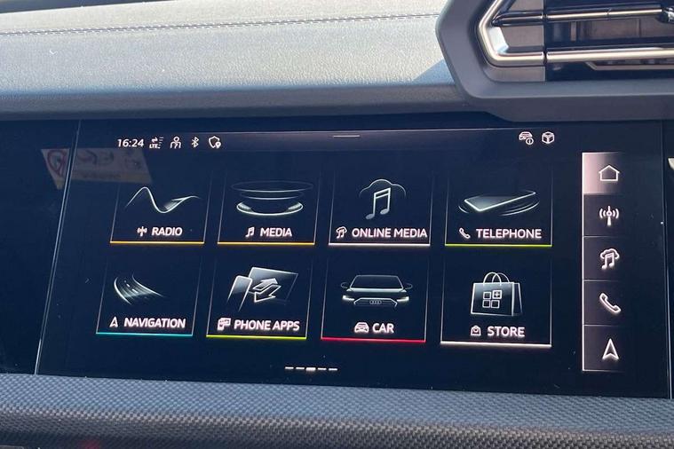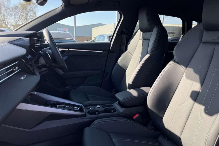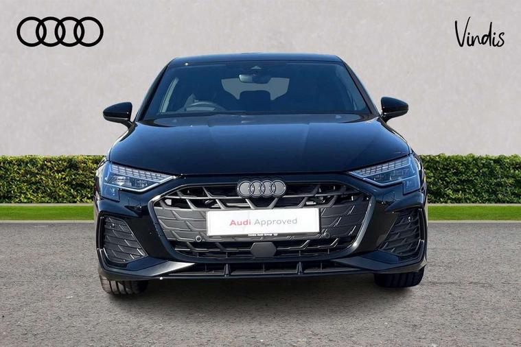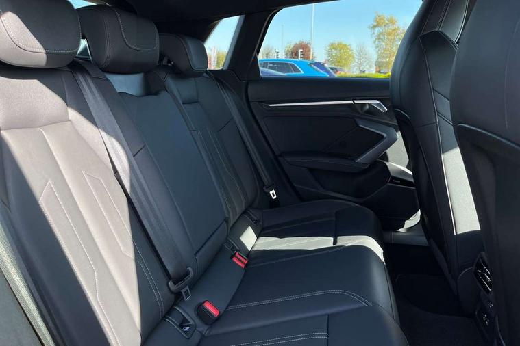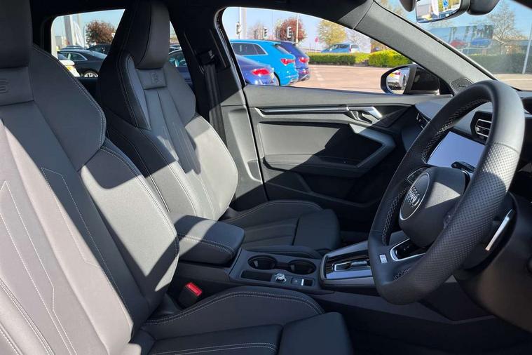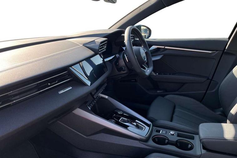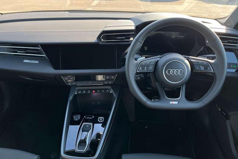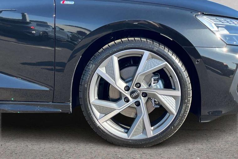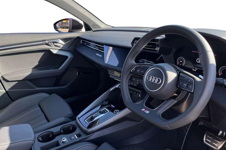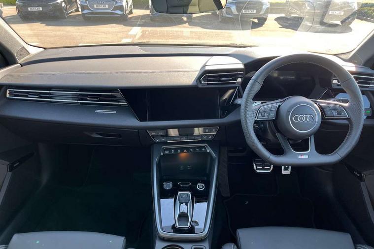 Adjustable speed limiter, Audi drive select, Audi smartphone interface with app store includes wireless Apple carplay, Android auto and Amazon alexa integration, Audi virtual cockpit plus - 12.3" full HD resolution dynamic digital instrument cluster, Automatic start/stop system with recuperation, Bluetooth interface, Camera based traffic sign recognition, Collision avoidance assistant, Cruise control, Distraction and Fatigue warning, e-Call (emergency call), Electromechanical power speed sensitive steering, Emergency assist, Lane departure warning system, MMI Navigation Plus with high resolution 10.1" colour touch screen display, Park Assist with parking system Plus, Service indicator, Tailgate, Trip computer, Voice control system with natural language interaction, Sports suspension, Audi Phonebox light with wireless charging, Audi sound system - 10 loudspeakers including centre loudspeaker and subwoofer, DAB Digital radio, USB ports with charging function in the rear, Acoustic glass windscreen, All weather light, Anthracite grey Audi rings (front and rear), Audi beam uses LEDs to project the Audi logo onto the ground as you exit your A3, Auto dimming frameless rear view mirror, Automatic dynamic range control, Black accents front and rear bumpers, Black accents in the area of the Audi single frame grille, Black accents window trims strips, Dipped beam, main beam, position light and turning light, Electrically adjustable/heated/folding/dimming door mirrors with kerb view includes integrated LED indications + kerb view function for passenger side, Exterior model badging, Front and rear side air inlets in grained matt black with dark liquid chrome frame, Front electric windows, Heat insulating glass windscreen, Illuminated door sills with aluminium inserts at the front with S logo, Intersection light, LED 3rd brake light, LED brake lights, LED daytime running x3, LED headlights with LED rear lights and dynamic rear indicators, LED rear number plate lights, LED reverse light, LED tail lights, Light and rain sensors, Manoeuvring light, Motorway light, Privacy glass - dark tinted rear window, rear door and side windows, Rear diffuser and grill in grained matt black with inlay in dark liquid chrome, Rear electric windows, Rear side wing doors, Rear wiper, S roof spoiler, Static Cornering lights, 12V socket and storage compartment in front centre console, 3 seat bench in 2nd row, 3 spoke flat bottomed leather multifunction sport steering wheel with gear shift paddles, 3-zone deluxe automatic air conditioning, 4 way electrically adjustable lumbar support for driver and front passenger, 40/20/40 split folding rear seat bench, Black cloth headlining, Black front and rear floor mats, Front and rear centre armrest in artificial leather with contrasting stitching on armrests and instrument panel, Front and rear headrests, Heated front seats, Height and reach adjustable steering wheel, Manual boot compartment lid, Manually adjustable front seats, Rear centre armrest with cupholder, S badging on the steering wheel, Seat side bolsters, Single front passenger seat, Stainless steel pedals and front footrest in black, Twin leather upholstery with front sports seats S embossed logo, Aluminium interior elements pack - A3, 3x3 point rear seat belts, Driver and front passenger airbag with passenger airbag deactivation, Electronic Stabilisation Control (ESC) including ABS, ASR and EDL, First aid kit with warning triangle and 2 safety vests, Front side airbags with head airbags and interaction airbag, Hill hold assist, Pre-sense front with pedestrian and cyclist detection, Seatbelt monitoring, Tyre pressure loss indicator, Anti theft alarm, Anti-theft wheel bolts, Electronically operated child locks, Immobiliser, Remote central locking with safelock, Black dashboard,