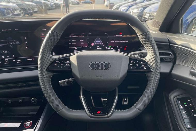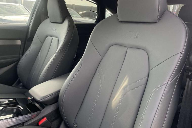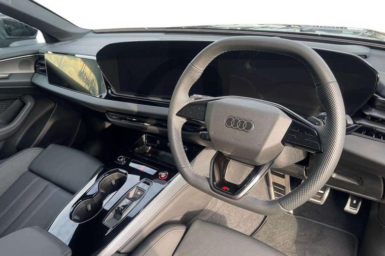 Adaptive cruise assist plus with steering intervention, Advanced driver attention and fatigue montior, Audi application store, Audi assistant, Audi connect emergency call and service, Audi drive select, Audi smartphone interface, Audi virtual cockpit plus with 11.9" OLED colour display, Automatic start/stop system with coasting functionality, Camera based traffic sign recognition, Garage door opener, Head up Display, Intersection assist, Lane change assistant with exit warning system, rear cross traffic alert and rear turn assist, Lane departure warning with emergency assist, MMI 10.9" front passenger touch display, MMI navigation plus with high resolution 14.5" OLED touchscreen colour display, Park assist plus, Parking system plus with 360 display, Progressive steering with servotronic, Swerve assist and turn assist, Top view camera, Traffic sign based speed limiter, Sports suspension with damper control lowered by 20mm, 2 USB-C ports in both the front and rear, Bang and Olufsen premium sound system with 3D sound, DAB digital radio reception, Smartphone compartment with wireless charging, Acoustic glass for front door windows, Aluminium window trims, Auto dimming rear view mirror, Body colour door mirrors, Clear glass, Digital OLED tail lights including communication light, Door mirrors - electrically adjustable, heated, folding and auto dimming on both sides, Front and rear electric windows, Front door sill trims with aluminium inlays, illuminated with 'S' logo, Headlight cleaning system, High beam assist, LED daytime running lights, LED third brake light, Manual sunshade for the rear door windows, Matrix LED headlights with eight light signatures selectable via the MMI or the myAudi app, Panoramic glass roof with switchable transparency, Privacy glass, Rear and side windows with heat insulating glass, Rear boot, Rear side wing doors, S Line badges on the front wings, S line bumpers, radiator grille and diffuser in phantom black and diffuser insert in matt anthracite, White rhombus logo projection light in exterior mirrors, Windscreen with acoustic glazing, 3 rear headrests, 3 seat rear bench, 3 spoke leather steering wheel with multi-function buttons with touch control, flattened on top and bottom, with S badging and contrast stitching, 3-zone automatic climate control, 4 way electric lumbar support for driver and front passenger, 40:20:40 split folding rear seat bench with centre armrest and cup holders, Comfort front centre armrest, Dynamic interaction light (coloured), Electric steering wheel adjustment, Electrically adjustable front seats, Front and rear floor mats, Front sport seats with integrated headrest and S embossed logo, Headlining in black cloth, Heated front and outer rear seats, Heated steering wheel, i-Size child seat mounting on the front passenger side and outer rear seats, i-Size and top tether on the outer rear seats, Increased charging capacity for USB ports 2X100 Watts in rear, 2X60 Watts in front, Luggage compartment lid, electrically opening and closing, Single front passenger seat, Stainless steel pedals and footrest, Steering wheel grips in perforated leather and shift paddles, Twin leather upholstery, Ambient lighting package plus - A5, 3x3 point rear seat belts, Acoustic vehicle alerting system, Convenience key with safelock, Driver airbag, Electric child safety locks, First aid kit with warning triangle and vests, Front emergency brake assist, Front passenger airbag, Front passenger airbag deactivation, Hill hold assist, Occupant detection in rear seat area, Proactive passenger protection system for front, sides and rear, Seat belt monitoring with rear seat occupant reminder, Side airbags in front and rear with head airbag system and front interaction airbag, Tyre pressure loss indicator, Anti theft alarm, Anti-theft wheel bolts, Keyless Go, Accents in the interior in vanadium look, Black dashboard with contrast stitching, Inlays in matt brushed aluminium with linear embossing, anthracite, Softwrap in leatherette with contrast stitching, Upper and lower interior elements in leatherette, 19" 5 twin V spoke design alloy wheels in graphite grey, Tyre repair kit,
