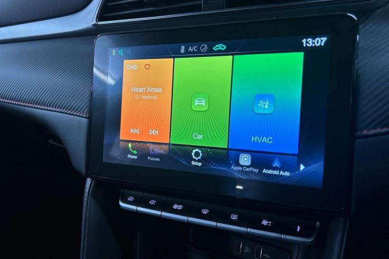 'Lights On' Reminder warning buzzer, 10.1" colour touchscreen, Android Auto, Apple CarPlay, Bluetooth connectivity, Cruise control with speed limiter, eCall emergency call system, PAS, Rear parking sensors, Trip computer, USB mobile phone charging function, 4 speaker audio system, DAB audio, Radio/MP3 player, USB/aux input socket, Auto headlights, Body colour bumpers, Body colour door handles, Body colour electric adjustable folding heated door mirrors, Chrome side window trim, Follow me home headlights, Front and rear aero wiper, Front and rear electric windows with driver's one-touch up/down, LED Bi-Function headlights, LED centre brake light, LED daytime running lights, Rear side wing doors, Rear spoiler, Rear wiper, Silver roof rails, 12V power sockets, 2nd row 60/40 split/fold, 3 rear headrests, 3 seat bench in 2nd row, 4 way manually adjustable passenger seat, 6-way manually adjustable driver's seat, Adjustable dual height boot floor, Air conditioning, Boot light, Driver's footrest, Front cupholders x 2, Front grab handles, Front headrests, Front reading lights, Front seat back map pockets, Glovebox, Houndstooth fabric upholstery, Illuminated switches and controls, Internal chrome door handles, ISOFIX restraints on outer rear seats x2, Leather steering wheel, Rake/reach adjustable steering wheel, Rear grab handle, Single front passenger seat, 3x3 point rear seatbelts, ABS/EBD, Anti rolling protection, Automatic unlocking of doors in case of impact, Dual front airbags, EBA, ESP, Front passenger airbag deactivation switch, Front seatbelts (3-point + pretensioner + load limiter), Front side airbags, Fuel cut off safety device, Hill launch assist, Rear door child safety locks, Rear passenger seatbelt alert, Seatbelt reminder for driver and front passenger, Side curtain airbags, Tyre pressure monitoring system, Alarm system and engine immobiliser, Automatic latching door, Remote central locking, Second remote key, Speed sensing door locks, Superlocking, 17" Typhoon diamond cut alloy wheels, Tyre repair kit,