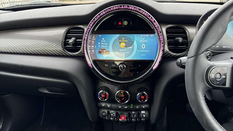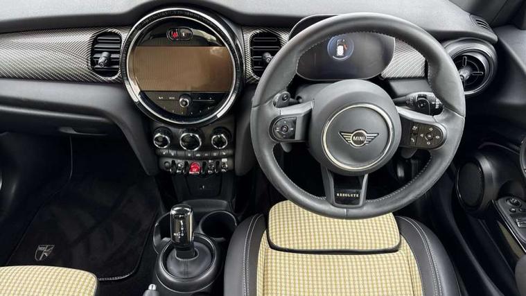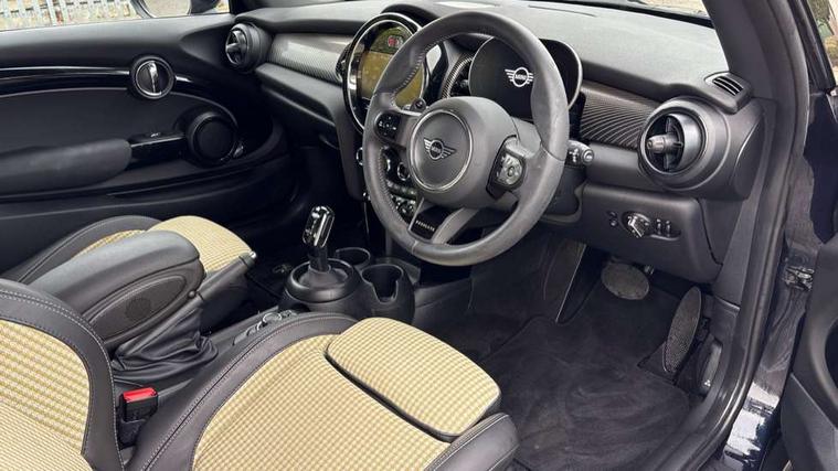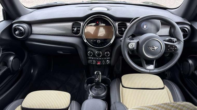 Apple CarPlay, Automatic start/stop function with brake energy recuperation, Compatible mobile phone bluetooth with audio streaming, Cruise control with brake assist, Electro-mechanical speed dependant steering assistance, Flexible car sharing preparation, Instrument cluster, MINI Driving Modes - centre toggle switch to control driving setting (sport, mid and green), Mini E-call, MINI TeleServices, On board computer, Rear park distance control, Service interval indicator, Double Vanos system, Fully variable valve control, Gear change indicator display, High precision injection, Performance Control, Steptronic sport transmission with double clutch and steering wheel paddles, 8.8" touchscreen with LED ring, FM tuner and DAB digital radio, 3rd brake light, Automatic headlight activation switch, Dynamic brake lights, Electric front windows, Heated rear window, Heated windscreen washer jets, LED headlight with closed ring and daytime driving lights, Metal door sill strips with Cooper S, Model logo Cooper S on right of tailgate, Rain sensor window wipers, Rear fog lights, Rear LED lights with union jack design, Rear window wiper, Side scuttle panel with integrated indicator, Special solid paint, Sun/heat protection glass, Waistline finisher in Piano black, White indicator lenses, 12V Accessory socket in centre console, 2 seat bench in 2nd row, 4 lashing eyes in luggage compartment, 60/40 split folding rear seat, Ambient lighting, Anthracite headlining, Chrome interior highlights, Cupholders, Front and rear head restraints, Front and rear isofix with front passenger airbag deactivation, Front floor mats in velour, Glove compartment, Height and length steering column adjustment, Interior lighting with 12 different colours across the dashboard, underneath door bezel with illuminated laser-engraved design on central display, Interior surface resolute, Leatherette gearshift lever and handbrake gaiters, LED reading lights, vanity mirror lights, front foot well light and spotlight on front seats, Mechanical seat adjustment - forward/back & backrest for front seats and driver seat height adjust, MINI yours badge on exterior pillar, Multifunction steering wheel, Passenger seat height adjuster, Resolute badge on steering wheel spoke, Single front passenger seat, Storage compartments in doors, Storage pocket on back of front seats, Sunvisors with vanity mirrors, Walknappa leather steering wheel with grey seam, Navigation pack without Apple Carplay - Mini Hatchback, 3 point seatbelts on all four seats, 6 Airbags - front, side, head and seat belt tensioners, Anti-lock braking system (ABS), DSC - Dynamic Stability Control, Front and rear disc brakes, Two tone horn, Tyre pressure monitoring system, Alarm system with tilt sensor, monitoring doors, bonnet interior and tailgate, Electronic vehicle immobiliser, Start/stop toggle with keyless go, Resolute interior trim, Tool kit,