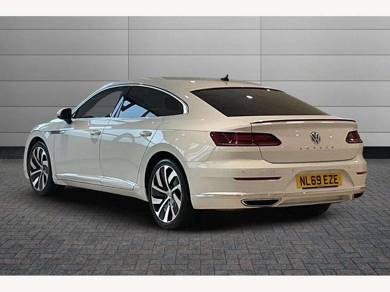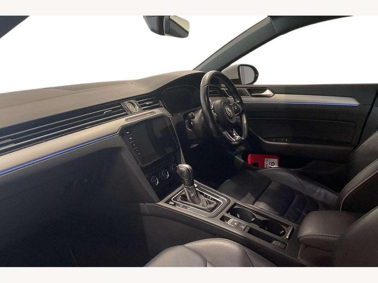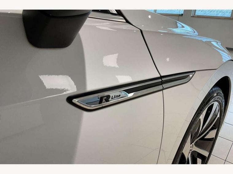 'Lights On' Reminder warning buzzer, 2D/3D map view, 8" touch screen, Active Info display 12.3" high resolution TFT dash display with customisable menu and information, Adaptive Cruise Control with pedestrian detection and speed limiter, Analogue clock in the dasboard, Bluetooth telephone and audio connection for compatible devices, Car-Net Security and Service, Discover pro navigation, Driver alert system with fatigue detection, Driver profile selection, Front Assist with radar sensor controlled distance monitoring system, Lane assist, Press and drive key, Progressive steering, Remote boot unlocking, Speedo and rev counter, electronic odometer, trip, service interval display and fuel gauge, Start/Stop function, Streaming and internet, Think blue trainer driver tips and journey analysis, Voice control system, Warning sound and light for doors and boot lid opening, Warning sound and light for front and rear seat belts if unfastened, We app connect, Battery regeneration during braking, Part galvanised body, CD/MP3/WMA and SD card reader, DAB Digital radio, MDI with USB/iPod connection cables, Premium USB cable in choice of either Apple or Android smartphone compatibility, SMS functionality - read, compose and send SMS messages using touch-screen display, Title and cover art display, USB interface 3.0 with type C, Advanced high beam control, Auto dimming interior rear view mirror, Automatic coming/leaving home lighting function, Automatic hazard lights activation under emergency braking, Automatic headlights with dusk sensor, Body colour door handles, Body coloured door mirrors with integrated indicators, Chrome side window surrounds, Chrome trim headlights extending into the radiator grille, Chrome trim on radiator grille louvres, Door sill protector, Dynamic cornering lights, Dynamic light assist, Electric adjust/heated/foldable with auto dimming on driver side, puddle lights on door mirror and reverse activated kerbview adjust on passenger side, Emergency release function in rear tailgate, Front and rear electric windows, Front fog lights, Gloss black spoiler, Headlight range control, Headlight washers, Heated rear window, Heated windscreen washer jets, High level 3rd brake light, LED headlights with separate daytime running lights, LED number plate light, LED tinted rear light clusters with dynamic indicators, Left and right chrome effect trapezoid dummy exhaust tailpipe surrounds, Left and right chrome trim on lower bumper, Left and right chrome trim on lower doors, R Line bading on front raddiator grille, R Line Design front bumper, R Line lettering on side fender vents, R Line logo on door sill protectors, Rain sensor, Rear tinted glass on rear side windows with 87% and rear windows with 77%, Side skirts with chrome inserts, Windscreen wipers/ intermittent wipe + 4 position delay, 12V socket in centre console storage area, 12V socket on rear of front centre armrest, 2 bag hooks in luggage compartment, 2 reading lights front and rear with interior delay and dimming function, 3 spoke leather multifunction steering wheel including paddle shift with Aluminium inserts and R-Line logo, 3 Zone electronic climate control with automatic air recirculation, 4 load lashing points in luggage compartment, 60/40 split folding rear seat with armrest, Aluminium finish interior door handles, Aluminium trim on upper and lower air vents extending across cockpit, Front + rear carpet mats, Front and rear interior lighting with delay and dimming function, Front centre armrest with storage compartment, longitudinal and height adjustable and two rear air vents, Front cupholders x 2, Front footwell ambient lighting, Front seat and rear pockets, Front seats with R-line logo on seat backrest, Gearshift paddles, Glovebox, Heated front seats, Height adjustable 3 rear head restraints, Height/reach adjust steering wheel, Illuminated vanity mirrors, Isofix child seat preparation easy fit for two outer rear seats, Jack and tool kit, Luggage compartment lighting, Nappa leather upholstery, Rear armrest with 2 cupholders, Rear load through provision with 2 cup holders in armrest when folded down, Removable luggage compartment cover, Stainless steel footrest and pedals, Storage compartment in drivers and front passengers door, Storage compartment in rear doors, Storage compartment with soft touch opening cover in centre console, Storage compartments in luggage area left and right, Titan headlining, USB charging point, 3 rear three-point seat belts with tensioners on outer seats, ABS, Active bonnet, City Emergency Braking in active traffic speeds up to 19mph, Drivers and front passengers airbags with passengers deactivation switch, Drivers and front passengers safety optimised head restraints, Drivers knee airbag, Electronic parking brake with auto hold, Electronic stability control (ESC) includes ASR, EDL, EDTC and trailer stabilisation function, Front and rear curtain airbags, Front seat side impact airbags, Front ventilated disc brakes and rear disc brakes, Height adjustable front 3 point seatbelts + pretensioners, Hill start assist, Outer rear seat side impact airbags, Pedestrian monitor, Proactive passenger protection system, Rigid safety cell with front and rear crumple zones, Two tone horn, Tyre pressure loss indicator, Warning triangle, Alarm with interior protection, Electronic engine immobiliser, Remote central locking with 2 remote folding keys, Piano black centre console, Silver Rise decorative inserts in dash and door panels, Full size alloy spare wheel,