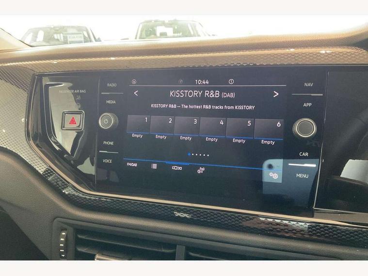 Advanced driver attention and drowsiness monitor, Bluetooth mobile phone interface, Dynamic road sign display, Emergency call service, Mobile phone preparation with inductive charging function, Multifunction front facing camera for distance control, Power assisted speed sensitive steering, Predictive adaptive cruise control without follow-to-stop and speed limiter, Preparation for navigation system with media and internet package, Preparation for We connect and We connect plus, Rear view camera, Speedo and rev counter, electronic odometer, trip, service interval display and exterior temperature gauge, Standard rear axle, Travel Assist - Lane keeping system and traffic jam assist, Travel assist including emergency assist, Trip computer, Warning signal and warning light for front and rear seatbelts not fastened, Washer fluid level indicator, Wireless app connect, Front wheel drive, Rear shock absorpion, Start-stop system with battery regeneration (recuperation - energy recovery during braking), DAB Digital radio, Diversity antenna for FM reception, Automatic dimming interior rear view mirror, Automatic headlight control with LED separate daytime running lights with coming/leaving home function, Body colour bumpers with chrome inserts, Body colour door handles, Body colour door mirrors, Electric front windows, Engine badge deletion, Headlight range adjustment, Heat insulating and laminated safety glass windshield, LED Headlights, LED rear combination lamps, Power folding adjustable/heated exterior mirrors and front passenger exterior mirror lowering function, Rain sensor, Rear electric windows, Rear fog light, Rear side wing doors, Rear tinted glass from B-pillar backwards approx 65% tinted, Rear windscreen washer and wiper with interval delay, Third brake light, 12V power socket in centre console, 2 front and 2 rear reading lights with switch off delay and dimmer, 2 USB-C ports in the front, 2 USB-C charging sockets on the center console in the rear, 3 rear head restraints, 60/40 split folding rear seat and rear seat bench not split, Ceramique roof lining, Chrome plated radiator grille inserts, air vent surrounds and light switch surrounds, Door and side trim panel, Driver and front passenger seat height adjustment, Driver/passenger sunvisors with illuminated vanity mirrors, Front centre armrest, Front seat backrest storage pockets, Front standard seats, Handbrake lever handle in leather, Hartley/Thomas cloth upholstery, Headliner in recycled material, Isofix child seat preparation easy-fit (for two outer rear seats, and front passenger seat) compatible with I-size, Leather trimmed gear knob, Luggage compartment cover, Luggage compartment lighting, Removable luggage compartment floor, Single front passenger seat, Standard climatic zones, Standard pedal cluster, Three spoke leather wrapped multifunction steering wheel with shifting paddles, Light and vision pack - Polo, 3 point height adj front seatbelts + pretensioners, 3 point seat belt for centre rear seat, 3 point seatbelts, outer rear with ECE lable, ABS, Driver and front passenger airbag with front passenger airbag deactivation, Drivers and front passengers safety optimised head restraints, ESC (Electronic stability control) + EDL (Electronic Differntial lock) and ASR (Traction control), Extended and predictive pedestrian/ cyclist protection, Front assist with autonomous emergency braking (for Adaptive Cruise Control ACC up to 130 mph), Front curtain and side airbags with center airbag, Front disc brakes, Hill hold control, Manual child lock in rear doors, Rear drum brakes, Single tone horn, Tyre pressure loss indicator, Alarm with interior protection, Anti-theft alarm system with interior monitoring, backup horn, and towing protection, Anti-theft wheel bolts, Electronic engine immobiliser, Lava stone black gloss/matt decorative inserts in dash and front door panels, 16" Torsby alloy wheels, Low rolling resistance tyres,
