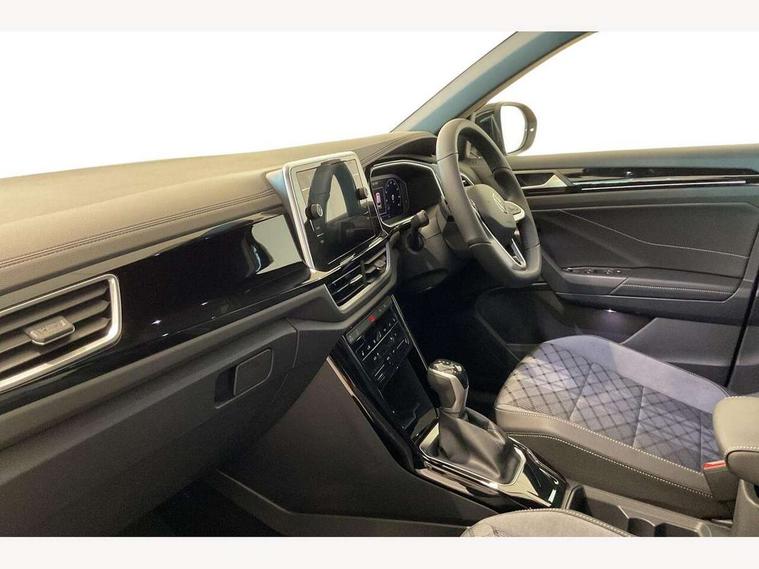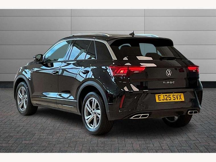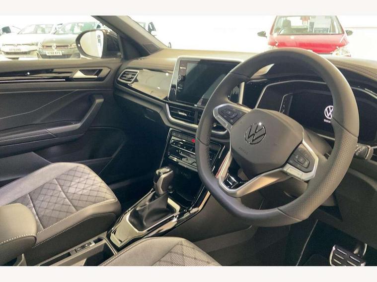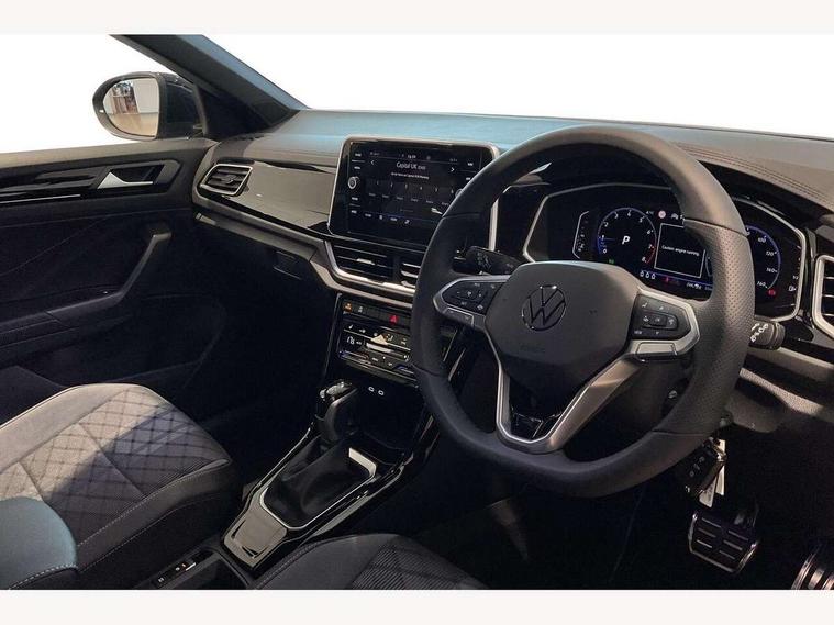 10.25" Digital cockpit pro, Advanced driver attention and drowsiness monitor, Emergency call service, Lane keeping system Lane Assist, Mobile phone interface, Modified key software - reduce switch off time for key status change to Long no motion, Online services, Park assist including front and rear parking sensors, Service interval indicator, Tailgate/trunk lid release from outside, Think blue trainer driver tips and journey analysis, Warning sound and light for front seatbelts unfastened, Wireless app connect, Battery regeneration during braking, Start/stop function with battery regeneration, DAB Digital radio, Diversity antenna for FM reception, Front and rear 6 speakers, Music playback - MP3, WMA and AAC files, Premium USB cable in choice of either Apple or Android smartphone compatibility, SD card slot, Simultaneous pairing of 2 compatible mobile devices, Title and cover art display, We Connect and We Connect Plus functionality, Auto dimming interior rear view mirror, Automatic hazard lights activation under emergency braking, Automatic headlight control with LED separate daytime running lights with coming/leaving home function, Body coloured exterior mirror housings and door handles, Electrically adjustable and heated door mirrors, Extended roof spoiler, Exterior mirrors aspherical on driver side, convex on front passenger side, External USB type C socket and charging sockets, Front windscreen wiper with intermittent wipe and 4 position delay, Heated rear window, LED 3rd brake light, LED rear combination lamps, LED rear number plate lights, Power windows with comfort operation and circuit breaker, Privacy glass for rear side windows and rear window, R-Line design body coloured bumpers, Rain sensor, Rear exhaust tailpipe, Rear fog light on one side and reversing lights on both sides, Rear side wing doors, Rear wash/wipe with intermittent wipe setting, Remote electrically foldable door mirrors, puddle lights and reverse activated passenger's door mirror, 12V power socket in centre console, 3 rear head restraints, 3 seat bench in 2nd row, 4 load lashing points in luggage compartment, Air care climatronic air conditoning system with active combination filter and 2-zone temperature control, Black roof lining, Chrome plated decorative trims, Chrome plated radiator grille inserts, air vent surrounds and light switch surrounds, Door and side trim panel with leatherette insert, Front + rear carpet mats, Front centre armrest, Front cupholders x 2, Front footwell illumination, Front reading light, Front scuff plates with R Line logo, Front seat back storage pockets, Glove compartment door with light, Instrument lighting, white adjustable panel illumination, Interior ambient lighting and surround lighting, Interior light delay, Isofix child seat preparation, Leather gearshift handle, Load-through provision with cup holder when folded down ('Unsplit rear seat bench, split folding backrest, with centre armrest), Luggage compartment lighting, Single front passenger seat, Stainless steel pedals, Storage compartment in left and right luggage area, Storage compartment in rear doors, Storage compartments in driver and front passenger doors, Sunvisors with illuminated vanity mirrors, Variable boot floor, height adjustable and removable, Driver assistance pack without proactive passenger protection - T-Roc, 3 point height adj front seatbelts + pretensioners, 3 point seatbelts in outer rear with ECE label, ABS, Child locks on rear doors, City emergency braking and pedestrian monitoring, Driver and front passenger airbag with front passenger airbag deactivation, Driver and front passenger safety-optimised head restraints, Drivers seatbelt reminder, Electronic parking brake, Electronic Stability Control (ESC) inc EDL (Electronic Differential Lock) and ASR (Traction Control), Front and rear passengers curtain airbag system including front side airbags, Hill start assist, Predictive pedestrian protection, Rear disc brakes, Two tone horn, Tyre pressure loss indicator, Volkswagen roadside assistance, Piano black decorative inserts in dashboard and front door trim panels, Trims for alloy wheels,