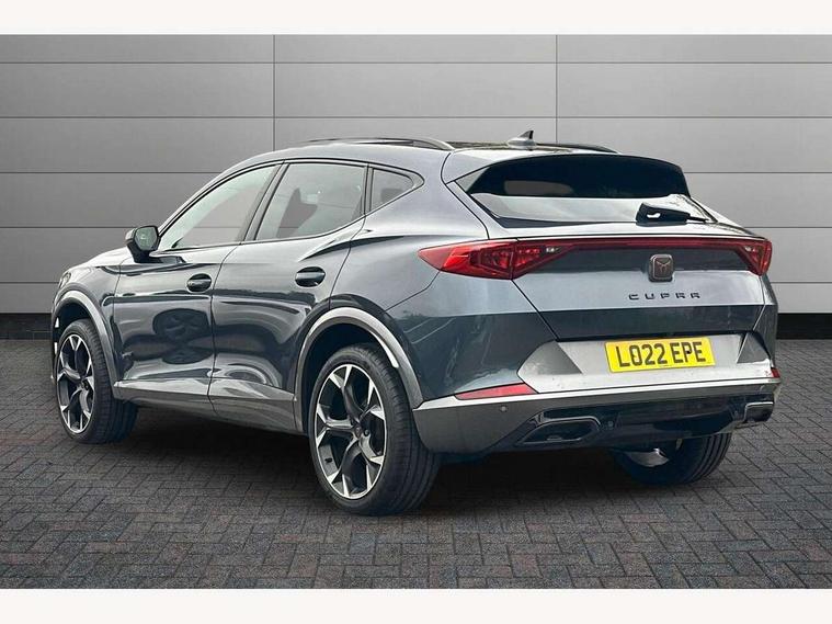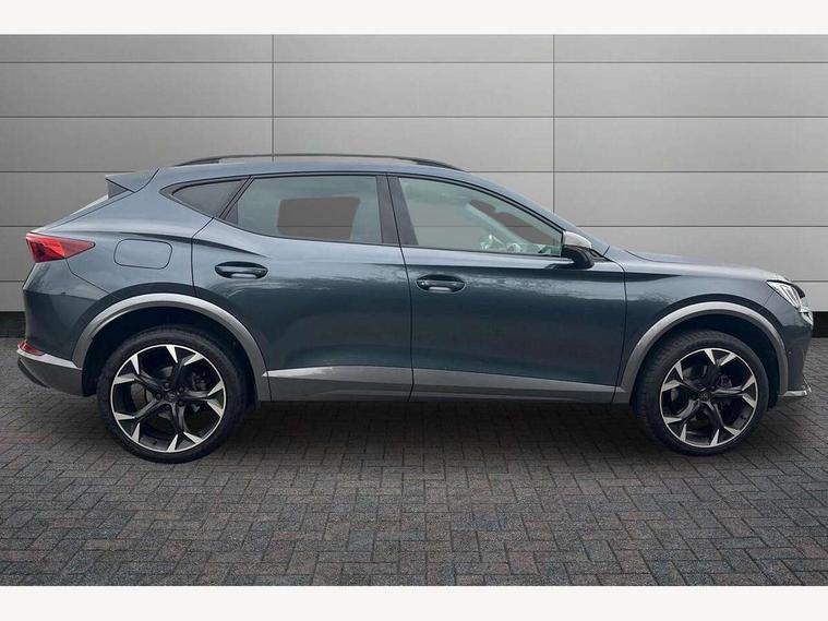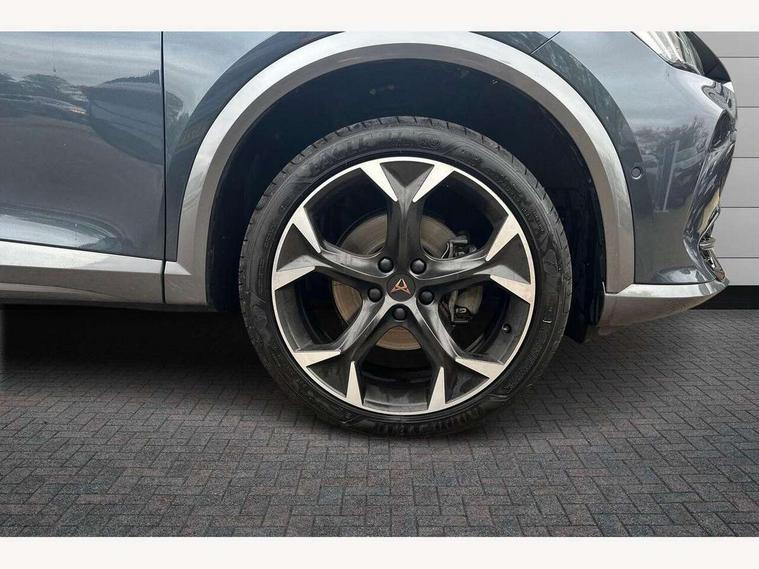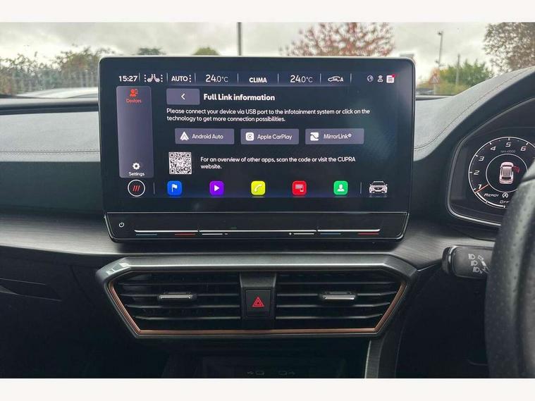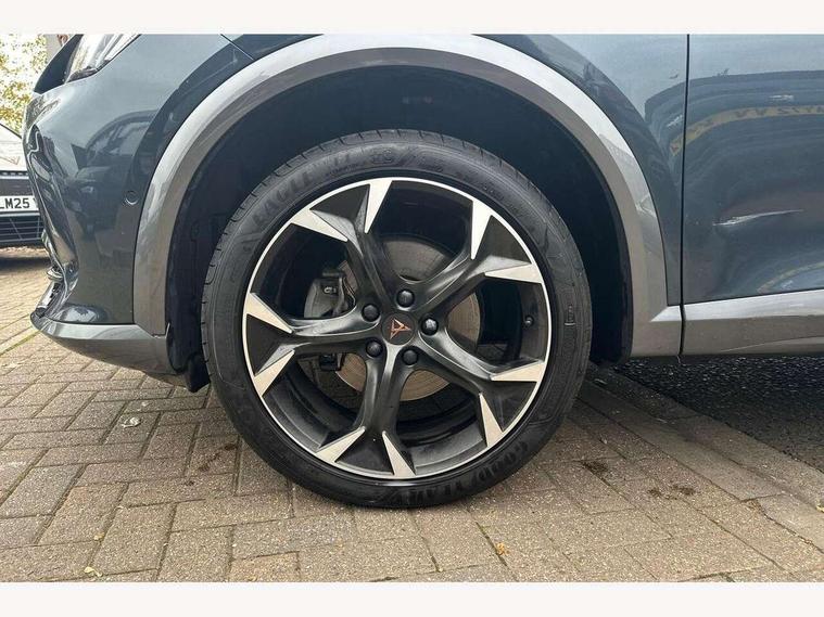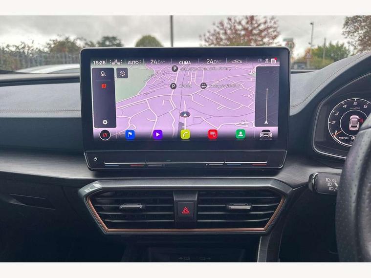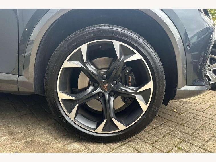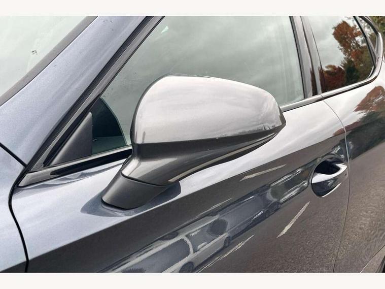 Digital cockpit and configurable dashboard, Driver alert system, Driving profile selection, E-call, Forward collision warning with automatic braking, Lane assist, Navigation system with 12'' Touchscreen Display, Park assist (inc front/rear parking sensors), PAS, Predictive adaptive cruise control with speed limiter, Rear view camera, RPM, trip computer, outside temp gauge, instrument light brightness, low fuel warning light, lights on reminder, gearshift indicator, Service interval indicator, Start/stop system with regenerative braking, Voice control system, Wireless apple carplay, Wireless phone charger, Electronic locking differential and dynamic traction support, Standard suspension, 2 front and 2 rear USB type C sockets, Auxiliary input socket, DAB radio, Auto dimming rear view mirror, Body colour door handles, Body coloured bumpers, Dark grey wing mirror, Daytime running light with automatic headlight control and coming home feature, Dynamic headlight range control, Electric front/rear windows, Electrically adjustable heated and folding door mirrors with memory function, Front fog lamps with cornering function, Gloss black roof rails and window surrounds, LED Headlights, LED Taillights with dynamic indicator, Rain sensing wipers, Rear diffuser with black simulated exhaust pipes, Rear side wing doors, Rear wash/wipe, Third brake light, Tinted rear windows, Welcome lights, 12v power supply in centre console, 12V socket, 12v socket in loadspace, 2 front and 2 rear reading lights, 230V socket, 3 seat bench in 2nd row, 60/40 split rear bench seat with armrest and mechanical seat release, Dust/pollen filter, Front and rear head restraints, Front centre armrest, Height/reach adjust steering wheel, Illuminated interior front door sills, Illuminated sunvisor with mirror, Isofix, Leather multi function heated steering wheel with gear shift paddles, Luggage tie-down hooks, Single front passenger seat, Three zone climate control with control panel in rear, Variable luggage/load compartment floor, Wraparound lighting, Genuine Nappa leather Pack - Cupra, 3 point seatbelts on all rear seats, ABS, Brake control system - ESC and brake booster, Child proof door locks, Driver and front passenger airbags with front passenger airbag de-activation, Electronic parking brake, Front and rear disc brakes, Front side curtain airbags, Hill hold control, Seat belt reminder for front and rear seats, Tyre pressure monitoring system, Anti theft alarm system, Keyless entry and start system (KESSY), Locking wheel bolts, Copper and aluminium interior detailing, 19" 'Exclusive' machined sport matte black and silver alloy wheels,