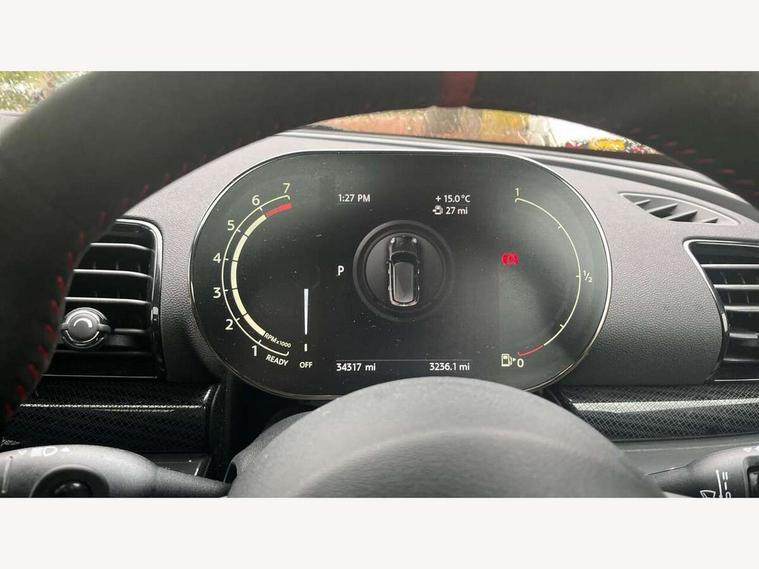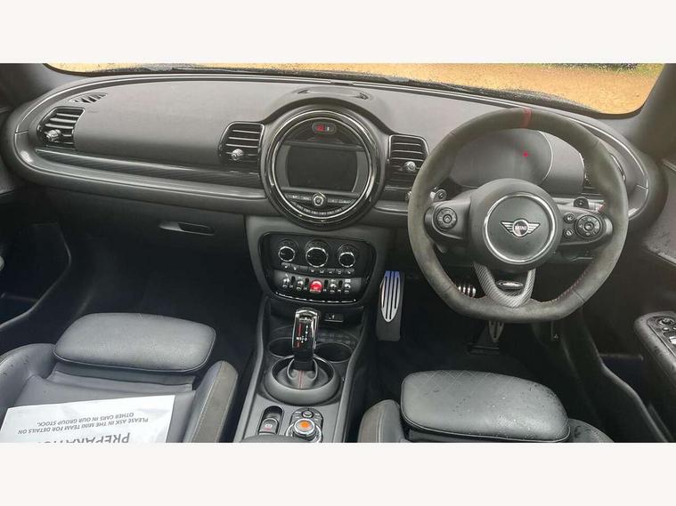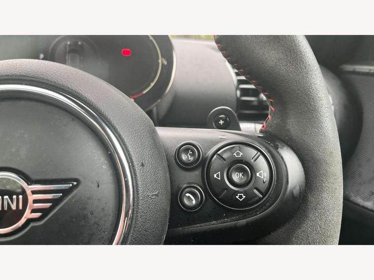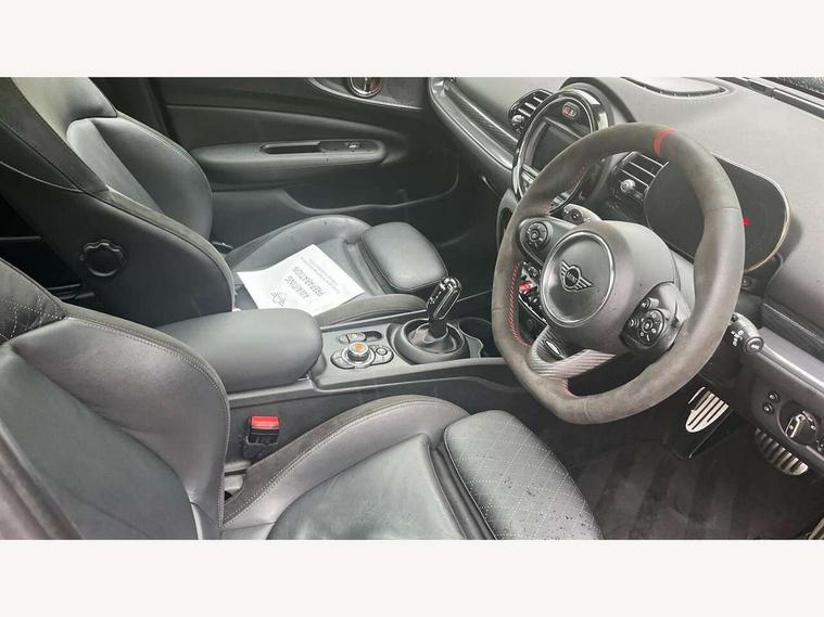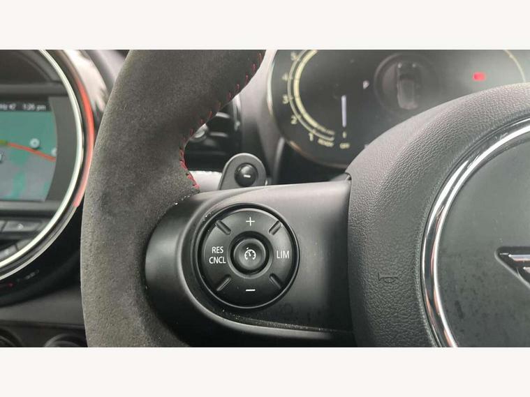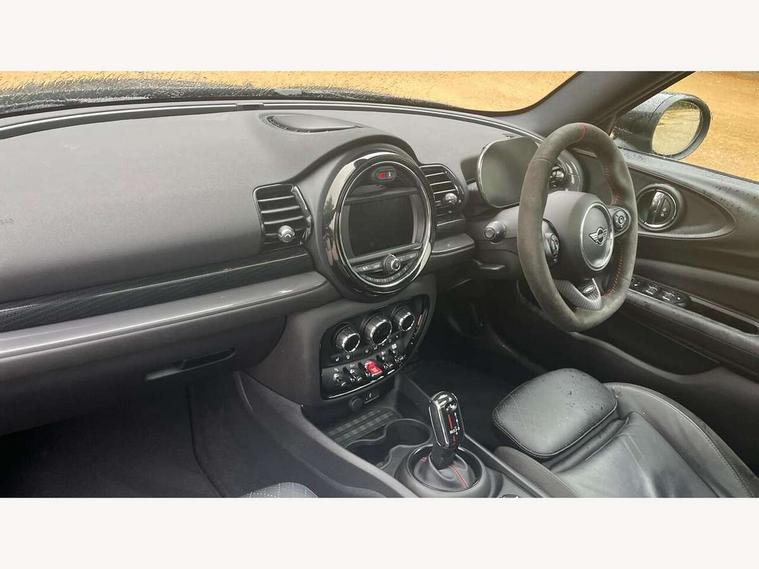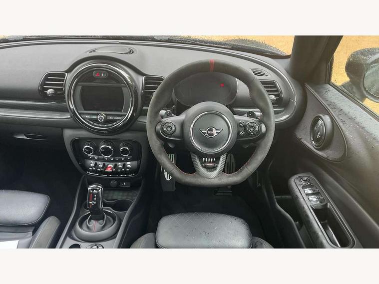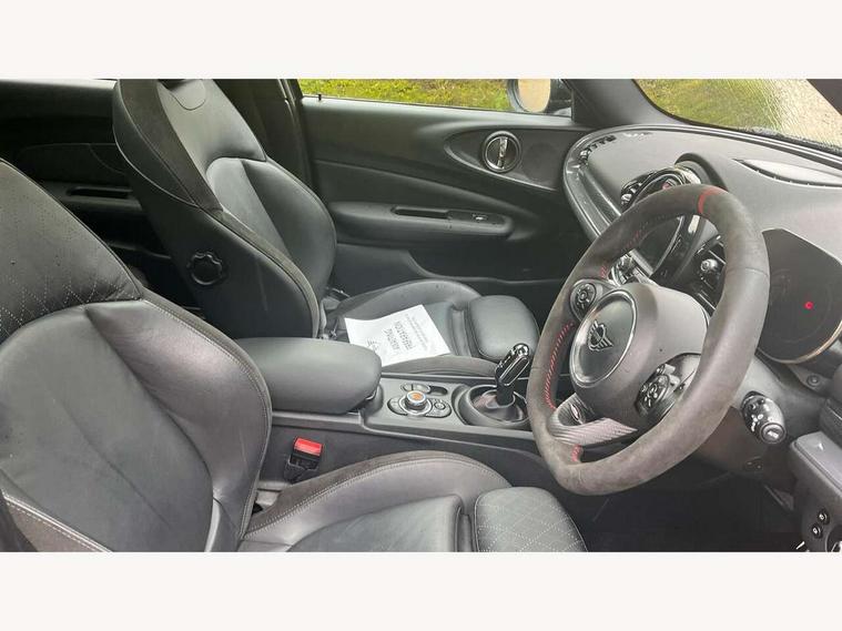 Active Guard incl speed limiting and lane departure functions with auto steering, and front collision warning with brake intervention, Automatic start/stop function with brake energy recuperation, Compatible mobile phone bluetooth with audio streaming, Digital cockpit, Electro-mechanical speed dependant steering assistance, Instrument cluster, Mini E-call, MINI TeleServices, On board computer, Rear parking distance control, Double Vanos system, Fully variable valve control, High precision injection, Performance Control, Steptronic sport transmission with double clutch and steering wheel paddles, FM tuner and DAB digital radio, Bonnet scoop, Chrome fuel filler cap, Dynamic brake lights, Electric windows, Heated rear window, Heated windscreen washer jets, John Cooper Works - aerodynamic kit (front and rear apron, spoiler), front and rear sport bumpers and part-painted side sills with door sill finishers, John Cooper Works rear spoiler, LED headlights with closed ring as daytime driving lights, LED rear light with union jack design, Metal door sill strips with Cooper S imprint, Model logo, Model logo on rear doors, Radiator grille, Rain sensor with auto headlights, Rear fog lights, Rear window wiper, Side scuttle panel with integrated indicator, Split rear doors, Sun/heat protection glass, Twin exhaust tailpipe, White indicator lenses, 12V Accessory socket in centre console, 360L luggage compartment capacity, 4 lashing eyes in luggage compartment, 60/40 split folding rear seat, Anthracite headlining with grab handles and clothes hooks, Chrome interior highlights, Cupholders, English handbook, Glove compartment, Height and length steering column adjustment, Interior lighting with 12 basic colours selectable via toggle switch in roof, Isofix rear child seat preparation, John Cooper Works perforated leather steering wheel with contrast stitching in chilli red and John Cooper Works logo, John Cooper Works sports seat with integrated headrest, adjustable thigh support and John Cooper Works logo, Leather gearshift lever and handbrake gaiters, LED reading lights, vanity mirror lights, front foot well light and spotlight on front seats, Manual air conditioning, Multifunction steering wheel, Storage compartments in doors, Sunvisors with vanity mirrors, Toolkit, Excitement pack - Clubman, Navigation pack - Clubman, 2 tone horn, 3 point seatbelts on all seats, 6 Airbags - front, side, head and seat belt tensioners, Anti-lock braking system (ABS), DSC - Dynamic Stability Control, Electronic handbrake, Front and rear disc brakes, Tyre pressure monitoring system, Alarm system with tilt sensor, monitoring doors, bonnet interior and tailgate, Auto drive away locking, Deadlocking function, Electronic vehicle immobiliser, Locking wheel bolts, Start/stop toggle with keyless go,
