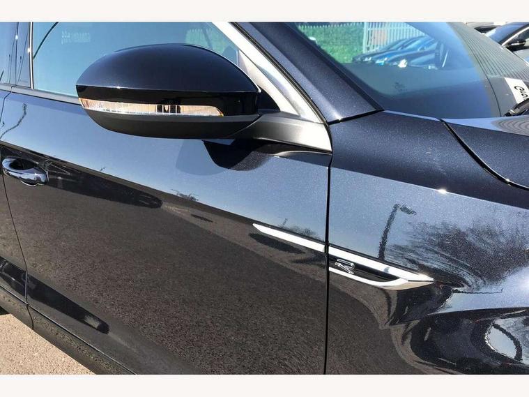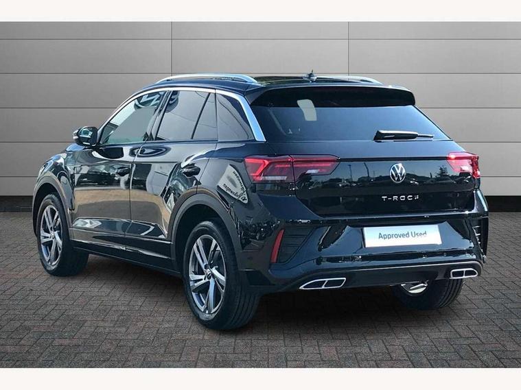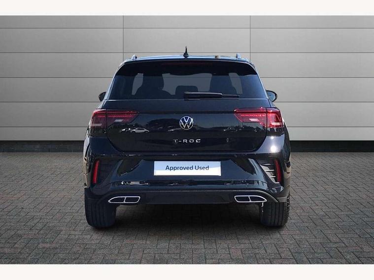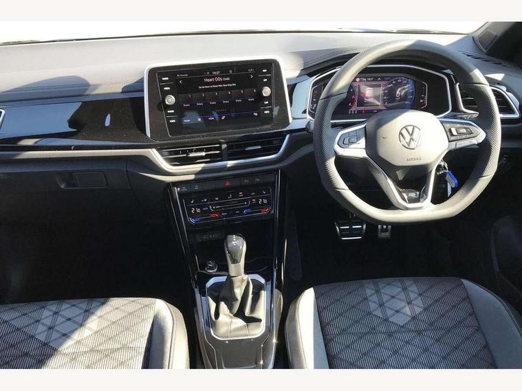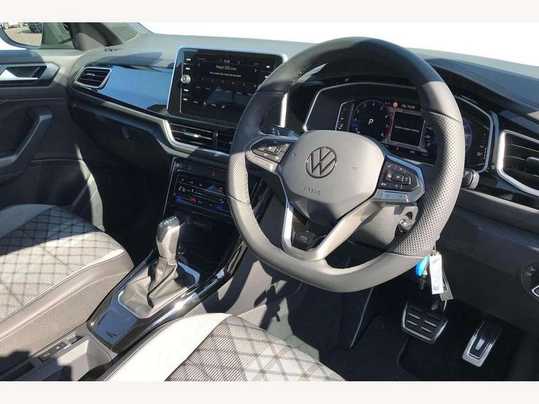 10.25" Digital cockpit pro, Advanced driver attention and drowsiness monitor, Emergency call service, Lane keeping system Lane Assist, Mobile phone interface, Modified key software - reduce switch off time for key status change to Long no motion, Online services, Park assist including front and rear parking sensors, Service interval indicator, Tailgate/trunk lid release from outside, Think blue trainer driver tips and journey analysis, Warning sound and light for front seatbelts unfastened, Wireless app connect, Battery regeneration during braking, Start/stop function with battery regeneration, DAB Digital radio, Diversity antenna for FM reception, Front and rear 6 speakers, Music playback - MP3, WMA and AAC files, Premium USB cable in choice of either Apple or Android smartphone compatibility, SD card slot, Simultaneous pairing of 2 compatible mobile devices, Title and cover art display, We Connect and We Connect Plus functionality, Auto dimming interior rear view mirror, Automatic hazard lights activation under emergency braking, Automatic headlight control with LED separate daytime running lights with coming/leaving home function, Body coloured exterior mirror housings and door handles, Electrically adjustable and heated door mirrors, Extended roof spoiler, Exterior mirrors aspherical on driver side, convex on front passenger side, External USB type C socket and charging sockets, Front windscreen wiper with intermittent wipe and 4 position delay, Heated rear window, LED 3rd brake light, LED rear combination lamps, LED rear number plate lights, Power windows with comfort operation and circuit breaker, Privacy glass for rear side windows and rear window, R-Line design body coloured bumpers, Rain sensor, Rear exhaust tailpipe, Rear fog light on one side and reversing lights on both sides, Rear side wing doors, Rear wash/wipe with intermittent wipe setting, Remote electrically foldable door mirrors, puddle lights and reverse activated passenger's door mirror, 12V power socket in centre console, 3 rear head restraints, 3 seat bench in 2nd row, 4 load lashing points in luggage compartment, Air care climatronic air conditoning system with active combination filter and 2-zone temperature control, Black roof lining, Chrome plated decorative trims, Chrome plated radiator grille inserts, air vent surrounds and light switch surrounds, Door and side trim panel with leatherette insert, Front + rear carpet mats, Front centre armrest, Front cupholders x 2, Front footwell illumination, Front reading light, Front scuff plates with R Line logo, Front seat back storage pockets, Glove compartment door with light, Instrument lighting, white adjustable panel illumination, Interior ambient lighting and surround lighting, Interior light delay, Isofix child seat preparation, Leather gearshift handle, Load-through provision with cup holder when folded down ('Unsplit rear seat bench, split folding backrest, with centre armrest), Luggage compartment lighting, Single front passenger seat, Stainless steel pedals, Storage compartment in left and right luggage area, Storage compartment in rear doors, Storage compartments in driver and front passenger doors, Sunvisors with illuminated vanity mirrors, Variable boot floor, height adjustable and removable, Driver assistance pack without proactive passenger protection - T-Roc, 3 point height adj front seatbelts + pretensioners, 3 point seatbelts in outer rear with ECE label, ABS, Child locks on rear doors, City emergency braking and pedestrian monitoring, Driver and front passenger airbag with front passenger airbag deactivation, Driver and front passenger safety-optimised head restraints, Drivers seatbelt reminder, Electronic parking brake, Electronic Stability Control (ESC) inc EDL (Electronic Differential Lock) and ASR (Traction Control), Front and rear passengers curtain airbag system including front side airbags, Hill start assist, Predictive pedestrian protection, Rear disc brakes, Two tone horn, Tyre pressure loss indicator, Volkswagen roadside assistance, Piano black decorative inserts in dashboard and front door trim panels, Trims for alloy wheels,