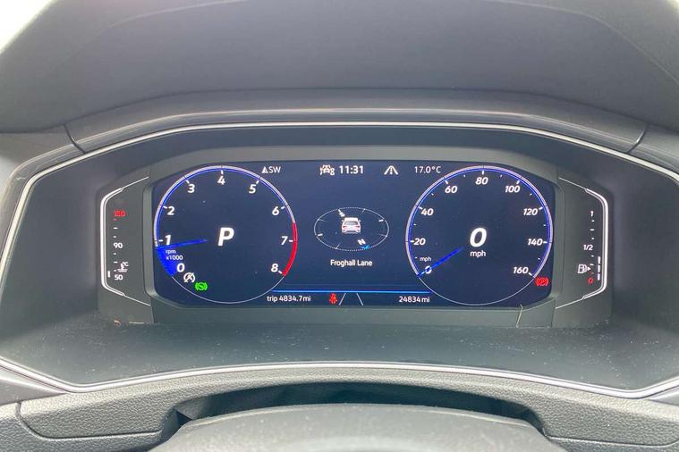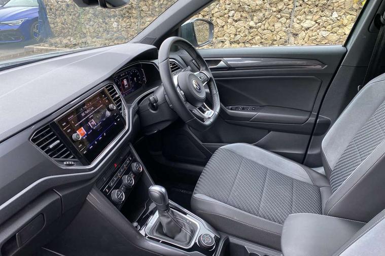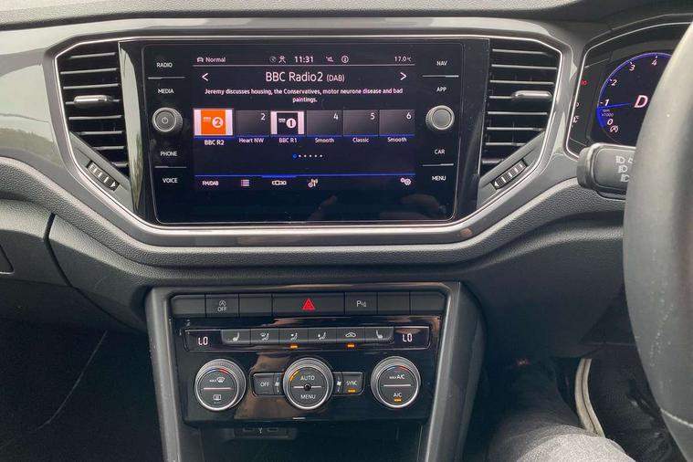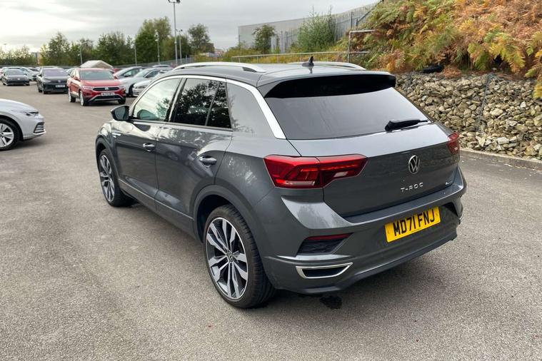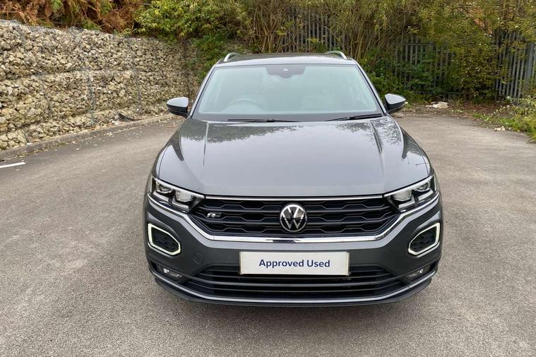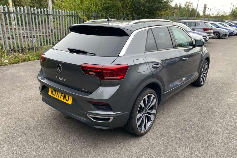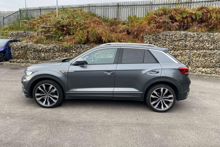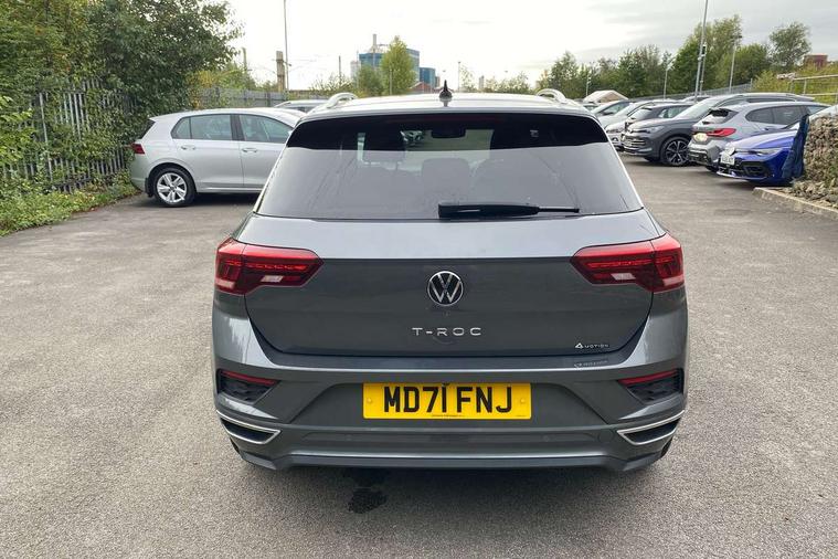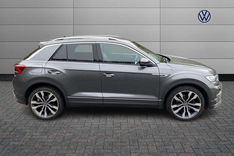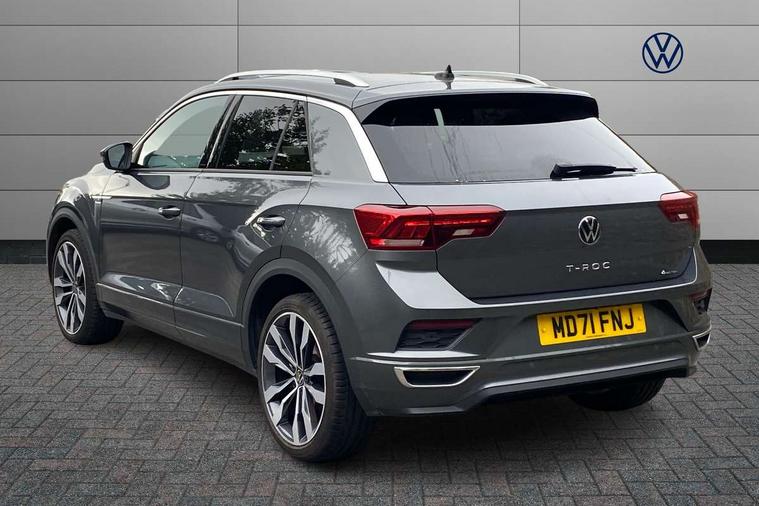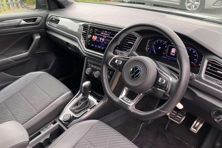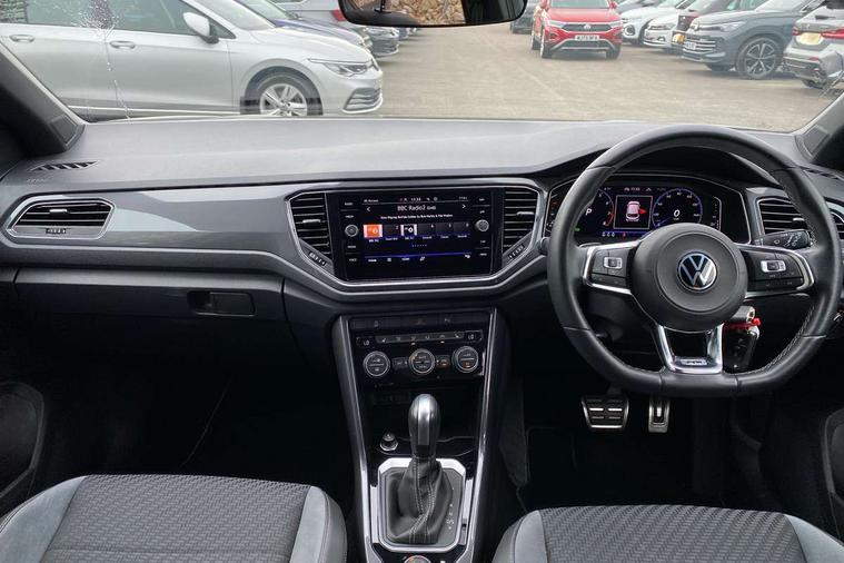'Lights On' Reminder warning buzzer, Adaptive cruise control, Bluetooth telephone and audio connection for compatible devices, Car information display, Digital Cockpit Pro - Active info display, Driver alert system with audible and visual fatigue detection system, Driver tips and journey analysis, Emergency call service, Lane assist with warning text instrument cluster, Modified key software - reduce switch off time for key status change to Long no motion, Multifunction camera, Multifunction computer with visual gear change recommendation for fuel consumption, Navigation system discover media including streaming and internet, Service interval indicator, Think blue trainer driver tips and journey analysis, Traffic sign recognition, Voice activation, Warning sound and light for front seatbelts unfastened, Wireless app connect for apple carPlay, 4MOTION active control, Battery regeneration during braking, Rear shock absorption for sports version, Start/stop function with battery regeneration, DAB Digital radio, Disk brakes in front, Diversity antenna for FM reception, Music playback - MP3, WMA and AAC files, Premium USB cable in choice of either Apple or Android smartphone compatibility, SD card slot, Simultaneous pairing of 2 compatible mobile devices, SMS functionality - read, compose and send SMS messages using touch-screen display, Storage compartment with longitudinal and height adjustable in armrest and two rear air vents, Three route options - Fast, Short, Eco, Title and cover art display, USB-C Interface and USB charging socket, Auto dimming interior rear view mirror, Automatic coming/leaving home lighting function and daytime running lights, Automatic hazard lights activation under emergency braking, Black grained lower door protectors, Body colored door lower parts, Body colour door handles, Body colour rear roof spoiler, Chrome effect left and right trapezoid exhaust tailpipe fascia surround, Chrome plated moldings, Chrome trim on upper and lower radiator grille, Dusk sensor, Dynamic headlight range control with self adjusting whilst driving, Electrically foldable, adjustable and heated door mirrors with puddle lights and reverse activated kerb-view adjustment on passenger's door mirror, External USB type C socket and charging sockets, Front and rear electric windows, Front fog lights with static cornering function, Front windscreen wiper with intermittent wipe and 4 position delay, Fully galvanised body, Heated rear window, Heated windscreen washer jets, High level 3rd brake light, LED darkened rear light clusters, LED headlamps with automatic range adjustment and unique signature LED separate daytime running lights, LED rear number plate lights, LED tail lamp rear comination lamps, Privacy glass, R-Line design body coloured bumpers, Rain sensor, Rear tinted glass from B-pillar backwards approx 65% tinted, Rear wash/wipe with intermittent wipe setting, Silver anodised roof rails, Volkswagen roundel, 12V socket in centre console storage area, 3 rear head restraints, 4 load lashing points in luggage compartment, Aluminium pedals, Black roof lining and sun visors, Branded points of interest, Carbon flag cloth upholstery, Chrome plated radiator grille inserts, air vent surrounds and light switch surrounds, Climate control - 2 zone electronic air conditioning with automatic air recirculation and allergy filter, Door and side trim panel, Door and side trim panel in foam film, insert in leatherette, Drawer under drivers seat, Front + rear carpet mats, Front centre armrest, Front cupholders x 2, Front seat back storage pockets, Front sports seats with R-Line logo on seat backrest, Glovebox, Heated front seats, Height adjustable front seats, Height/reach adjust steering wheel, Instrument lighting, white adjustable panel illumination, Interior light delay, Interior light in footwell, Isofix easy fit child seat preparation for 2 outer rear seats, Leather gearshift knob, Leather multi function sport steering wheel with gear change selection via paddle shift on steering wheel, LED interior light with switch off delay/dimmer and 2 front/rear LED reading lights, Load through provision with single cup holder when folded down, Luggage compartment cover, removable, Luggage compartment lighting, R Line badge, Scuff plates in door apertures, Split folding rear seat backrests with centre armrest, Stainless steel pedals, Storage compartment in left and right luggage area, Storage compartment in rear doors, Storage compartments in driver and front passenger doors, Sunvisors with illuminated vanity mirrors, Unique R Line door sill protectors, White ambient lighting, R line styling pack - T-Roc, Winter pack - T-Roc, 3 rear three point seatbelts, ABS, Curtain airbags, Driver and front passenger safety-optimised head restraints, Drivers and front passengers airbags with passengers deactivation switch, Drivers seatbelt reminder, Electronic parking brake with auto hold, Electronic stability control (ESC) includes ASR, EDL, EDTC and trailer stabilisation function, Front assist with city emergency braking and pedestrian monitoring, Front seat side impact airbags, Hill start assist, Predictive pedestrian protection, Rigid safety cell with front and rear crumple zones, Single tone horn, Three point height adjust front seatbelts + pretensioners, Tyre pressure loss indicator, Ventilated front and rear disc brakes, Volkswagen roadside assistance, Alarm with remote central locking and interior protection, Electronic engine immobiliser, Remote central locking with SAFELOCK, radio remote control with 2 remote control folding keys, Shadow grey decorative inserts in dash, centre console and door panel, 19" Suzuka alloy wheels with low rolling resistance tyres and anti wheel bolts,