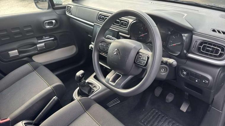 Coffee Break Alert, Cruise control + speed limiter, eCall emergency call system, Exterior temperature display, Instrument cluster with white LCD and analogue gauges, Multi function trip computer, Rear parking sensors, Reversing camera, Variable assistance power steering, USB connection, 3D rear light signature, Airbump on side door panel, Auto headlights, Automatic activation of hazard warning lights, Badge under exterior door mirrors, Body colour bumpers, Body colour door handles, C column sticker, C-Series Edition roof sticker, Chrome decoration on front face, under chevrons and around daytime running lights, Citroen illuminated signature in LED headlights and LED daytime running lights, Dark tinted tailgate and rear side windows, Electrically adjustable door mirrors, Electrically folding door mirrors, Fog lights integrated into front bumper, Front sequential electric windows with one-touch open/close and anti-pinch system, Heated door mirrors, LED Headlights, LED third brake light, Matt black finish B pillar, Perla nera black bi-tone roof, Rear sequential electric windows with one-touch open/close and anti-pinch system, Rear side wing doors, Rear windscreen wiper with intermittent mode linked to vehicle speed and automatic activation when reverse gear selected, Roof colour rear view mirror caps, Standard day night switchable interior rear view mirror, Variable front intermittent wipers, 1/3 to 2/3 split folding rear seat, 12V socket, Automatic air conditioning, Boot light, C-Series Edition carpet mats, Driver and passenger's sun visor with courtesy mirror, Driver's seat height adjustment, Front lighting panel with map reading lights, Front seats adjustable with forward back slide and adjustable backrest, Height adjustable front head restraints, Height/reach adjust steering wheel, ISOFIX mounting on outer rear seats with top tether and labels indicating fixing points, Mica cloth upholstery, Parcel shelf, Row 2 - Three seats with individually adjustable head rests, Seatbelt unfastened on the move audible and visual alert for front and rear seats, Single front passenger seat, Soft touch gear lever with leather effect gaiter and overstitching, Standard ambience, Steering wheel with satin chrome elements and audio/telephone controls, Three rear headrests, Upholstered armrest in front and rear doors, Anodised bronze colour pack - C3, C-Series Edition style pack - C3, Safety pack 1 - C3, Visibility pack with automatic lights - C3, ABS with Electronic brakeforce distribution and Emergency braking assistance, Driver and front passenger seatbelts with pyrotechnic pretensioners and force limiters, Driver's airbag, Electric child locks, ESP with anti skid system, Front passenger airbag, Front passenger airbag deactivation, Front side airbags + front/rear curtain airbags, Hill start assist, Manual parking brake with chrome finish button, Mono-tone horn, Outer rear seats with pretensioners and force limiters, Three rear 3-point seatbelts, Tyre pressure monitoring system, Anti theft alarm, Automatic door and boot locking with automatic unlocking in case of impact, Central locking with locked indicator and interior one touch lock button, Immobiliser, Remote control central locking with two plip keys, Soft touch leather effect dashboard finish with grey surround, 16" Matrix diamond cut alloy wheels, Tyre puncture repair kit,