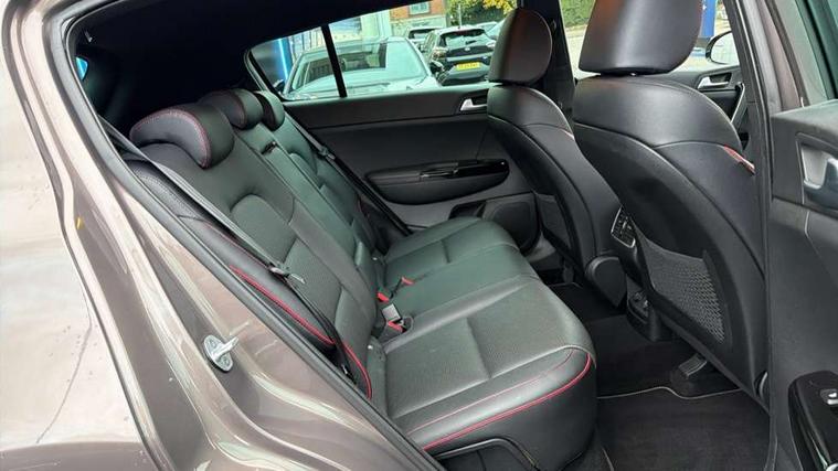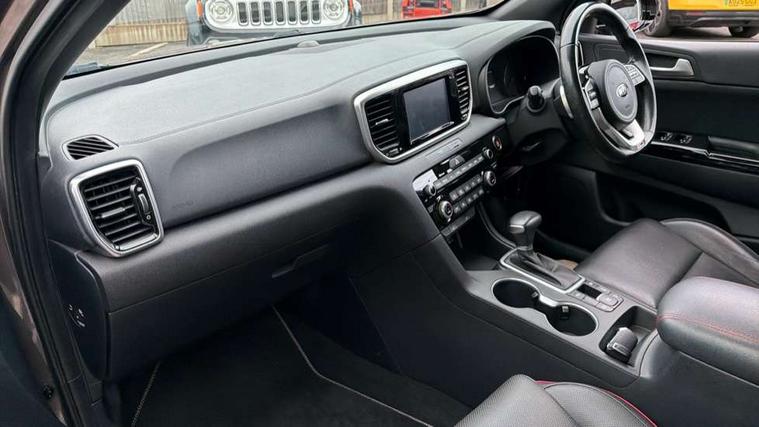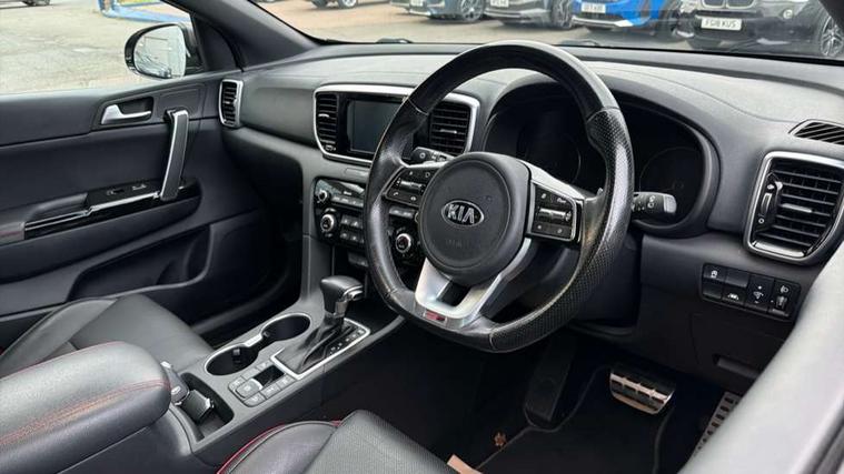 4.2" supervision colour cluster display, 7" touchscreen satellite navigation with European mapping and traffic messaging channel, Android auto with voice control, Apple car play with voice control, Bluetooth connectivity with voice control, Cruise control + speed limiter, Digital clock, Drive mode selector, Driver attention warning, Emergency stop signalling system, Front parking sensor, Kia connected services featuring TomTom live, Lane keep assist, Rear parking sensor, Reversing camera, Speed limit information, Speed sensitive power steering, Trip computer, Windscreen washer level indicator, Intelligent Stop and Go, 6 speaker audio system, Bluetooth audio streaming, DAB Radio with MP3, Rear USB port, Steering wheel mounted audio controls, USB/iPod/auxiliary input connections, All round electric windows with drivers auto up/down function, Auto dimming rear view mirror, Automatic defog system, Automatic headlights, Automatic lighting control, Black wheel arch body mouldings and side sills with dark chrome insert, Body colour door handles with chrome inserts, Body colour door mirrors, Chrome window surround, Cornering light, Dark chrome front bumper insert, Dark chrome grille surround, Dual exhaust pipes, Electrically adjustable/heated/folding door mirrors with LED indicators, Front wiper de-icer, High beam assist, High gloss black blade mesh radiator grille, LED Bi-Function headlights, LED daytime running lights, LED ice cube front fog lights, LED rear lights, Rain sensing front wipers, Rear spoiler, Rear wiper, Roof rails, Shark fin antenna, Silver painted front and rear skid plates, Speed sensitive front wipers, Tinted glass, Trailer stability assist, Welcome and follow-me home light functionality, Wide view drivers door mirror, Windscreen wiper de-icer, 12V power in front and rear centre console, 3 x passenger assist grips, 60/40 split folding rear seat, Air filter, All-round height adjustable headrests, Aluminium door scuff plates, Aluminium pedals, Black headlining, Centre cabin light, Centre console storage box, Chrome boot sill guard, D-Shaped sports leather steering wheel and perforated inserts with GT-Line logo, Door armrest in leather, Driver and front passenger side sunvisors with illuminated vanity mirrors, Driver's seat manual height adjust, Drivers seat power lumbar support, Dual zone automatic air conditioning, Front and rear door storage, Front cabin LED map light with sunglasses case, Front door courtesy reflectors, Front seat and rear pockets, Front/rear centre armrests, Gear shift indicator, Glovebox illumination, Heated front and outer rear seats, Interior door lock/unlock function, ISOFIX Child seat top tethers and anchor fixings, Leather trimmed gearshift, Leather upholstery, Luggage area light, Luggage area load cover, Luggage net with hooks, Paddle shift controls, Perforated leather sports steering wheel, Rear centre armrest with cupholder, Rear coat hooks, Rear headrests, Satin chrome interior door handles, Tilt/telescopic adjustable steering wheel, Ventilation ducts to rear compartment, Active front headrests, All round 3-point seatbelts, Anti-lock braking system with electronic brakeforce distribution, Dual front side airbags, Electronic parking brake, Electronic stability control with downhill brake control, ESP + traction control, Front passenger airbag cut-off switch, Front seatbelt pretensioners + load limiters, Height adjustable front seatbelts, Hill start assist control (HAC), Impact sensing auto door unlocking, Rear door child safety locks, Twin curtain airbags with roll over sensor, Twin front airbags, Tyre pressure monitoring system, Advanced anti-theft system including immobiliser and alarm, Door deadlocks, Engine Start/Stop Button with Smart Entry System, Locking wheel nuts, Speed sensitive auto door locking, Visible vehicle identification number, High gloss black centre fascia, 19" alloy Wheels B-type, Temporary spare wheel,