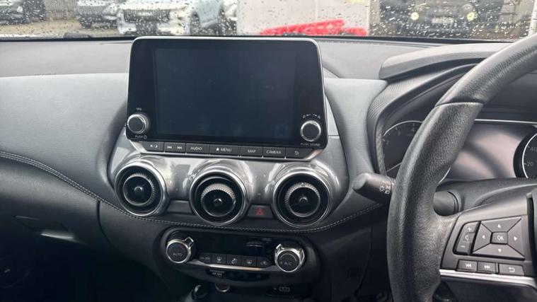 7" full colour TFT screen combimeter, 8" infotainment colour display with touch screen, Apple CarPlay and Google Android auto, Drive modes select (Eco, normal and sport), Emergency and breakdown call, Front parking sensor, Idle start/stop system, Intelligent lane intervention, Lane departure warning system, Nissan connect nav with TomTom traffic, Nissan connect services and Wifi connection, Outside temperature sensor, Power Steering, Rear parking sensor, Traffic sign recognition, Trip computer, Gasoline particulate filter, 6 speakers, Bluetooth system, USB, Aux-in and 12V socket, DAB Digital radio, Rear console USB port, Auto dimming interior rear view mirror, Automatic hazard signal with emergency stop signal, Body colour bumpers, Body colour door handles, Electrically adjustable door mirrors with integrated indicators, Follow me home headlights, Front and rear electric window with one touch driver and passenger window, Heated and auto folding door mirrors, High beam assist, LED daytime running lights, LED front fog lights, LED headlamps, LED rear fog lamp, LED rear lamps, Rain sensor windscreen wipers, Rear privacy glass, Rear spoiler, Rear wiper, Three blink turn signal, 3 height adjustable rear headrests, 60/40 split folding rear seat, Automatic climate control, Card holder on driver sunvisor, Cloth upholstery, Door ambient lighting, Driver and passenger sliding and reclining seats, Driver seat back pocket, Driver side rear coat hanger, Driver/passenger sunvisors and illuminated vanity mirrors, Front and rear cabin lights, Front armrest, Front door pockets with bottle holders, Front head restraints, Front/rear passenger grab handles, Gear console ambient circle lighting, Grey synthetic leather kneepad, Height adjustable driver's seat, Internal chrome door handles, Leather gearshift knob, Leather steering wheel, Luggage board, Luggage space lighting, Monoform sporty seats, Multifunction steering wheel, Passenger seat back pocket, Rear door bottle holders, Telescopic steering wheel adjustment, Two cupholders in front centre console, Two rear isofix child seat anchorage points with top tether, Voice recognition switch on steering wheel, Welcome light and console tray ambient lighting, ABS with EBD and brake assist, Active ride control, Active Trace Control, Driver and passenger airbags, Driver and passenger side airbags, Electric handbrake with auto hold function, Electronic Stability Programme (ESP), Front and rear curtain airbags, Height adjustable seatbelts, Hill start assist, Intelligent emergency braking with pedestrian and cyclist recognition, Seatbelt reminder for driver/front passenger and rear seats, Single tone horn, Three 3 point rear seatbelts, Traction control, Tyre pressure monitoring system, VDC Dynamic Vehicle Control, Ventilated rear brake discs, Alarm, Immobiliser, Intelligent Key with push button starter, Remote central locking,
