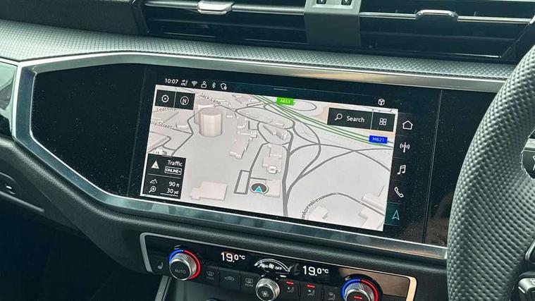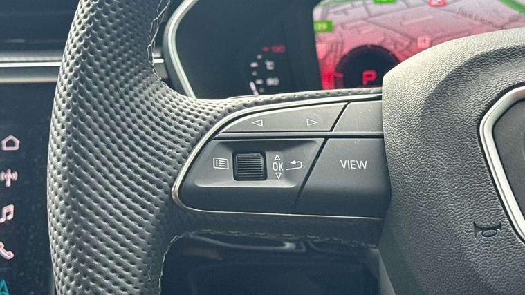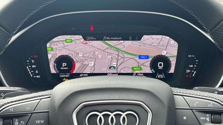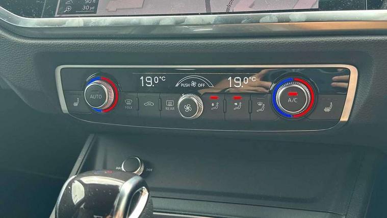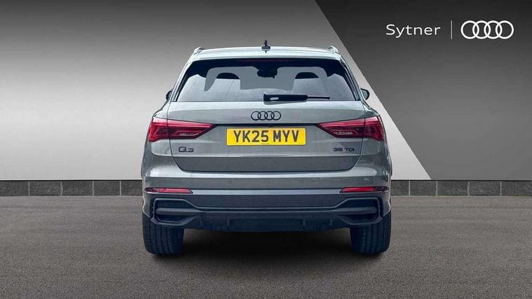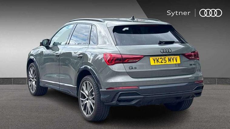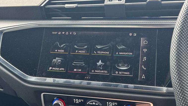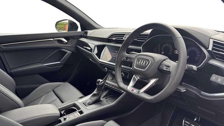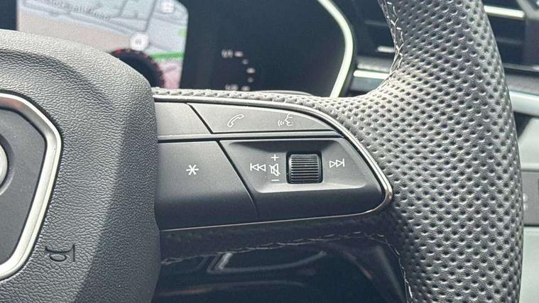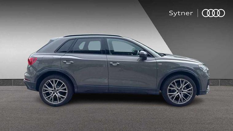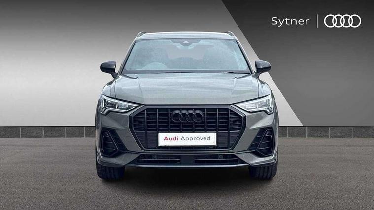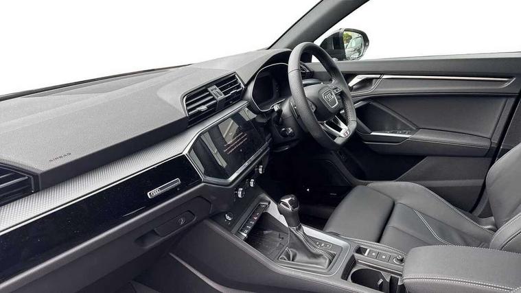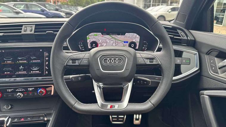 Amazon alexa Integration, Audi connect safety and service, Audi drive select, Audi lane departure warning, Audi Virtual Cockpit - 10.25" display, Bluetooth interface, Camera based traffic sign recognition, Distraction and Fatigue warning, Legal emergency call, MMI Navigation Plus with high resolution 10.1 inch touchscreen colour display, Power operated tailgate, Progressive steering, Service interval indicator, Smartphone interface includes wireless Apple carplay/Android Auto, Start stop system with recuperation, Voice control system with natural language interaction, Diesel particulate filter, Sports suspension, 2 USB-C ports with charge and data functions, 6 passive loudspeakers, DAB digital radio module, Acoustic windscreen, Audi Beam uses LEDs to project the Audi logo onto the ground as you exit your Q3, Auto dimming door mirrors, Auto dimming frameless rear view mirror, Black roof rails, Electrically folding, adjustable and heated door mirrors with integrated LED side indicators and kerb view function for passenger side, Front and rear electric windows, Front fog lights, Grille vertical bars in aluminium silver/Matt, High gloss black finish B and C pillars, LED Dynamic rear indicators, LED headlights with LED daytime running lights, LED rear lights, LED third brake light, Privacy glass dark tinted rear and rear-side windows (from B-pillar backwards), Rain and light sensors, Rear diffuser grille in grained matt black, Rear diffuser strip in matt anthracite black, Rear side wing doors, Rear wiper, S line bumpers in contrasting Manhattan grey, Variable front intermittent wipers, 12V socket in rear centre console, 3 seat bench in 2nd row, 40:20:40 folding with manual adjustment for 60:40 forwards/backwards position and backrest angle, Adjustable rear seat bench/backrest with centre armrest and cupholder, Black cloth headlining, Dual zone electronic climate control, Electric lumbar support, Front and rear black floor mats with contrast stitching in rock grey, Front and rear headrests, Front centre armrest, Height and reach adjustable steering wheel, Illuminated door sill trims with S logo, ISOFIX child seat mounting for front passenger with airbag deactivation and outer rear seat including top tether attachment point for outer rear seats, Manual front seats with height adjustment, Perforated leather gearknob, Single front passenger seat, Stainless steel luggage compartment sill finisher, Stainless steel pedals, Twin leather upholstery with front sport seats + S embossing, Black styling pack - Q3, Non smoking pack - Q3, 3x3 point rear seatbelts, 6 airbags - Driver, front passenger, curtain and side windows, Audi pre-sense front with pedestrain and cyclist recognition, Electrically operated child locks on rear doors, Electromechanical parking brake, Electronic stabilisation control including ABS, ASR and EDL, Front seatbelt reminder, Hill descent control, Hill hold assist, Pre sense basic, Seatbelt monitoring, Tyre pressure warning, Warning triangle and first aid kit, Anti theft wheel bolts, Immobiliser, Remote central locking, Thatcham approved category 1 anti theft alarm, Aluminium look interior elements, Detail dashboard around MMI touch colour display in glass look, black with surround in aluminium look, Leatherette door armrest, Piano black inlay,