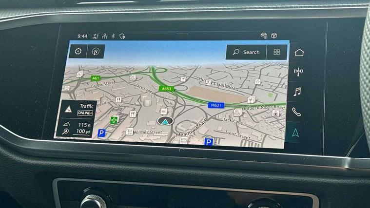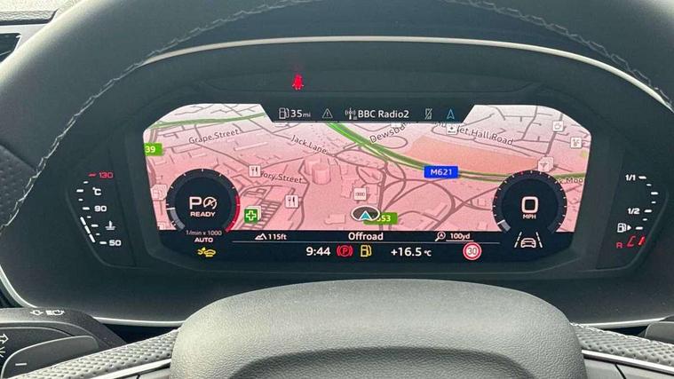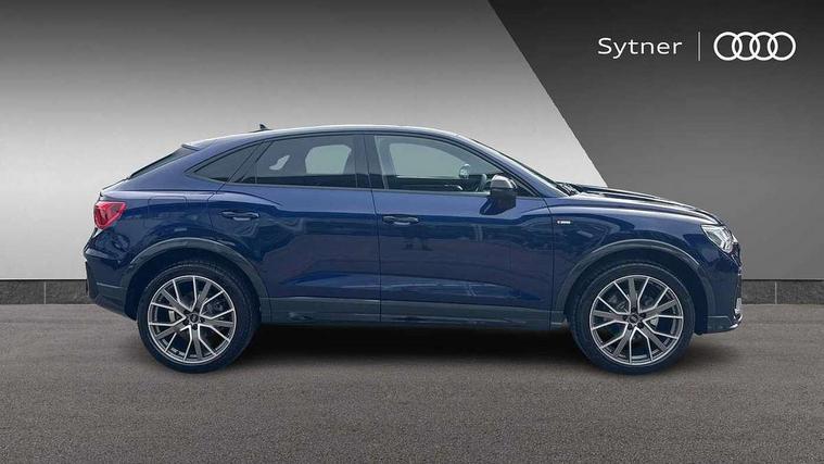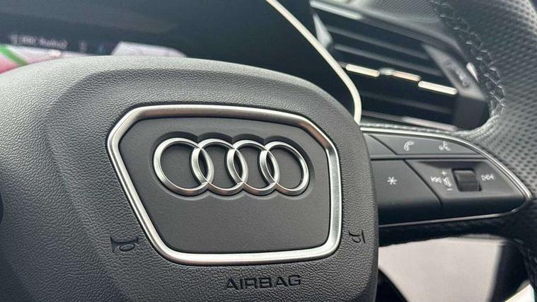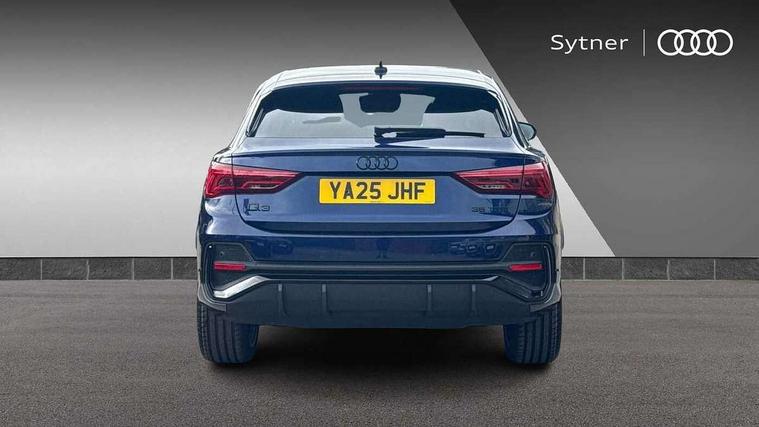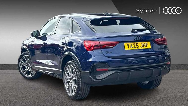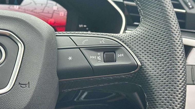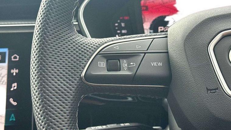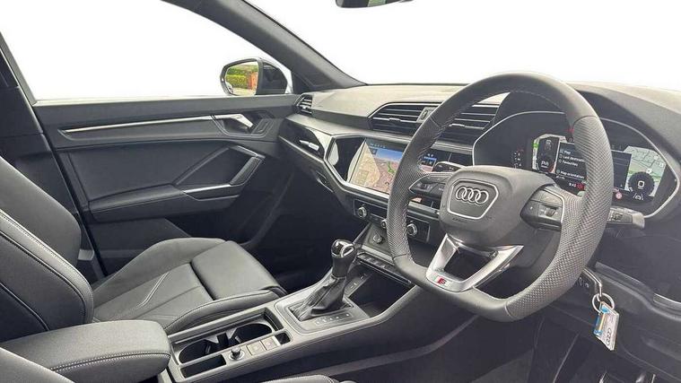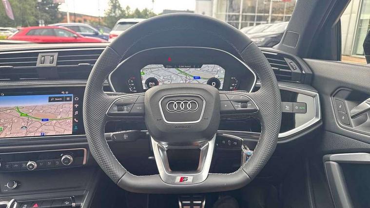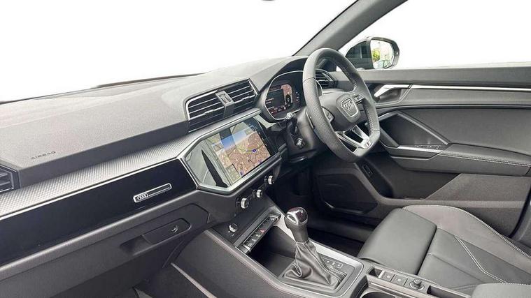 Audi connect safety and service, Audi drive select, Audi lane departure warning, Audi Virtual Cockpit - 10.25" display, Bluetooth interface, Camera based traffic sign recognition, Distraction and Fatigue warning, Legal emergency call, MMI Navigation Plus with high resolution 10.1 inch touchscreen colour display, Power operated tailgate, Progressive steering, Service interval indicator, Smartphone interface includes wireless Apple carplay/Android Auto, Start stop system with recuperation, Voice control system with natural language interaction, Sports suspension, 2 USB-C ports with charge and data functions, 6 passive loudspeakers, DAB digital radio module, Acoustic windscreen, Audi Beam uses LEDs to project the Audi logo onto the ground as you exit your Q3, Auto dimming door mirrors, Auto dimming frameless rear view mirror, Electrically folding, adjustable and heated door mirrors with integrated LED side indicators and kerb view function for passenger side, Front and rear electric windows, Front fog lights, Front underbody protection in manhattan grey paint finish, High gloss black finish B and C pillars, Honeycomb design radiator grille in matt anthracite black, LED Dynamic rear indicators, LED headlights with LED daytime running lights, LED rear lights, LED third brake light, Privacy glass dark tinted rear and rear-side windows (from B-pillar backwards), Rain and light sensors, Rear diffuser grille in grained matt black, Rear diffuser strip in matt anthracite black, Rear side wing doors, Rear underbody protection in matt black, Rear wiper, S line front and rear bumpers and side skirts in contrasting Manhattan grey paint finish, Variable front intermittent wipers, 12V socket in rear centre console, 3 seat bench in 2nd row, 40:20:40 folding with manual adjustment for 60:40 forwards/backwards position and backrest angle, Adjustable rear seat bench/backrest with centre armrest and cupholder, Black carpet mats, Black cloth headlining, Dual zone electronic climate control, Electric lumbar support, Front and rear black floor mats with contrast stitching in rock grey, Front and rear headrests, Front centre armrest, Height and reach adjustable steering wheel, Illuminated door sill trims with S logo, ISOFIX child seat mounting for front passenger with airbag deactivation and outer rear seat including top tether attachment point for outer rear seats, Luggage compartment sill protection in stainless steel, Manual front seats with height adjustment, Perforated leather gearknob, Single front passenger seat, Stainless steel pedals, Twin leather upholstery with front sport seats + S embossing, Black styling pack - Q3, Non smoking pack - Q3, 3x3 point rear seatbelts, 6 airbags - Driver, front passenger, curtain and side windows, Audi pre-sense front with pedestrain and cyclist recognition, Electrically operated child locks on rear doors, Electromechanical parking brake, Electronic stabilisation control including ABS, ASR and EDL, Front seatbelt reminder, Hill descent control, Hill hold assist, Pre sense basic, Seatbelt monitoring, Tyre pressure warning, Warning triangle and first aid kit, Anti theft wheel bolts, Immobiliser, Remote central locking, Thatcham approved category 1 anti theft alarm, Aluminium look interior elements, Detail dashboard around MMI touch colour display in glass look, black with surround in aluminium look, Leatherette door armrest, Piano black inlay,