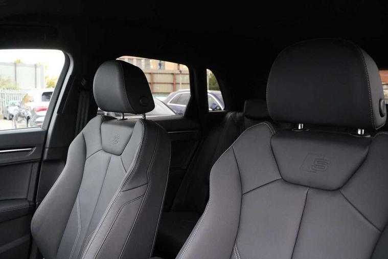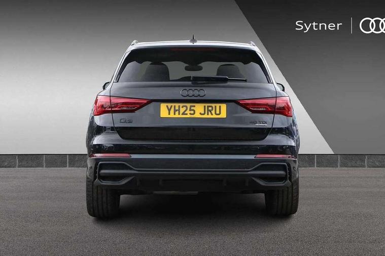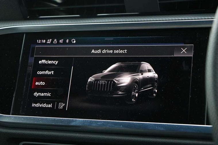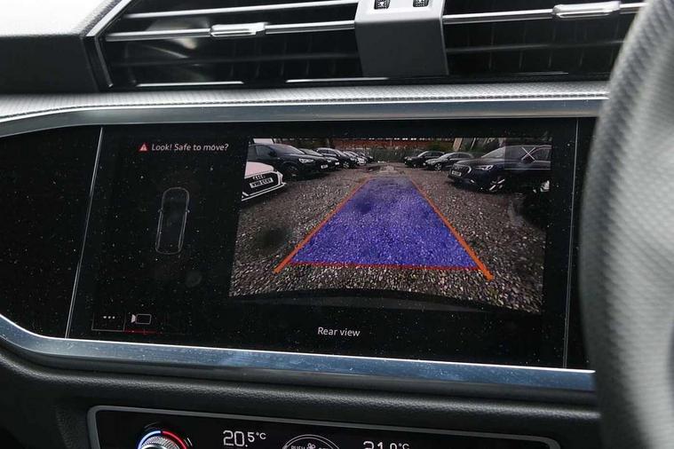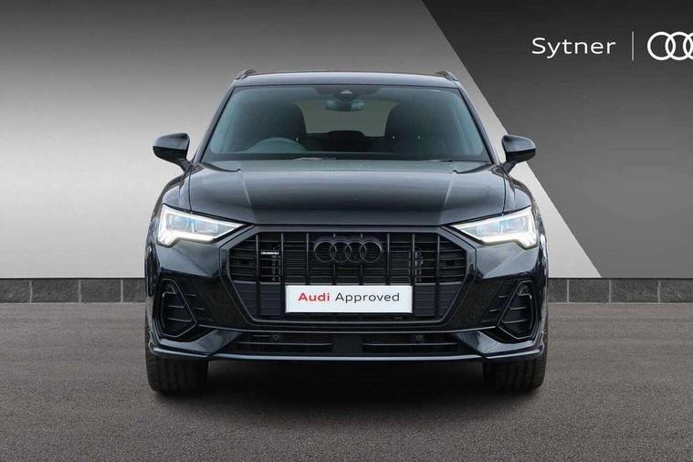 Amazon alexa Integration, Audi connect safety and service, Audi drive select, Audi lane departure warning, Audi Virtual Cockpit - 10.25" display, Bluetooth interface, Camera based traffic sign recognition, Distraction and Fatigue warning, Legal emergency call, MMI Navigation Plus with high resolution 10.1 inch touchscreen colour display, Power operated tailgate, Progressive steering, Service interval indicator, Smartphone interface includes wireless Apple carplay/Android Auto, Start stop system with recuperation, Voice control system with natural language interaction, Diesel particulate filter, Sports suspension, 2 USB-C ports with charge and data functions, 6 passive loudspeakers, DAB digital radio module, Acoustic windscreen, Audi Beam uses LEDs to project the Audi logo onto the ground as you exit your Q3, Auto dimming door mirrors, Auto dimming frameless rear view mirror, Black roof rails, Electrically folding, adjustable and heated door mirrors with integrated LED side indicators and kerb view function for passenger side, Front and rear electric windows, Front fog lights, Grille vertical bars in aluminium silver/Matt, High gloss black finish B and C pillars, LED Dynamic rear indicators, LED headlights with LED daytime running lights, LED rear lights, LED third brake light, Privacy glass dark tinted rear and rear-side windows (from B-pillar backwards), Rain and light sensors, Rear diffuser grille in grained matt black, Rear diffuser strip in matt anthracite black, Rear side wing doors, Rear wiper, S line bumpers in contrasting Manhattan grey, Variable front intermittent wipers, 12V socket in rear centre console, 3 seat bench in 2nd row, 40:20:40 folding with manual adjustment for 60:40 forwards/backwards position and backrest angle, Adjustable rear seat bench/backrest with centre armrest and cupholder, Black cloth headlining, Dual zone electronic climate control, Electric lumbar support, Front and rear black floor mats with contrast stitching in rock grey, Front and rear headrests, Front centre armrest, Height and reach adjustable steering wheel, Illuminated door sill trims with S logo, ISOFIX child seat mounting for front passenger with airbag deactivation and outer rear seat including top tether attachment point for outer rear seats, Manual front seats with height adjustment, Perforated leather gearknob, Single front passenger seat, Stainless steel luggage compartment sill finisher, Stainless steel pedals, Twin leather upholstery with front sport seats + S embossing, Black styling pack - Q3, Non smoking pack - Q3, 3x3 point rear seatbelts, 6 airbags - Driver, front passenger, curtain and side windows, Audi pre-sense front with pedestrain and cyclist recognition, Electrically operated child locks on rear doors, Electromechanical parking brake, Electronic stabilisation control including ABS, ASR and EDL, Front seatbelt reminder, Hill descent control, Hill hold assist, Pre sense basic, Seatbelt monitoring, Tyre pressure warning, Warning triangle and first aid kit, Anti theft alarm, Anti theft wheel bolts, Immobiliser, Remote central locking, Aluminium look interior elements, Detail dashboard around MMI touch colour display in glass look, black with surround in aluminium look, Leatherette door armrest, Piano black inlay,
