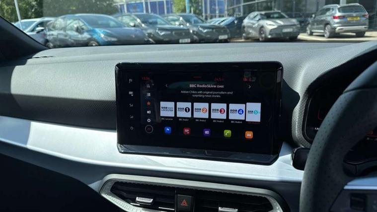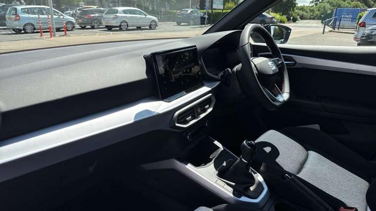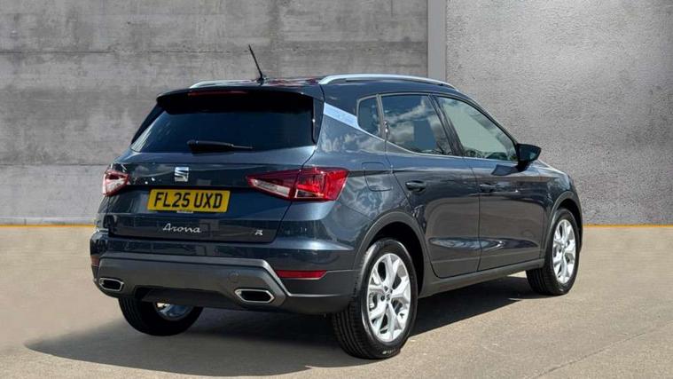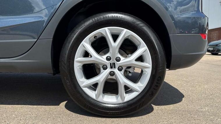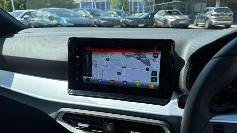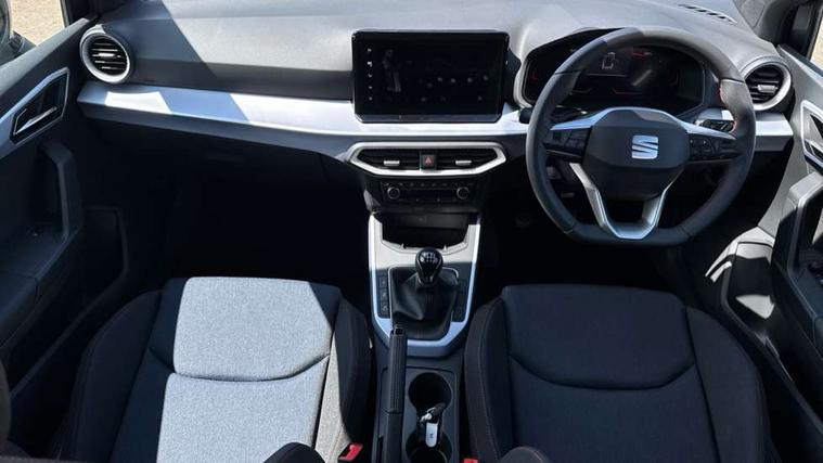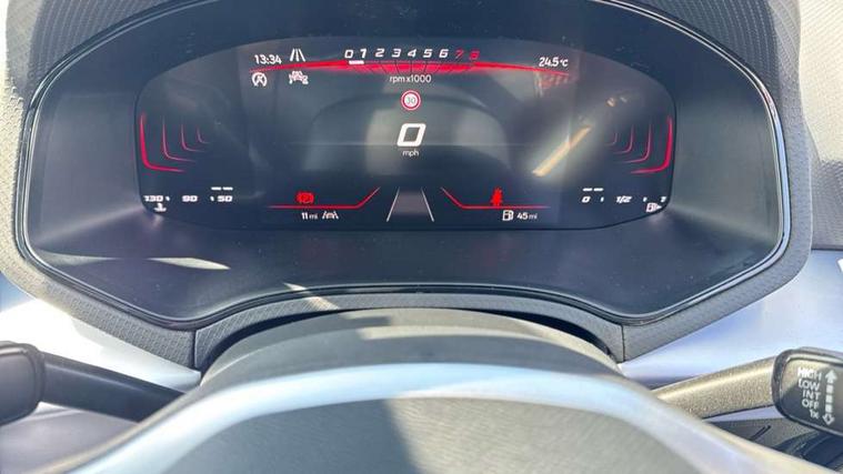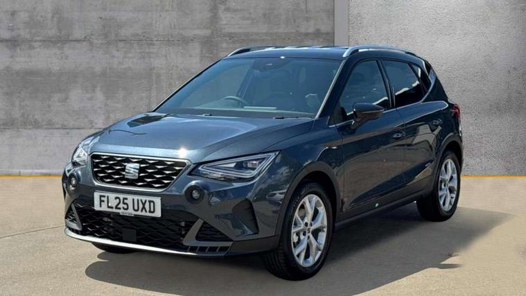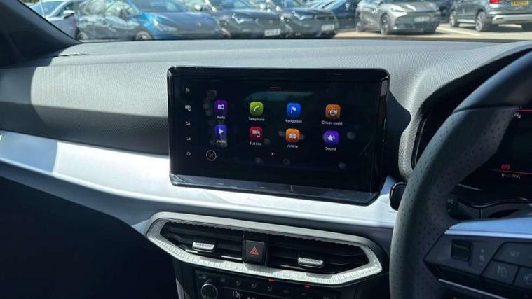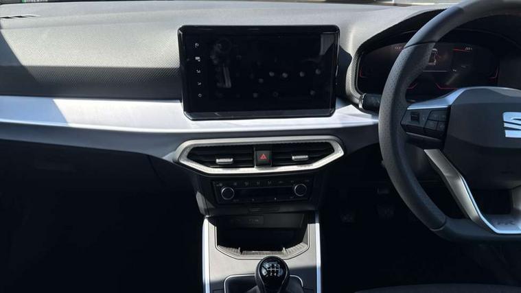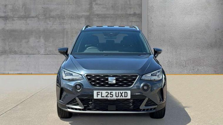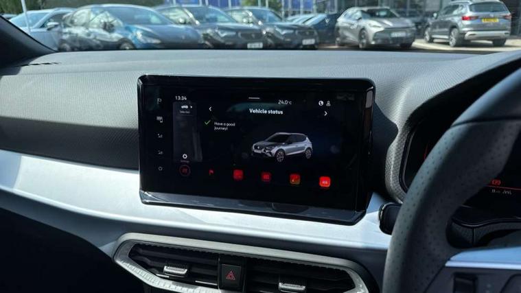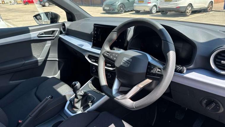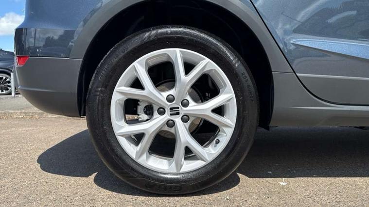 'Lights On' Reminder warning buzzer, 8" Digital cockpit, Digital clock, E-call, Electric speed sensitive power steering, Full link smartphone integration with mirror link, wireless apple carplay, Google android auto + USB Type C cable for apple and android devices, Lane keeping system, Low fuel warning light, Outside temperature display, RPM counter, SEAT Drive profile - Four different models normal-sport-eco-individual, steering response, throttle response, Trip computer, Wireless phone charger, 6 speakers, 9.2" colour touchscreen with navigation system, voice control and USB port (type c), Bluetooth interface for hands free and audio streaming, DAB digital radio and AM/FM radio, Steering wheel mounted audio controls, Anti theft roof antenna, Auto dimming interior rear view mirror, Automatic activation of hazard warning lights, Body coloured bumpers, Body coloured door handle inserts, Chrome roof rails and window surrounds, Dark tinted rear windows, Electric front/rear windows, Electrically adjustable, heated and folding door mirrors, Front fog lights with cornering function and rear fog light, FULL LED automatic headlights with dynamic headlight range control, coming and leaving home, LED daytime running lights, LED rear tail lights and licence plate lights, Protective side mouldings, Rain sensing wipers, Rear side wing doors, Rear spoiler, Rear window wash/wipe, Roof colour door mirrors, Third brake light, Twin exhaust pipe styling hidden exhaust pipe, Visible VIN plate, 2 cupholders, 3 seat bench in 2nd row, 60/40 split folding rear seat, Aircare filter, Black interior roof, Cloth upholstery, Double boot floor, Driver sunvisor with covered mirror + card holder, Dual zone climate control, Front courtesy light with front reading lights, Gear shift indicator, Height adjustable front seats, Height/reach adjustable steering column, Illuminated air vent surrounds, Illuminated boot, Instrument lighting with brightness control, Interior ambient lighting, Interior light in footwell, central console and door panel, ISOFIX points in outer rear seats with top tether anchorage points, Passenger sunvisor with vanity mirror, Perforated flat bottomed leather steering wheel/gear knob/handbrake with red stitching and FR logo, Potentiometer, Single front passenger seat, Two front and three rear height adjustable headrests, Interior chrome pack - Arona, Safe and driving pack (S) - Arona, 3 point seatbelts on all rear seats, ABS, Active front headrests, Child locks on rear doors, Driver and front passenger airbags with front passenger airbag de activation, front side and curtain airbags, Emergency Brake Assist (EBA) and front assist, Front and rear seatbelt reminder, Hill hold control, Multi-Collision braking, Tiredness recognition system, Traction control, Tyre pressure monitoring system, Alarm with back up horn with tow away protection, Deadlock, Electronic engine immobiliser, Locking wheel bolts, Remote central locking, Titan black dashboard, 17" Dynamic alloy wheels,