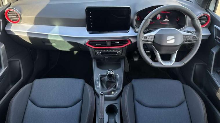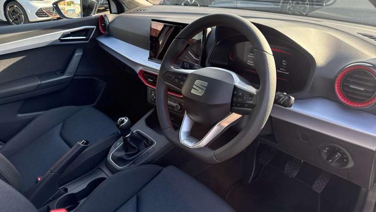 'Lights On' Reminder warning buzzer, 8" Digital cockpit, 9.2" touchscreen navigation system with type C USB socket, Voice control and DAB/AM/FM radio, Auto start and stop system, Bluetooth audio streaming with handsfree system, Digital clock, E-call, Full link smartphone integration with mirror link, wireless apple carplay, Google android auto + USB Type C cable for apple and android devices, Lane assist, Low fuel warning light, Outside temperature gauge, Power Steering, Rear parking sensor, Seat connect plus with safety, service, remote and online, SEAT drive profiles and ECO function, SEAT logo boot release, Speed limiter, Traffic sign recognition, Trip computer, Sports suspension, Auxiliary input socket, Radio/MP3 player, SD card slot, Steering wheel mounted controls, Anti theft roof antenna, Auto dimming rear view mirror, Automatic rain sensing wipers, Black door mirror caps, Body colour bumpers, Body colour door handles, Brilliant black window surrounds, Dark tinted rear windows, Electric adjustable/heated/folding door mirrors, Electric front windows, Electric headlight adjustment, Electric rear windows, Front/rear fog lights, FULL LED automatic headlights with dynamic headlight range control, coming and leaving home, LED daytime running lights, LED 3rd brake light, LED tail lights, Rear roof spoiler with FR twin exhausts, Rear side wing doors, Rear wiper, 3 seat bench in 2nd row, 60/40 split folding rear seat, Ambient interior lighting, Chrome detailing and black headlining, Cloth upholstery, Dual zone climate control with combination filter, Front courtesy lights, Front cupholders x 2, Front reading lights, Gear shift indicator, Glovebox, Height adjustable front and rear headrests (five), Height adjustable front seats, Height/reach adjust steering wheel, Illuminated air vent surrounds, Illuminated boot, Instrument lighting with brightness control, Isofix, Leather multifunction flat bottomed sports steering wheel, Passenger sunvisor, Single front passenger seat, Sports seats, Sunvisors with mirror and driver side card holder, Safety and driving pack (S) - Ibiza, 3 point seatbelts on all 3 rear seats, ABS, Active front headrests, Child locks on rear doors, Electronic stability control, Energy recovery system, Front driver and passenger side airbags with curtain airbag and front passenger airbag deactivation, Hill hold control, Multi-Collision braking, Seat belt reminder for front and rear seats, Tiredness recognition system, Tyre pressure monitoring system, Locking wheel bolts, Perimeter alarm and interior monitoring with backup horn and tow away protection, Remote central locking + deadlocks, 17" Alloy wheels in Brilliant silver,