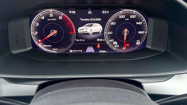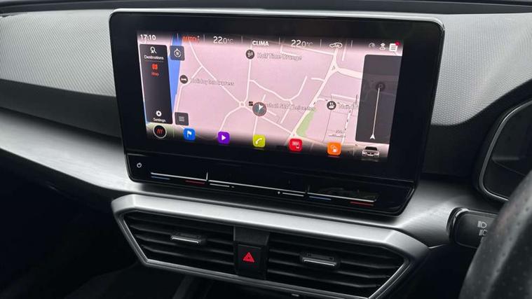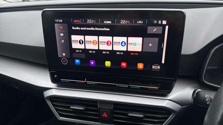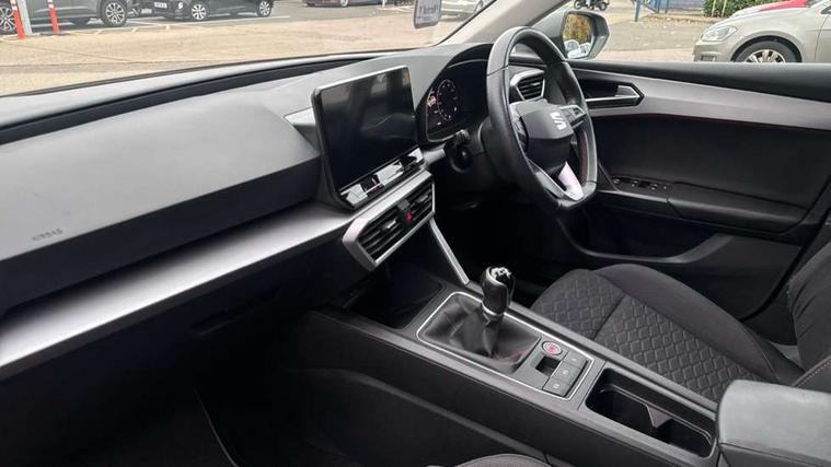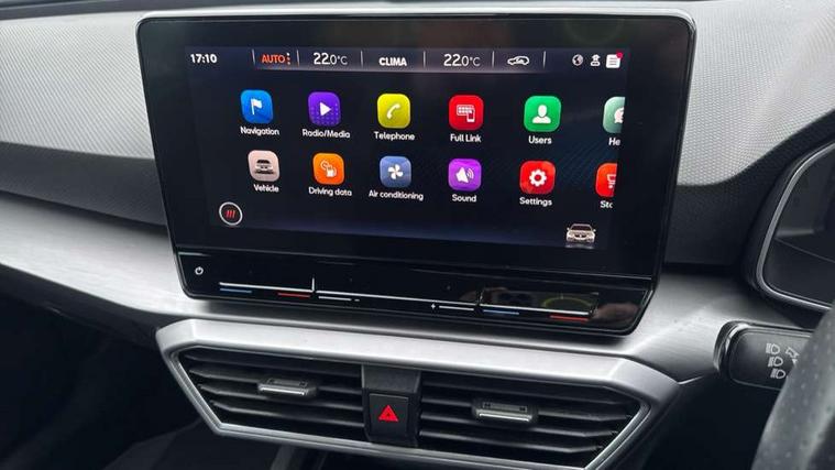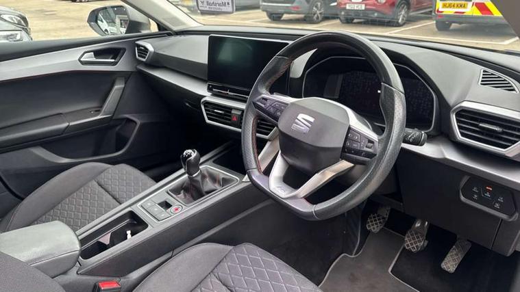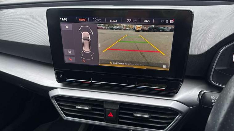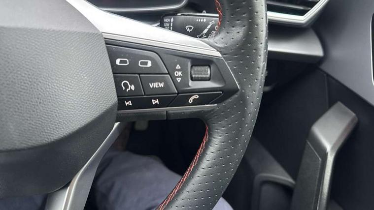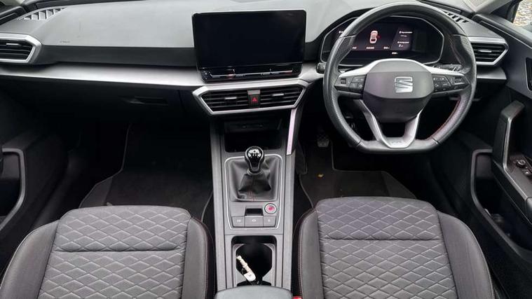Digital cockpit, E-call, Four x USB Type C ports, Front assist with forward collision warning braking reaction to vehicles, pedestrians and cyclists, Full link smartphone integration with Mirror Link, wireless Apple CarPlay and wired Google Android Auto, Lane assist, Lockable tailgate, Park assist (inc front/rear parking sensors), Power assisted speed sensitive electro-mechanical steering, Rear view camera, RPM, trip computer, outside temp gauge, instrument light brightness, low fuel warning light, lights on reminder, gearshift indicator, SEAT drive profile with 4 modes (Eco/Normal/Sport/Individual), throttle response, Service interval indicator, Start/stop system with regenerative braking, Sports suspension, XDS electronic differential lock and dynamic traction support, 7 speakers, Auxiliary input socket, Auto dimming rear view mirror, Body colour door handles, Body coloured bumpers, Cosmo grey exterior mirrors with integrated LED indicators, Dark tinted rear windows, Dynamic headlight range control, Electric front/rear windows, Electrically adjustable, heated and folding door mirrors, FR sports bumper, Illuminated front door sill, LED front fog lamps, LED Headlights with dynamic turn signals, LED tail lights and rear fog lights with rear coast to coast lighting, Matt black roof rails, Rear side wing doors, Rear wash/wipe, Separate daytime running light with automatic headlight control and coming home feature, Third brake light, Welcome light silhouette from exterior mirrors, Windshield wiper intermittent control with light/rain sensor, 12v power point in centre console, 3 seat bench in 2nd row, 60/40 split rear bench seat with armrest, Ambient lighting with glovebox, footwell and single monocolour, Driver/passenger manual seat height adjustment, Dust/pollen filter, Flat bottomed perforated leather steering wheel with red stitching and FR logo and leather gear stick, Front and rear height adjustable headrests, Front and rear reading lights X 4, Front centre armrest, Front seatback storage pockets, Height/reach adjust steering wheel, ISOFIX points in outer rear seats with top tether anchorage points, Luggage tie-down hooks, Lumbar adjustment for front seats, Single front passenger seat, Sliding boot cover, Sunvisors with covered illuminated mirror, Three zone climate control, Two tone cloth upholstery, Media system plus with navigation - Leon, 3 point seatbelts on all rear seats, ABS, Brake control system - ESC and brake booster, Child proof door locks, Driver and front passenger airbags with front passenger airbag de-activation, front side and curtain airbags, Electronic parking brake, Extended safety system - seat belt tensioner, window closure and hazard lights, Hill hold control, Rear disc brakes, Seat belt reminder for front and rear seats, Tiredness recognition system, driver alert system, Tyre pressure monitoring system, Anti theft alarm system with interior monitoring in cab, backup horn and towing protection, KESSY Go (Keyless start), Locking wheel bolts, Wireless phone charging, Chrome interior detailing, 17" Dynamic Bi-spoke alloy wheels with 91W tyres, Tool kit,