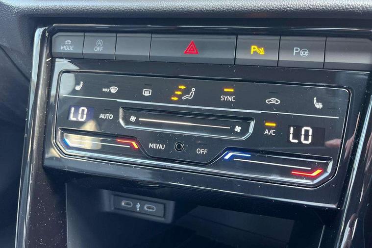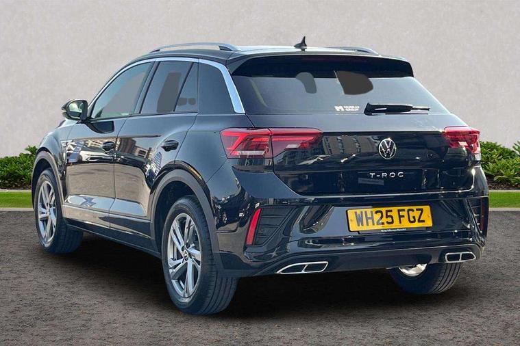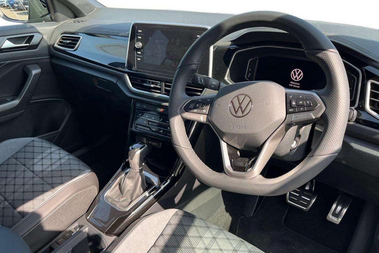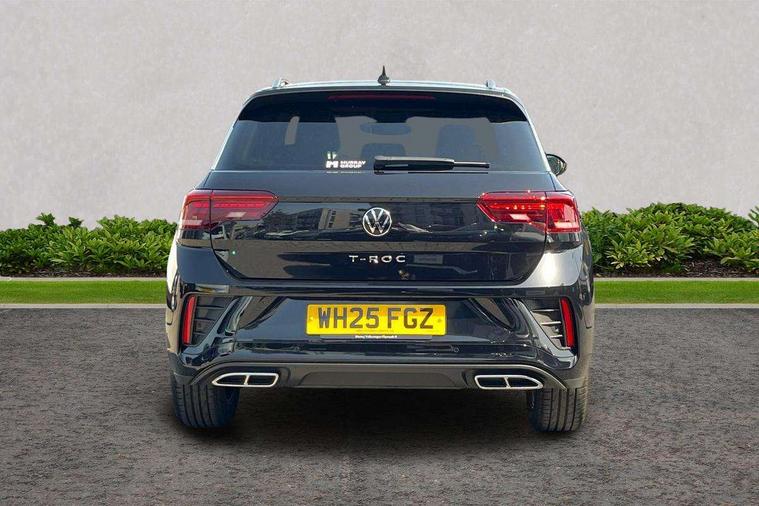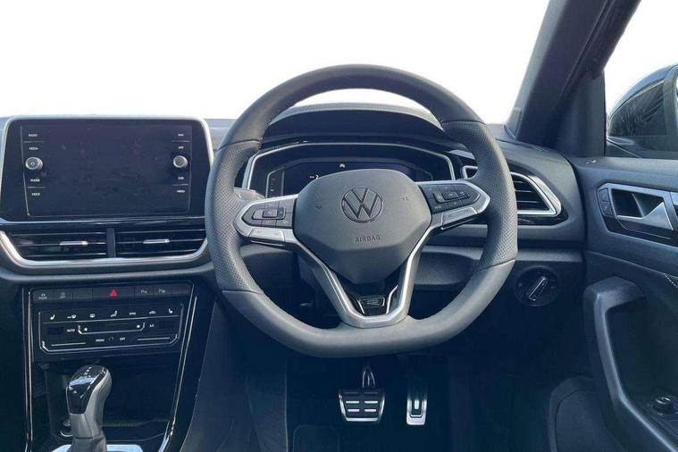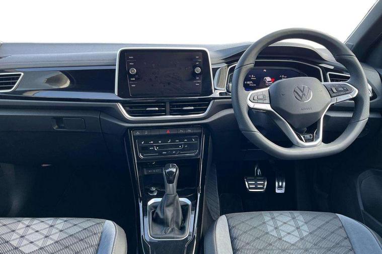 10.25" Digital cockpit pro, Advanced driver attention and drowsiness monitor, Emergency call service, Lane keeping system Lane Assist, Mobile phone interface, Modified key software - reduce switch off time for key status change to Long no motion, Online services, Park assist including front and rear parking sensors, Service interval indicator, Tailgate/trunk lid release from outside, Think blue trainer driver tips and journey analysis, Warning sound and light for front seatbelts unfastened, Wireless app connect, Battery regeneration during braking, Start/stop function with battery regeneration, DAB Digital radio, Diversity antenna for FM reception, Front and rear 6 speakers, Music playback - MP3, WMA and AAC files, Premium USB cable in choice of either Apple or Android smartphone compatibility, SD card slot, Simultaneous pairing of 2 compatible mobile devices, Title and cover art display, We Connect and We Connect Plus functionality, Auto dimming interior rear view mirror, Automatic hazard lights activation under emergency braking, Automatic headlight control with LED separate daytime running lights with coming/leaving home function, Body coloured exterior mirror housings and door handles, Electrically adjustable and heated door mirrors, Extended roof spoiler, Exterior mirrors aspherical on driver side, convex on front passenger side, External USB type C socket and charging sockets, Front windscreen wiper with intermittent wipe and 4 position delay, Heated rear window, LED 3rd brake light, LED rear combination lamps, LED rear number plate lights, Power windows with comfort operation and circuit breaker, Privacy glass for rear side windows and rear window, R-Line design body coloured bumpers, Rain sensor, Rear exhaust tailpipe, Rear fog light on one side and reversing lights on both sides, Rear side wing doors, Rear wash/wipe with intermittent wipe setting, Remote electrically foldable door mirrors, puddle lights and reverse activated passenger's door mirror, 12V power socket in centre console, 3 rear head restraints, 3 seat bench in 2nd row, 4 load lashing points in luggage compartment, Air care climatronic air conditoning system with active combination filter and 2-zone temperature control, Black roof lining, Chrome plated decorative trims, Chrome plated radiator grille inserts, air vent surrounds and light switch surrounds, Door and side trim panel with leatherette insert, Front + rear carpet mats, Front centre armrest, Front cupholders x 2, Front footwell illumination, Front reading light, Front scuff plates with R Line logo, Front seat back storage pockets, Glove compartment door with light, Instrument lighting, white adjustable panel illumination, Interior ambient lighting and surround lighting, Interior light delay, Isofix child seat preparation, Leather gearshift handle, Load-through provision with cup holder when folded down ('Unsplit rear seat bench, split folding backrest, with centre armrest), Luggage compartment lighting, Single front passenger seat, Stainless steel pedals, Storage compartment in left and right luggage area, Storage compartment in rear doors, Storage compartments in driver and front passenger doors, Sunvisors with illuminated vanity mirrors, Variable boot floor, height adjustable and removable, Driver assistance pack without proactive passenger protection - T-Roc, 3 point height adj front seatbelts + pretensioners, 3 point seatbelts in outer rear with ECE label, ABS, Child locks on rear doors, City emergency braking and pedestrian monitoring, Driver and front passenger airbag with front passenger airbag deactivation, Driver and front passenger safety-optimised head restraints, Drivers seatbelt reminder, Electronic parking brake, Electronic Stability Control (ESC) inc EDL (Electronic Differential Lock) and ASR (Traction Control), Front and rear passengers curtain airbag system including front side airbags, Hill start assist, Predictive pedestrian protection, Rear disc brakes, Two tone horn, Tyre pressure loss indicator, Volkswagen roadside assistance, Piano black decorative inserts in dashboard and front door trim panels, Trims for alloy wheels,