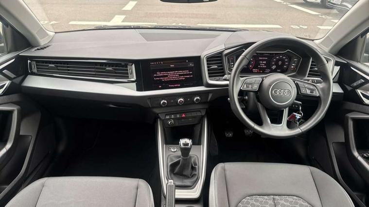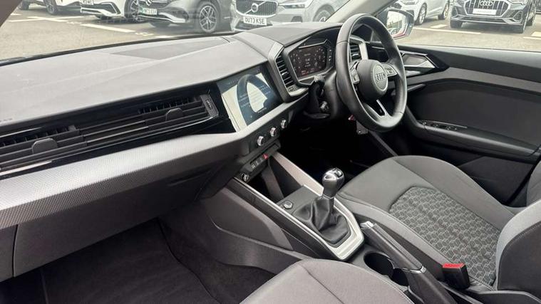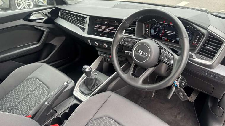 10.25" Digital instrument cluster display classis style instrument dials + speed, odometer, time, outside temperature, telephone menu + fuel level warning, Audi connect safety emergency and service including E-call, Audi drive select - power steering assistance + engine, Audi smartphone interface with connect compatible smartphone via USB directly MMI display + Nav, music, third party apps controlled via MMI controller, Automatic start/stop system, Bluetooth interface, Cruise control, Driver's information system, Electromechanical power steering, Emergency services call system, Lane departure warning system, Service interval indicator, Speed limiter, Voice control system, Washer fluid level indicator, Dynamic suspension, 1 x SDXC card reader, 2 x USB type C connection points, DAB Digital radio, MMI radio plus with 8.8" colour MMI display screen and MMI touch, Auto dimming rear view mirror, Body coloured bumpers, Body coloured door mirrors, Electric front and rear windows, Electrically adjustable, heated, folding door mirrors with integrated LED side indicator, Front side air inlets in grained matt black and C frame in titanium black, Heat insulating glass windscreen and side windows, Heated rear windscreen, High level LED brake light, LED headlights with LED rear lights + dynamic rear indicators + headlight adjustment and high beam, turning light + LED daytime running lights, Radiator grille and rear diffuser in matt titanium black, Radiator protective grille frame in matt aluminium silver, Rain and light sensors, Rear fog lights, Rear side wing doors, Rear wing door, Rear wiper, Side front spoiler lips in grained matt black, 12V socket in centre console with two cup holders, 3 rear seats with headrests, 3 seat bench in 2nd row, 40:60 Split folding rear seat or folded fully, Door sill trims with aluminium inlay, Driver and passenger seat with manual height adjust with forward and backwards adjustment, Front head restraints, Front passenger seat, Front/rear floor mats, Height and reach adjustable steering wheel, ISOFIX child seat mounting for front passenger and outer rear seats including top tether attachment point of outer rear seats, Leather gear knob with aluminium trim, Leatherette handbrake grip, Luggage compartment light with front and rear reading lights, Manually adjustable lumbar support in front seats, Novum cloth upholstery with front sport seats, Titanium grey cloth headlining, Luggage compartment pack - A1, 3x3 point rear seatbelts, Audi pre-sense front with pedestrain and cyclist recognition, Brake assist function, Driver and front passenger airbag with front side and head airbags, Electronic Stability Control including ABS, EBD, ASR and EDL, Front passenger airbag deactivation switch, Hill hold assist, Manual rear child locks, Seatbelt height adjustment for front seats, Seatbelt monitoring, Tyre pressure warning light, Warning triangle and first aid kit, Anti theft alarm, Anti theft wheel bolts and loose wheel warning, Immobiliser, Remote central locking with 2 foldaway keys, Aluminium trim for control switches, air vents and digital instrument cluster, Silver grey accent areas including air vents, door handle recesses and centre console in diamond paint finish, Slate grey inlays polygon structure in fine paint finish,