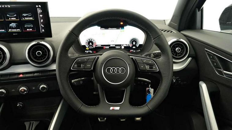 3D map display, Audi connect navigation and infotainment includes innovative services, Audi connect remote and control connects your vehicle to your smartphone, Audi drive select: power steering assistance + engine (modes: comfort, auto, dynamic, individual), Audi smartphone interface - Apple carplay/Android Auto, USB connect, 2xSDXC card readers, voice control for navi, telephone, music and 3rd party apps, Audi virtual cockpit, Automatic start/stop system with recuperation, Bluetooth interface includes bluetooth audio streaming, Camera based traffic sign recognition, Cruise control, Distraction and Fatigue warning, E-call, Jukebox hard drive memory for music (10GB), Lane departure warning, MMI navigation plus with 8.8" touchscreen, Natural voice recognition, Power operated tailgate, Progressive steering, Rear parking sensors, Sport suspension, 6 passive loudspeakers, DAB Digital radio, USB type C port, Audi beam, Auto dimming rear view mirror, Black window trims, Bumper in full body colour paint finish, Electrically adjustable, folding, auto dimming and heated door mirrors with integrated LED side indicators, Front windscreen with grey tinted sunband, LED daytime running lights, LED headlights with dipped beam, high beam, position lights, indicators, LED rear lights, LED third brake light, Privacy glass - dark tinted rear and rear side windows from B-pillar backwards, Rear side wing doors, Rear wiper, Variable front intermittent wipers, Wheel arch trims in manhattan grey, 12v socket in front, 3 seat bench in 2nd row, 3 spoke flat bottomed multi-function leather sport steering wheel, 4-way electric lumbar support for front seats including manual seat height adjustment for both front seats, 60/40 split folding rear seat bench, Black carpets, Black cloth headlining, Front and rear head restraints, Front centre armrest, Front sport seats, Front/rear floor mats, Height/reach adjust steering wheel, Illuminated door sill trims with S logo, ISOFIX child seat mounting in front passenger and rear outer seats, Manual air conditioning, Single front passenger seat, Stainless steel pedals, Black styling pack - Q2, 3x3 point rear seatbelts, 6 airbags - Front, curtain and front side airbags, Electromechanical parking brake, Electronic stabilisation control including ABS, ASR and EDL, Front passenger airbag deactivation, Hill hold assist, Pre-sense front with pedestrian recognition, Seatbelt monitoring, Tyre pressure warning light with visual and acoustic warning, Warning triangle and first aid kit, Anti theft wheel bolts, Electronically operated child locks, Remote central door locking, Thatcham category 1 alarm, Aluminium interior element, Black dashboard, Gloss black centre console, Matt brushed aluminium trim inlays, Tool kit,