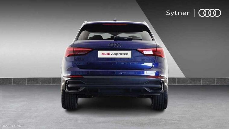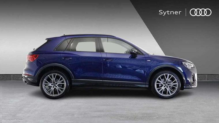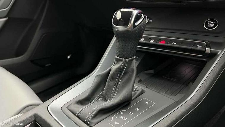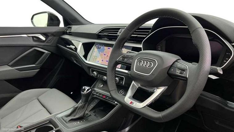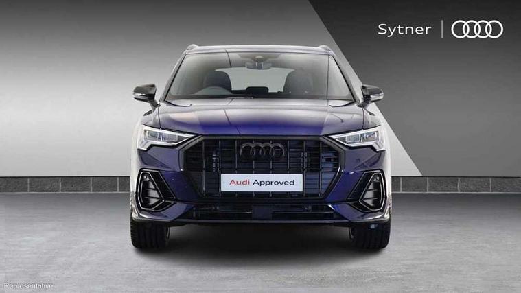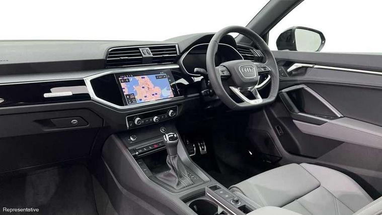 Amazon alexa Integration, Audi connect safety and service, Audi drive select, Audi lane departure warning, Audi smartphone interface includes wireless Apple carplay/Android Auto, Audi Virtual Cockpit - 10.25" display, Bluetooth interface, Camera based traffic sign recognition, Distraction and Fatigue warning, Legal emergency call, MMI Navigation Plus with high resolution 10.1 inch touchscreen colour display, Power operated tailgate, Progressive steering, Service interval indicator, Start stop system with recuperation, Voice control system with natural language interaction, Sports suspension, 2 USB-C ports with charge and data functions, 6 passive loudspeakers, DAB digital radio module, Acoustic windscreen, Anthracite black radiator grille, Audi Beam uses LEDs to project the Audi logo onto the ground as you exit your Q3, Auto dimming door mirrors, Auto dimming frameless rear view mirror, Black roof rails, Electrically folding, adjustable and heated door mirrors with integrated LED side indicators and kerb view function for passenger side, Front and rear electric windows, Front fog lights, Grille vertical bars in aluminium silver/Matt, High gloss black finish B and C pillars, LED Dynamic rear indicators, LED headlights with LED daytime running lights, LED rear lights, LED third brake light, Privacy glass dark tinted rear and rear-side windows (from B-pillar backwards), Rain and light sensors, Rear diffuser grille in grained matt black, Rear diffuser strip in matt anthracite black, Rear side wing doors, Rear wiper, S line bumpers in contrasting Manhattan grey, Variable front intermittent wipers, 12V socket in rear centre console, 3 seat bench in 2nd row, 40:20:40 folding with manual adjustment for 60:40 forwards/backwards position and backrest angle, Adjustable rear seat bench/backrest with centre armrest and cupholder, Black carpet mats, Black cloth headlining, Dual zone electronic climate control, Electric lumbar support, Front and rear black floor mats with contrast stitching in rock grey, Front and rear headrests, Front centre armrest, Height and reach adjustable steering wheel, Illuminated door sill trims with S logo, ISOFIX child seat mounting for front passenger with airbag deactivation and outer rear seat including top tether attachment point for outer rear seats, Luggage compartment sill protection in stainless steel, Manual front seats with height adjustment, Perforated leather gearknob, Single front passenger seat, Stainless steel pedals, Twin leather upholstery with front sport seats + S embossing, Black styling pack - Q3, Non smoking pack - Q3, 3x3 point rear seatbelts, 6 airbags - Driver, front passenger, curtain and side windows, Audi pre-sense front with pedestrain and cyclist recognition, Electrically operated child locks on rear doors, Electromechanical parking brake, Electronic stabilisation control including ABS, ASR and EDL, Front seatbelt reminder, Hill descent control, Hill hold assist, Pre sense basic, Seatbelt monitoring, Tyre pressure warning, Warning triangle and first aid kit, Anti theft wheel bolts, Immobiliser, Remote central locking, Thatcham approved category 1 anti theft alarm, Aluminium look interior elements, Detail dashboard around MMI touch colour display in glass look, black with surround in aluminium look, Leatherette door armrest, Piano black inlay,