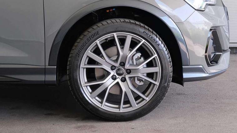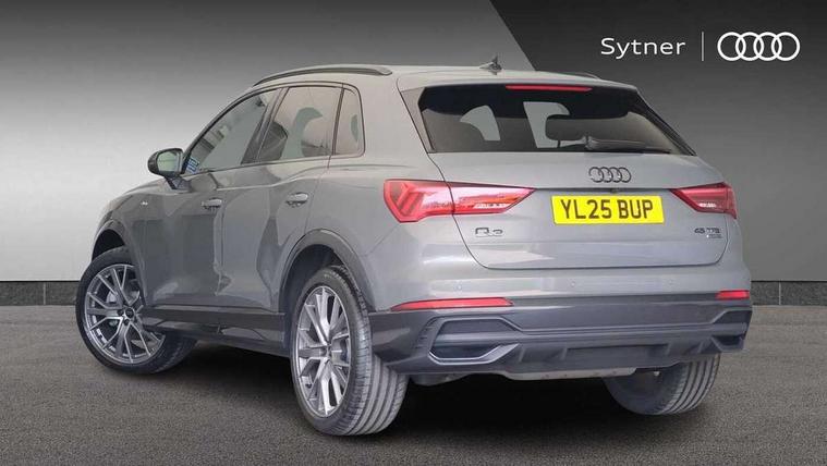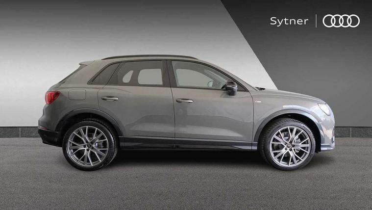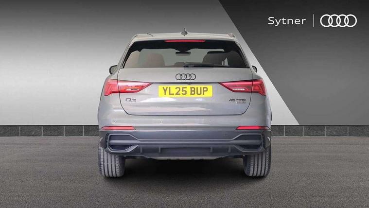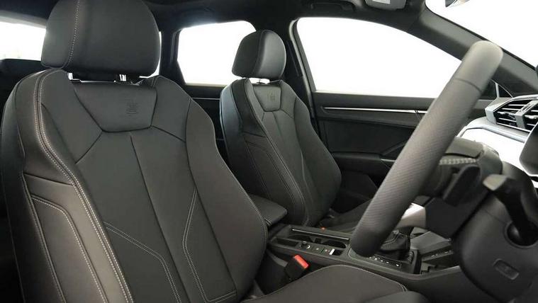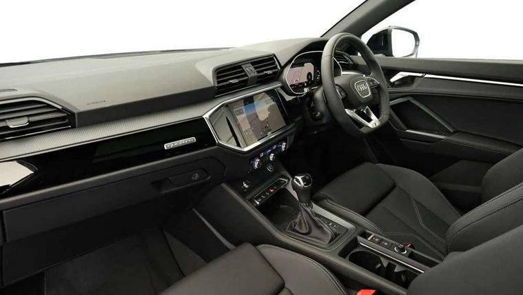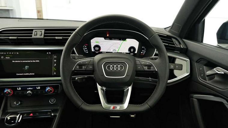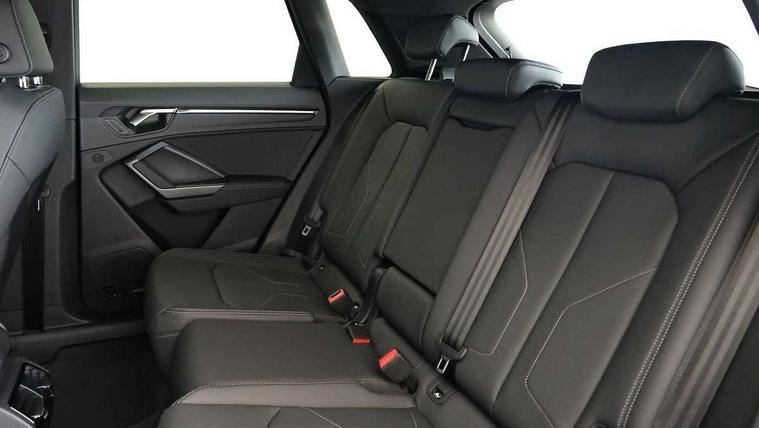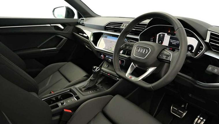 Amazon alexa Integration, Audi connect safety and service, Audi drive select, Audi lane departure warning, Audi smartphone interface includes wireless Apple carplay/Android Auto, Audi Virtual Cockpit - 10.25" display, Bluetooth interface, Camera based traffic sign recognition, Distraction and Fatigue warning, Legal emergency call, MMI Navigation Plus with high resolution 10.1 inch touchscreen colour display, Power operated tailgate, Progressive steering, Service interval indicator, Start stop system with recuperation, Voice control system with natural language interaction, Sports suspension, 2 USB-C ports with charge and data functions, 6 passive loudspeakers, DAB digital radio module, Acoustic windscreen, Anthracite black radiator grille, Audi Beam uses LEDs to project the Audi logo onto the ground as you exit your Q3, Auto dimming door mirrors, Auto dimming frameless rear view mirror, Black roof rails, Electrically folding, adjustable and heated door mirrors with integrated LED side indicators and kerb view function for passenger side, Front and rear electric windows, Front fog lights, Grille vertical bars in aluminium silver/Matt, High gloss black finish B and C pillars, LED Dynamic rear indicators, LED headlights with LED daytime running lights, LED rear lights, LED third brake light, Privacy glass dark tinted rear and rear-side windows (from B-pillar backwards), Rain and light sensors, Rear diffuser grille in grained matt black, Rear diffuser strip in matt anthracite black, Rear side wing doors, Rear wiper, S line bumpers in contrasting Manhattan grey, Variable front intermittent wipers, 12V socket in rear centre console, 3 seat bench in 2nd row, 40:20:40 folding with manual adjustment for 60:40 forwards/backwards position and backrest angle, Adjustable rear seat bench/backrest with centre armrest and cupholder, Black carpet mats, Black cloth headlining, Dual zone electronic climate control, Electric lumbar support, Front and rear black floor mats with contrast stitching in rock grey, Front and rear headrests, Front centre armrest, Height and reach adjustable steering wheel, Illuminated door sill trims with S logo, ISOFIX child seat mounting for front passenger with airbag deactivation and outer rear seat including top tether attachment point for outer rear seats, Luggage compartment sill protection in stainless steel, Manual front seats with height adjustment, Perforated leather gearknob, Single front passenger seat, Stainless steel pedals, Twin leather upholstery with front sport seats + S embossing, Black styling pack - Q3, Non smoking pack - Q3, 3x3 point rear seatbelts, 6 airbags - Driver, front passenger, curtain and side windows, Audi pre-sense front with pedestrain and cyclist recognition, Electrically operated child locks on rear doors, Electromechanical parking brake, Electronic stabilisation control including ABS, ASR and EDL, Front seatbelt reminder, Hill descent control, Hill hold assist, Pre sense basic, Seatbelt monitoring, Tyre pressure warning, Warning triangle and first aid kit, Anti theft wheel bolts, Immobiliser, Remote central locking, Thatcham approved category 1 anti theft alarm, Aluminium look interior elements, Detail dashboard around MMI touch colour display in glass look, black with surround in aluminium look, Leatherette door armrest, Piano black inlay,