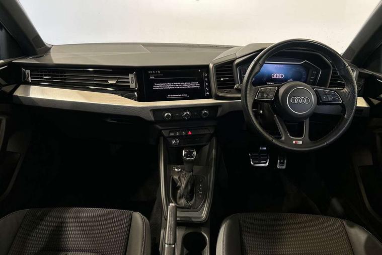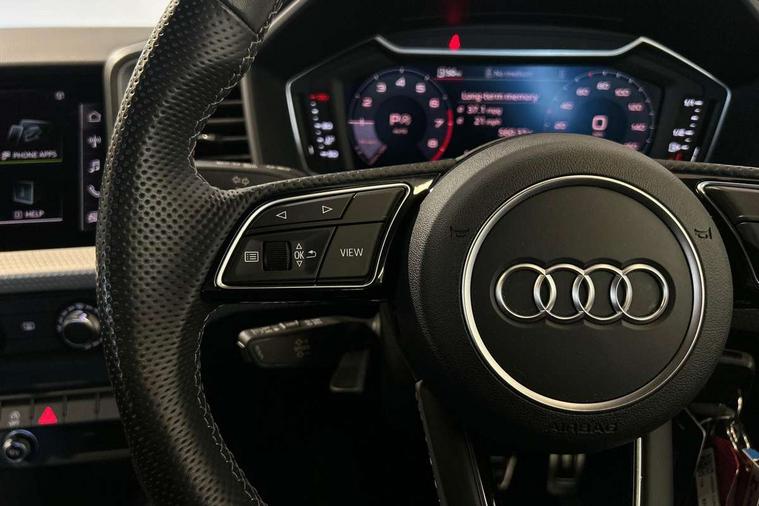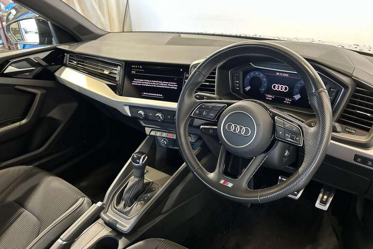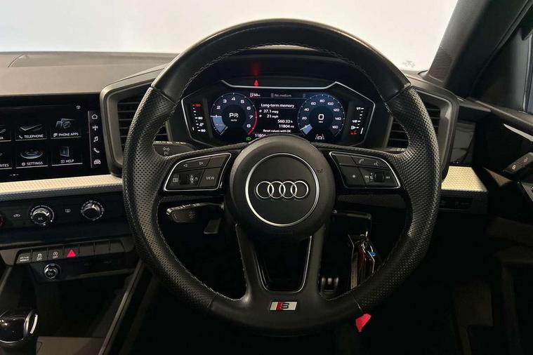 10.25" Digital instrument cluster display classis style instrument dials + speed, odometer, time, outside temperature, telephone menu + fuel level warning, Audi drive select - power steering assistance + engine + gear shift 3 preset modes (auto, dynamic, efficiency and an Individual mode), Audi smartphone interface with connect compatible smartphone via USB directly MMI display + Nav, music, third party apps controlled via MMI controller, Automatic start/stop system, Bluetooth interface, Cruise control, Driver's information system, Electromechanical power steering, Emergency e-call, Lane departure warning system, Rear parking sensor, Service interval indicator, Speed limiter, Voice control system, Washer fluid level indicator, Sports suspension, 2 x USB type C connection points, 6 passive loudspeakers, DAB Digital radio, MMI radio plus with 10.1" colour MMI display screen and MMI touch, Auto dimming rear view mirror, Body coloured door mirrors, Door sills with aluminium inlays and S Line logo, Electric front and rear windows, Electrically adjustable, heated, folding door mirrors with integrated LED side indicator, Front side air inlets in grained matt black and C frame in anthracite black, Heat insulating glass windscreen and side windows, Heated rear windscreen, High level LED brake light, LED headlights with LED rear lights + dynamic rear indicators + headlight adjustment and high beam, turning light + LED daytime running lights, Privacy glass, Radiator grille and rear diffuser in matt anthracite black, Radiator protective grille frame in matt aluminium silver, Rain and light sensors, Rear fog lights, Rear side wing doors, Rear wiper, S line badges on front wings, Side front spoiler lips in grained matt black, 12V socket in centre console with two cup holders, 3 rear seats with headrests, 3 seat bench in 2nd row, 3 spoke leather multi-function plus steering wheel features S badging and grips in perforated leather with contrast stitching, 40:60 Split folding rear seat or folded fully, Black cloth headlining, Driver and passenger seat with manual height adjust with forward and backwards adjustment, Front and rear black floor mats with contrast stitching in fine silver, Front head restraints, Front passenger seat, Height and reach adjustable steering wheel, ISOFIX child seat mounting for front passenger and outer rear seats including top tether attachment point of outer rear seats, Leather gear knob with aluminium trim, Leatherette handbrake grip, Luggage compartment light with front and rear reading lights, Manual air conditioning, Manually adjustable lumbar support in front seats, Stainless steel pedals, LED interior lighting pack - A1, Luggage compartment pack - A1, S line exterior styling pack - A1 Sportback, 3x3 point rear seatbelts, Audi pre-sense front with pedestrain and cyclist recognition, Brake assist function, Driver and front passenger airbag with front side and head airbags, Electronic Stability Control including ABS, EBD, ASR and EDL, Front passenger airbag deactivation switch, Hill hold assist, Manual rear child locks, Seatbelt height adjustment for front seats, Seatbelt monitoring, Tyre pressure warning light, Warning triangle and first aid kit, Anti theft alarm, Anti theft wheel bolts and loose wheel warning, Immobiliser, Remote central locking with 2 foldaway keys, Aluminium trim for control switches, air vents and digital instrument cluster, Black dashboard, Silver grey inlays polygon structure in diamond paint finish, Structured grey accent areas including air vents, door handle recesses and centre console in quartz paint finish,