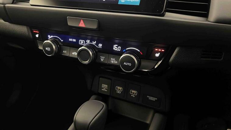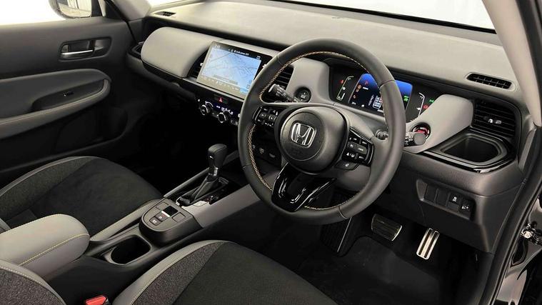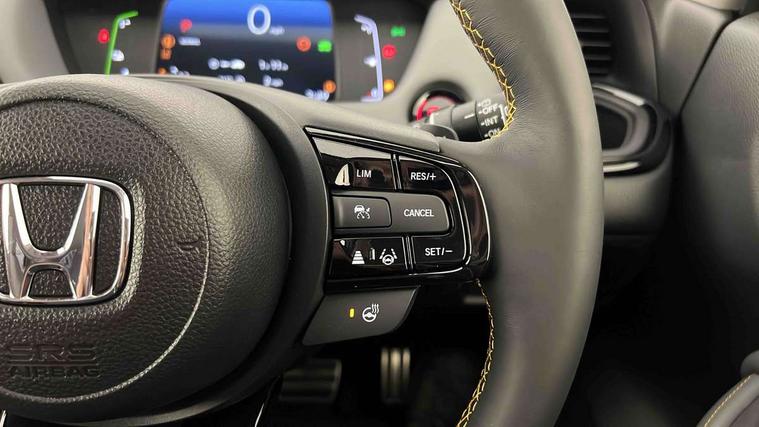 Adaptive cruise control, Adjustable speed limiter, Agile handling assist, BLIS (Blind Spot Information System) with Cross Traffic Monitor, Bluetooth hands free telephone connection, Drive mode (Econ, Sport, Normal), Driver attention monitoring system, eCall emergency call system - ecall functionality is subject to 2G/3G network availability, Electric power steering wheel with variable gear ratio steering, Emergency stop signalling system, Forward collision warning, Front and rear parking sensors, Honda CONNECT with Navigation 9" touchscreen, AM/FM/DAB, Apple Carplay and Android Auto, live traffic info, Idle stop, Intelligent speed limiter, Lane departure warning system, Lane keep assist system, Low speed following, Multi-information display, Rear view camera, Road departure mitigation, Tailgate, Traffic jam assist, Traffic sign recognition, Wireless apple carplay, Vehicle stability assist, 'Shark fin' mobile antenna, 180w Power audio system with 4 speakers, 2 USB-C connectors rear, 2x USB Front socket (1 data & 1 charge), Remote audio controls on steering wheel, Aspheric door mirrors, Auto wipers, Automatic headlights with on/off timer, Coming/leaving home function, Black headlight extension, Body colour door handles, eHEV emblem, Electric adjustable door mirrors, Electrically folding door mirrors, Exclusive styling includes front and rear bumper in gloss black finish, Front and rear electric windows, Heated door mirrors, High beam assist, LED 3rd brake light, LED daytime running lights, LED Headlights, LED rear lights, Manual headlight levelling, Privacy glass, Rear side wing doors, Rear wiper, Single exhaust tailpipe with finisher, Sport grille, 3 seat bench in 2nd row, 60/40 split rear bench seat, Cargo net hooks, Climate control air conditioning, Driver and front passenger seat armrests, Driver and passenger front seat pockets, Driver's seat height adjustment, Fabric/suede leather upholstery, Front accessory power socket, Front head restraints, Front map lights, Front/rear courtesy lights, Heated front seats, Heated steering wheel, Isofix points, Leather 3-spoke steering wheel, Leather gearshift knob, Magic seat flexibility system, Plating interior door handles, Rear head restraints, Single front passenger seat, Sport pedals, Sunvisors with vanity mirrors, Tilt/telescopic adjustable steering wheel, Tonneau cover, Trunk light, Vanity mirror illumination, 3x3 point rear seatbelts, Anti-lock braking system (ABS), Brake assist function, Brake hold function, Child locks on rear doors, Collision mitigation braking system, Deflation warning system, Driver knee airbag, Driver SRS airbag (single stage inflation), Driver/Front Passenger airbags, Electronic parking brake with auto hold, Front and rear seat belt with emergency locking retractor, Front and rear side curtain airbag, Front centre airbag, Front side airbags, Hill start assist, Paddle deceleration control, Passenger SRS airbag cut-off device, Rear side airbags, Regenerative braking system, Whiplash lessening front headrests, Honda super locks, Immobiliser, Mirrors and windows key fob operation, Remote central locking with 2 remote folding keys, Security alarm, Smart entry + Smart start, Soft pad leather interior panels, Tyre repair kit,