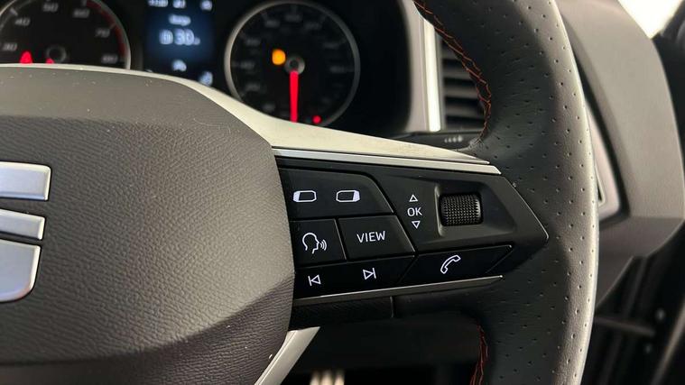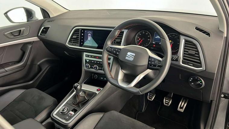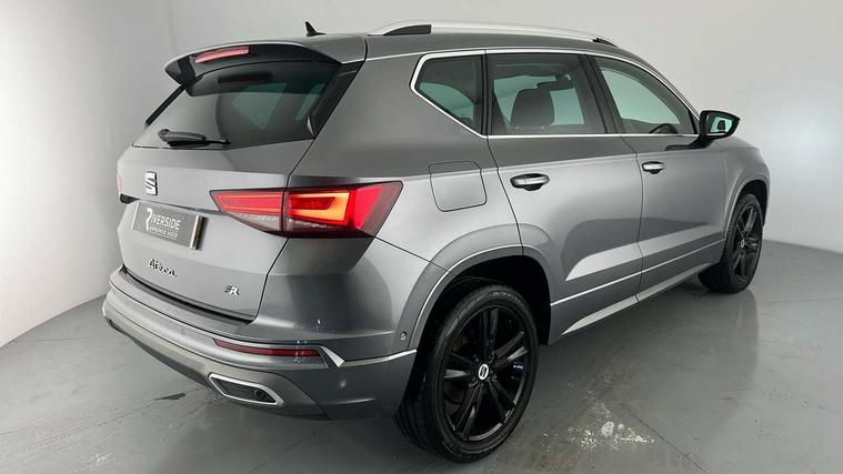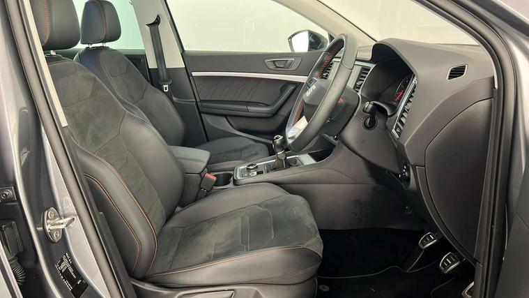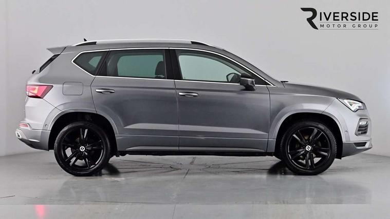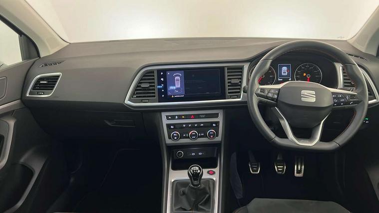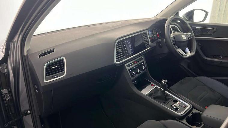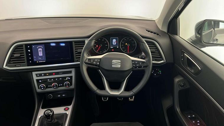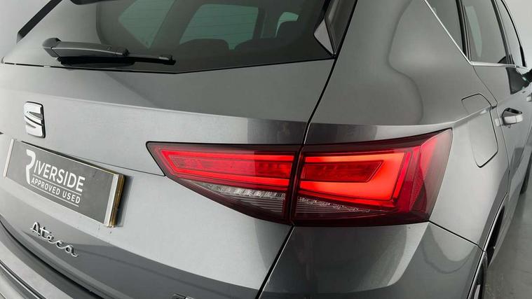 Colour multi-function on board computer display, Cruise control system with speed limiter, E-call, Outside temperature gauge, Progressive power assisted steering, SEAT drive profile with driving experience button - Normal, Sport, Eco and Individual mode, steering and throttle response, Self parking functionality (includes front and rear parking sensors), Trip computer, Wireless full link smartphone integration, Wireless phone charger, Steering wheel mounted audio/phone controls, Body colour bumpers, Body coloured wheel arch surrounds, Chrome front grille frame, Chrome roof rails, Chrome side window trim, Dark tinted rear windows, Daytime running lights, Door mirrors with welcome light silhouette, Dynamic headlight range control with self adjusting whilst driving, Electric adjustable/heated/folding door mirrors, Front and rear electric windows, Full LED headlamps with lens and LED front fog lamps with cornering function, Illuminated aluminium front door sill, LED rear tail lights with dynamic indicators, Rear fog lights, Rear side wing doors, Rear spoiler, Rear wash/wipe, Simulated exhaust pipes in chrome frame, 12v socket in front, 3 seat bench in 2nd row, 60/40 split folding rear seat, Aluminium pedals, Dual zone climate control, Front and rear head restraints, Front centre armrest, Front seat back storage pockets, Height adjustable driver and passenger seat with lumbar adjustment, ISOFIX points in outer rear seats with top tether anchorage points, Leather steering wheel and gear knob, Microsuede upholstery with front comfort seats, Rear armrest and easy back seat release mechanism from boot, Single front passenger seat, Storage compartment under driver's seat, Convenience pack - Ateca, Interior lighting pack - Ateca, Navigation system pack with DAB - Ateca, 3x3 point rear seatbelts, ABS, Traction control system (TCS), Electronic stability control (ESC) and Electronic differential lock system (XDS), Airbags - Driver and front passenger airbag with deactivation, front side, two curtain and driver's knee airbags, Electric parking brake with auto hold function, Front and rear seatbelt reminder, Front assist with autonomous emergency braking, Hill hold control, Manual rear child locks, Tiredness recognition system, Traction control, Tyre pressure monitoring system, Alarm, Keyless entry, Locking wheel bolts, Chrome interior detailing, 18" Brillaint silver alloy wheels,